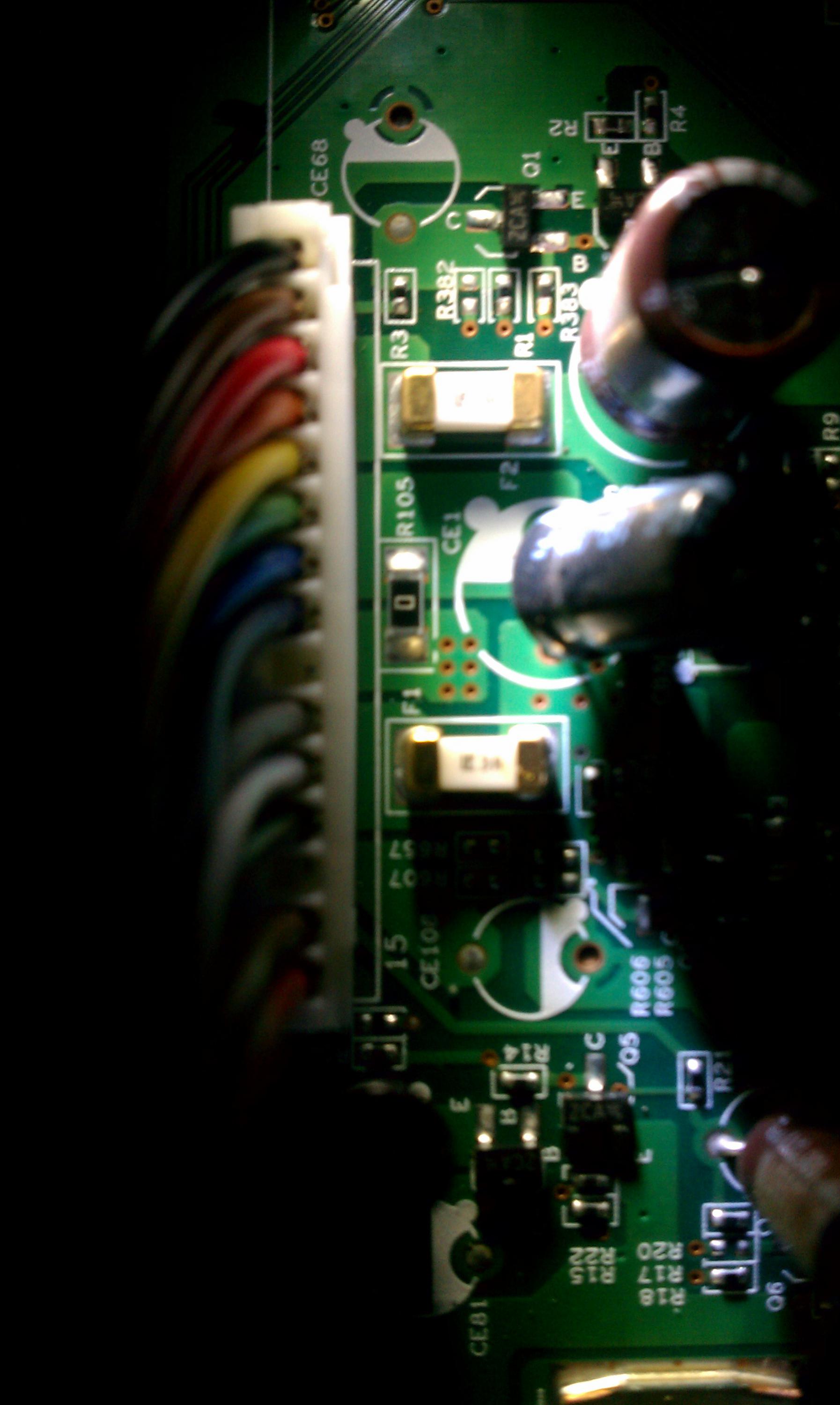 and then i was going to measure pin2 and the probe slipped... i had the n64 still hooked up so i could hear the sound of mario kart. as soon as i made this mistake, the sound disapeared. i flipped up the tv and noticed the backlight was off. oh no i fried it! so i turned it off and back on again and the backlight came back on but the sound did not.