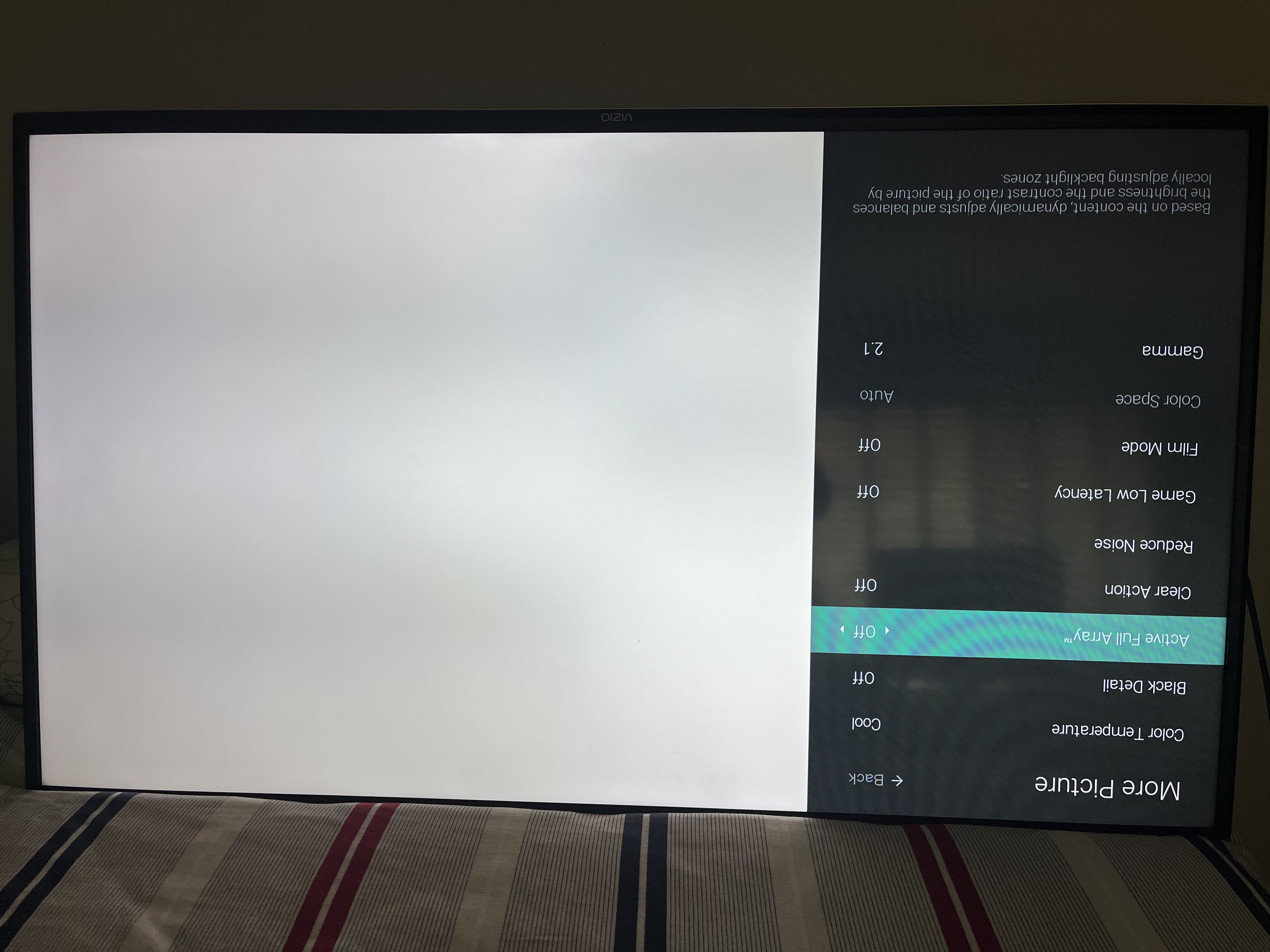 Prior to panel disassembly to access LED bar. Likely failure is LED bar or Dimming Zone Driver Board? or even PSU power to the Driver board?