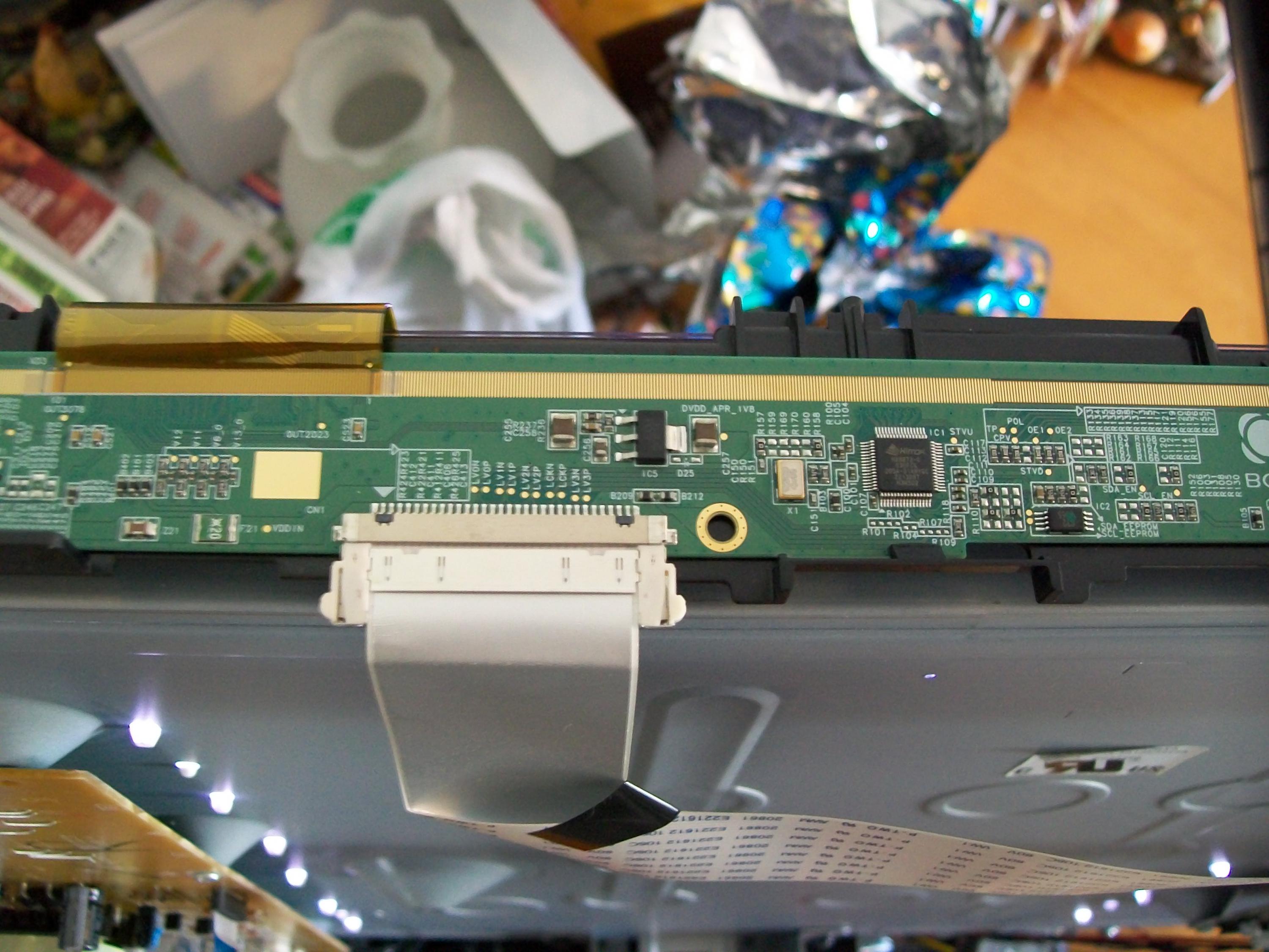 I was tinkering some more with this TV and decided to take the metal frame off and get a look at the board that the LVDS cable attaches to.