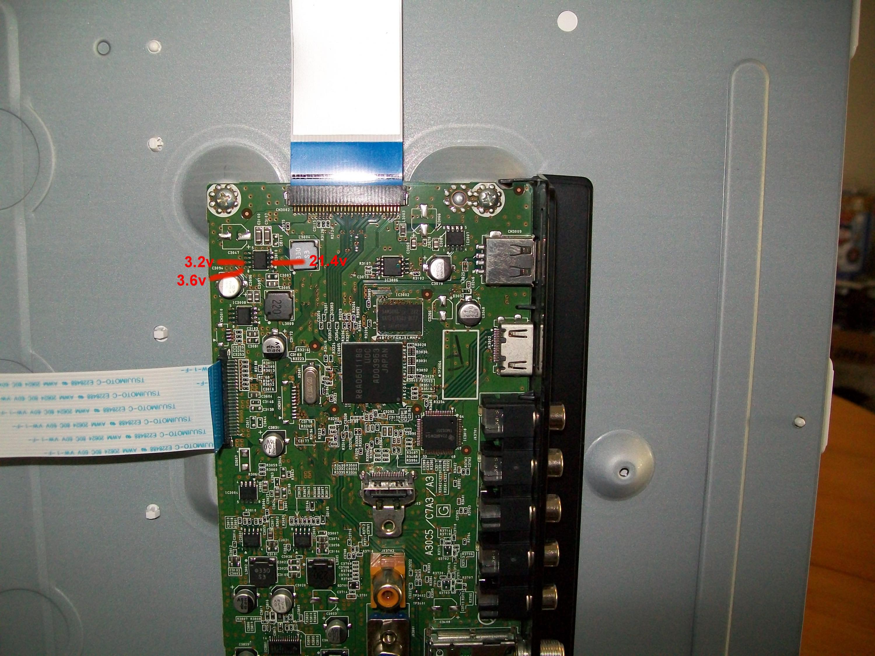 Can we get better focused pictures of the main board, especially around the LVDS connector? There must be switch MOSFET that supplies the voltage to the T-CON when the processor send the signal to turn on that MOSFET.