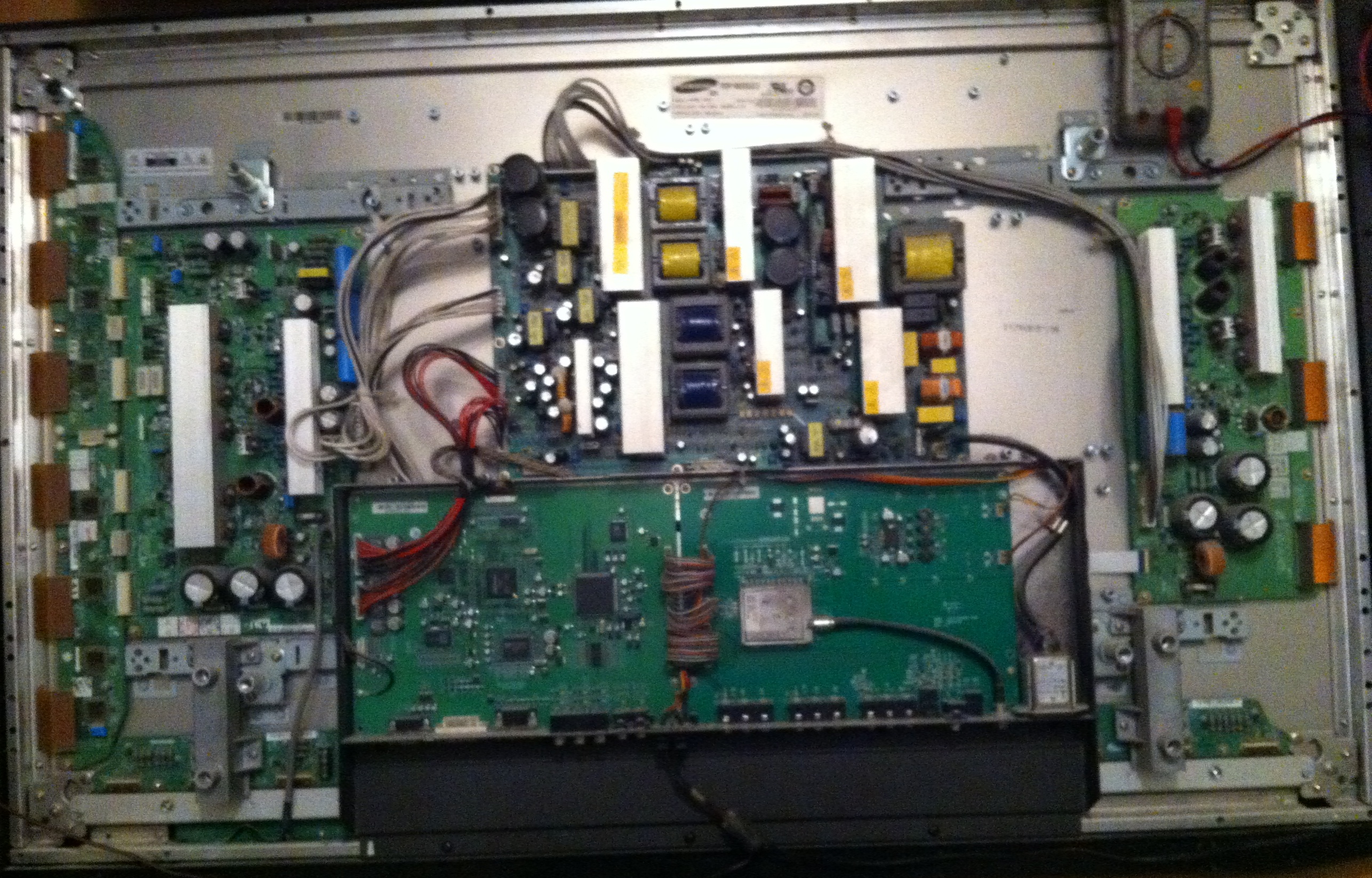 Soniq PT42SH Plasma has Samsung components inside & no power, no lights & no clicking or sounds when power is plugged in.