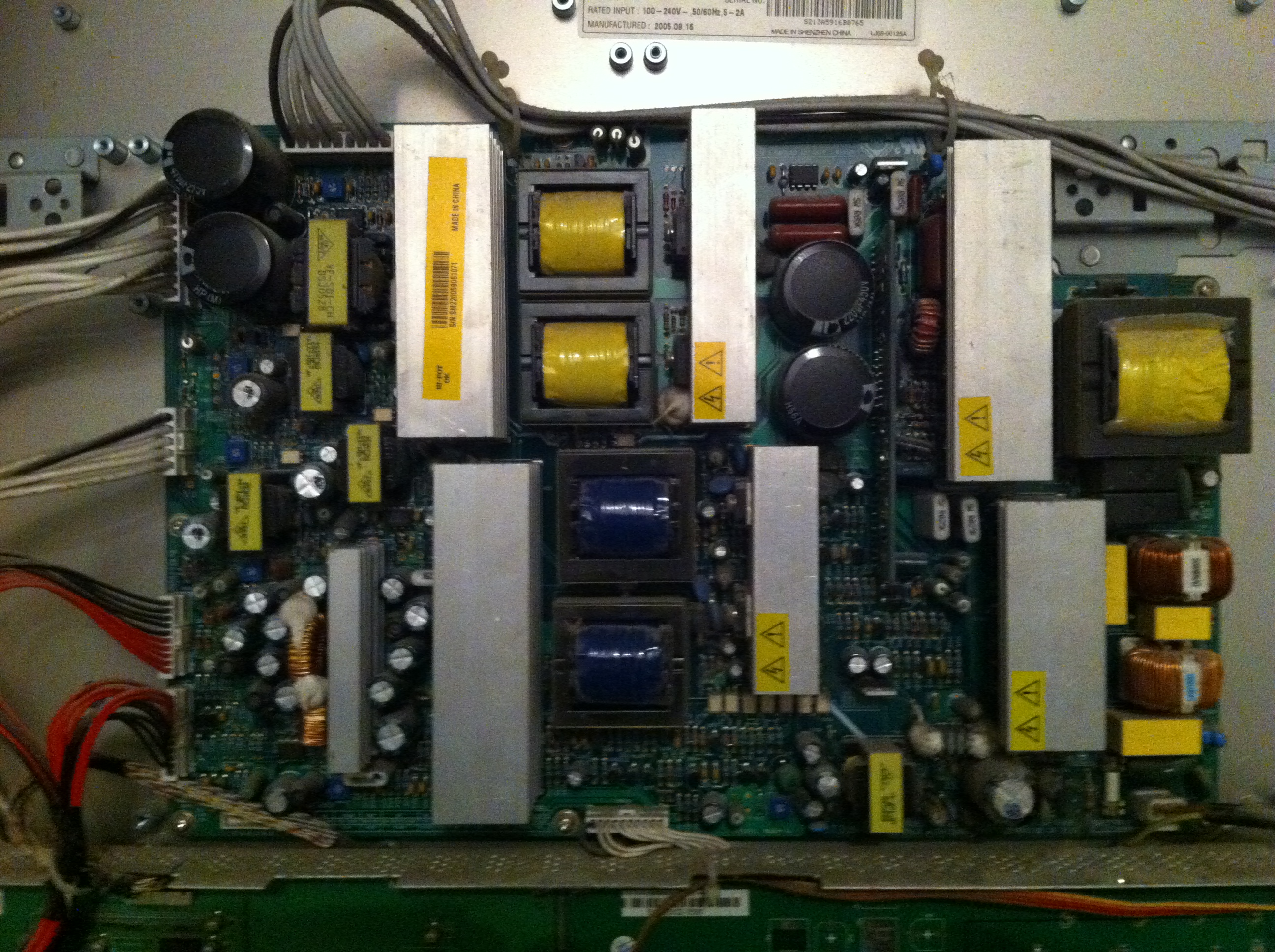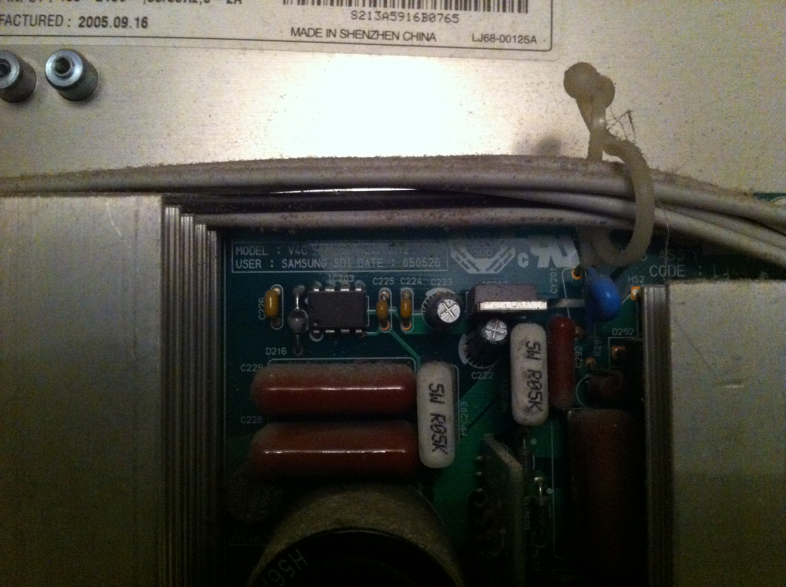 It has lots of dust inside but I can't see anything faulty checked some fuses the power board is a Samsung V4C. The previous owner said it just didn't work one day. I have read some old posts but it hasn't helped so far.