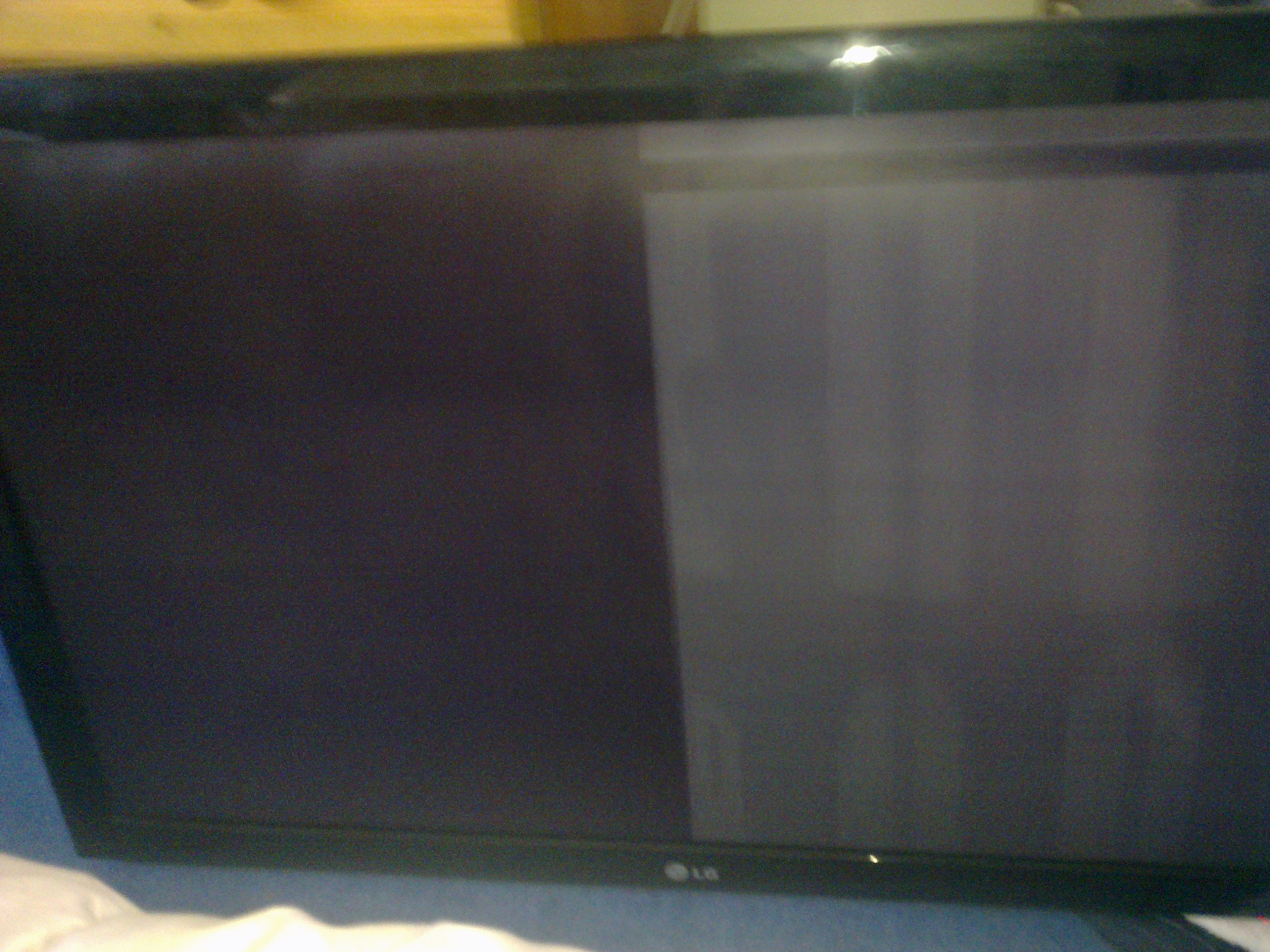 i have the above tv & it has sound ok but when turn on i get as seen in pics & rightside gets dimmer until almost same as left this takes 20secs maybe was working fine til came in & was like this it turns on & off fine but i dont see lg lifes good screen & cant access menu cant see any burnt or bubbled caps.