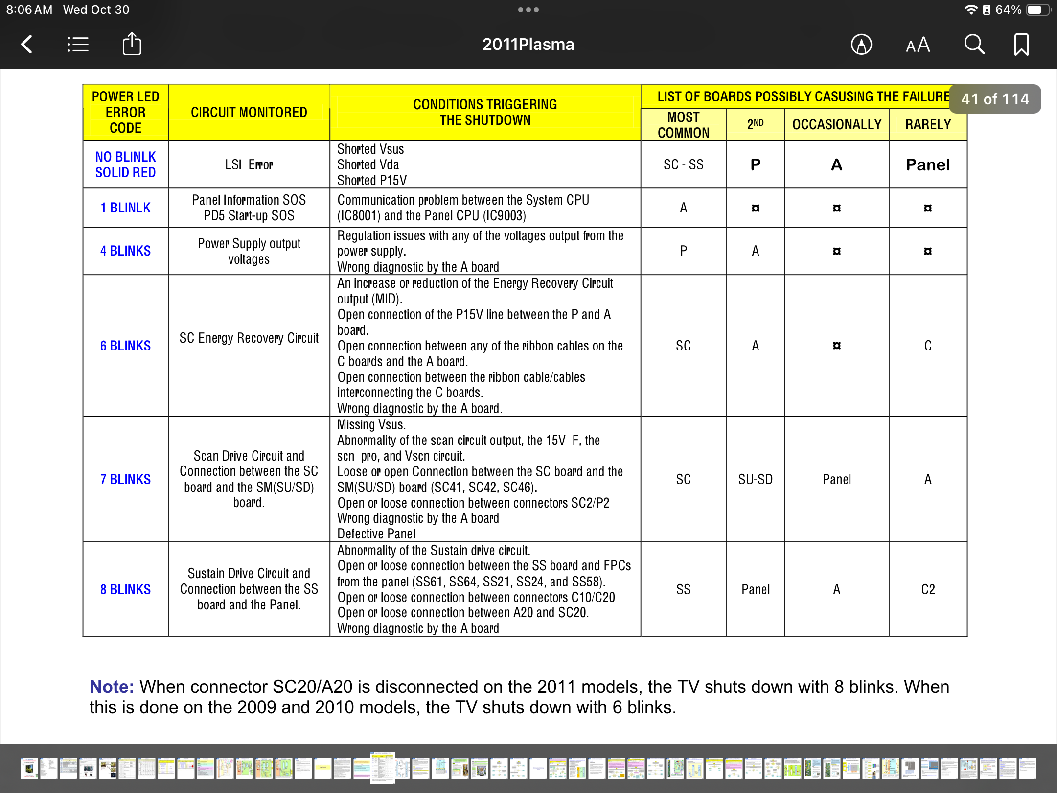 Stopped by this site trying to fix my parents Panasonic Plasma TV.