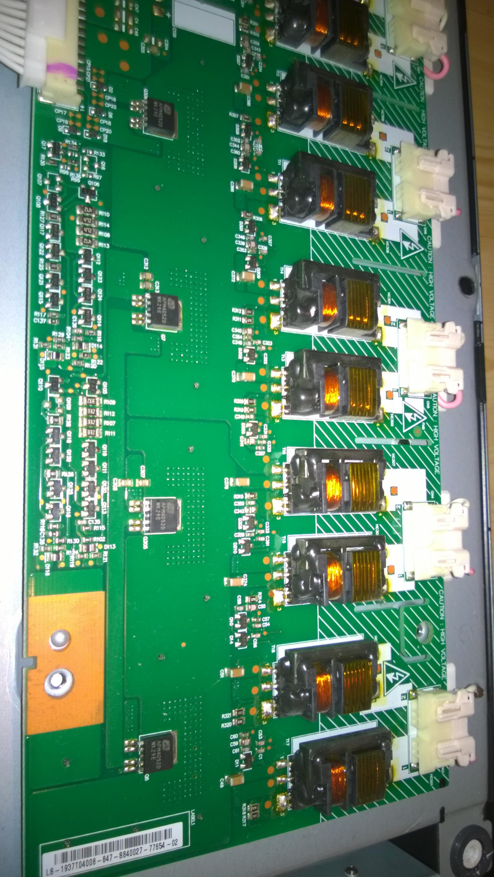 This is my first post, but long term lurker on the form learning as much as possible about these TV's. I was given this TV as due to a power outage of constant On/off of power to TV. The TV originally would just click on and off (Typical Reboot Cycle). I opened the back of the TV, and troubleshooted by taking the 96 pin LVDS off one at a time to see if I had a picture on either side. I finally fixed the reboot cycle by finding the error on the left side of the screen off connector CN 1301, and the TV would stay on. Further troubleshooting led me to the driver boards where...