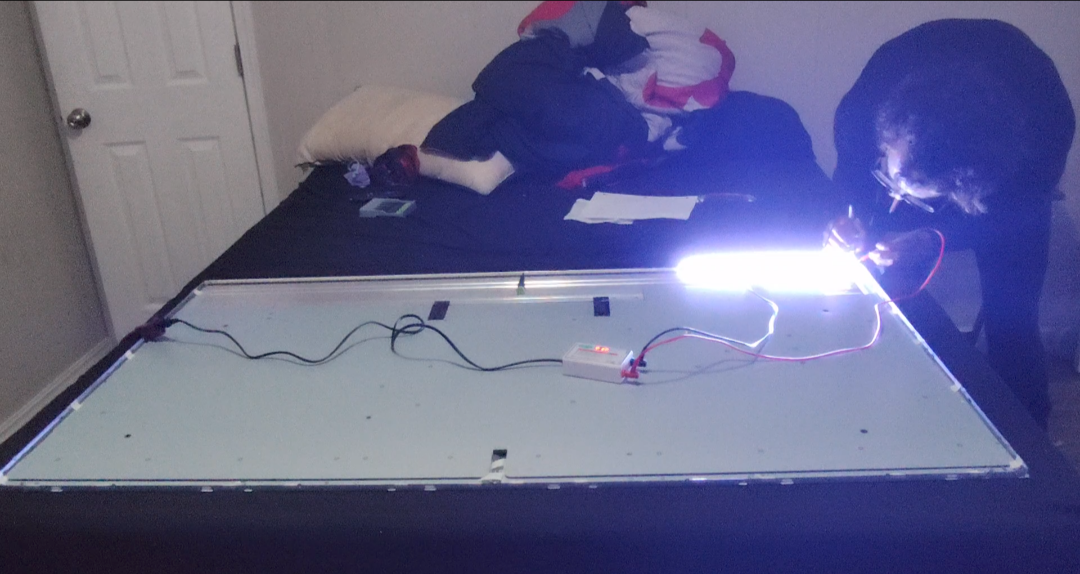 I'm positive I connected the LED strips to the LED connector behind the panel. But the wires were tighter than when I initially unplugged them from the original LED strips. Seeing how I can't get the LEDs on with the tester from those wires disconnected from the power board and power board unplugged from a power outlet, I assume they came unplugged at the LED strips behind the panel somehow flipping and rearranging the TV..