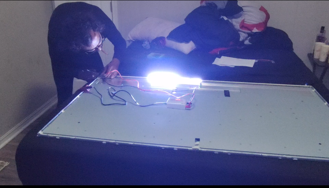 Before putting the back cover on, I wanted to plug it up and turn it on to see the new LED strips light up with them connected to the power board.