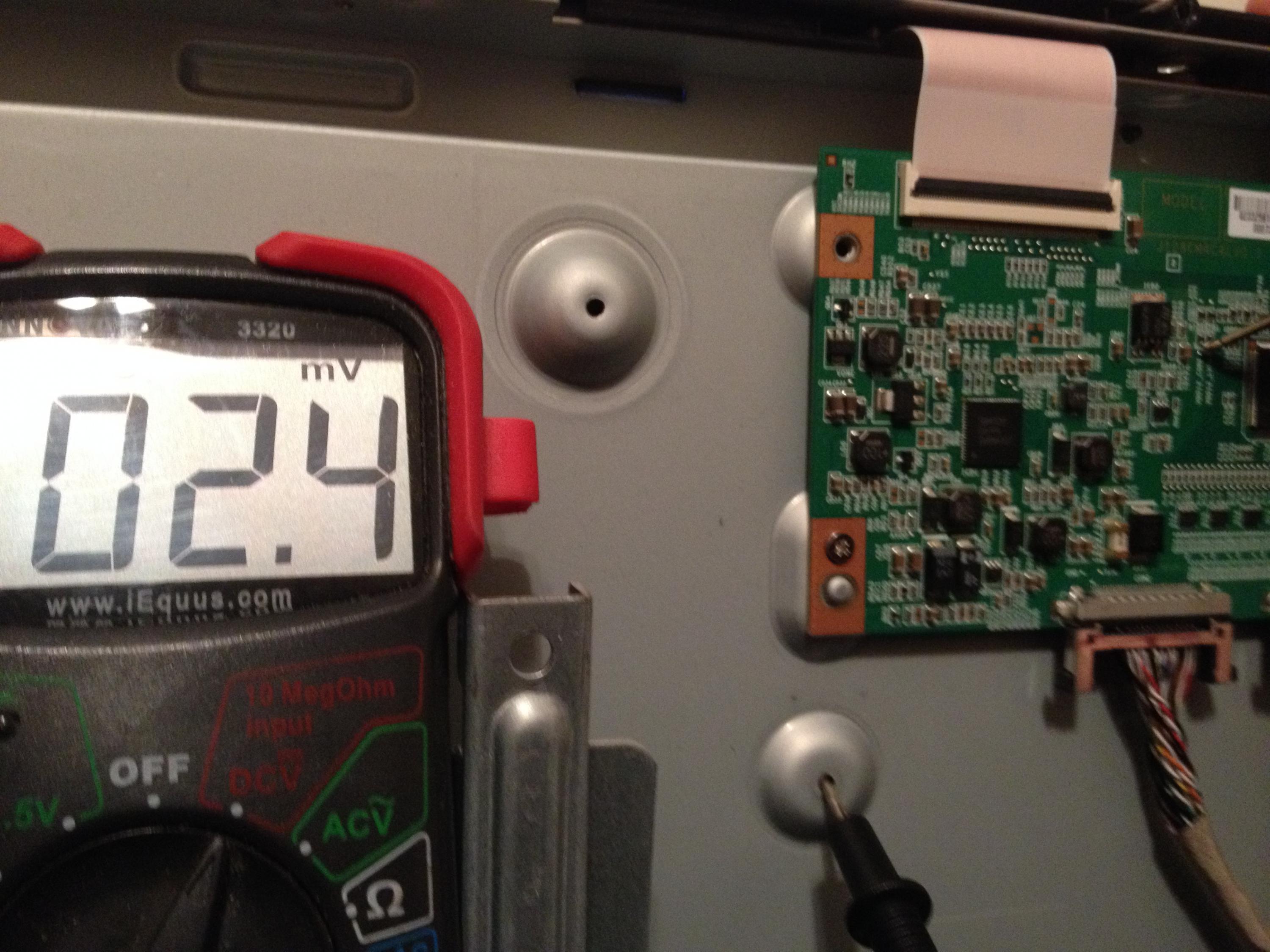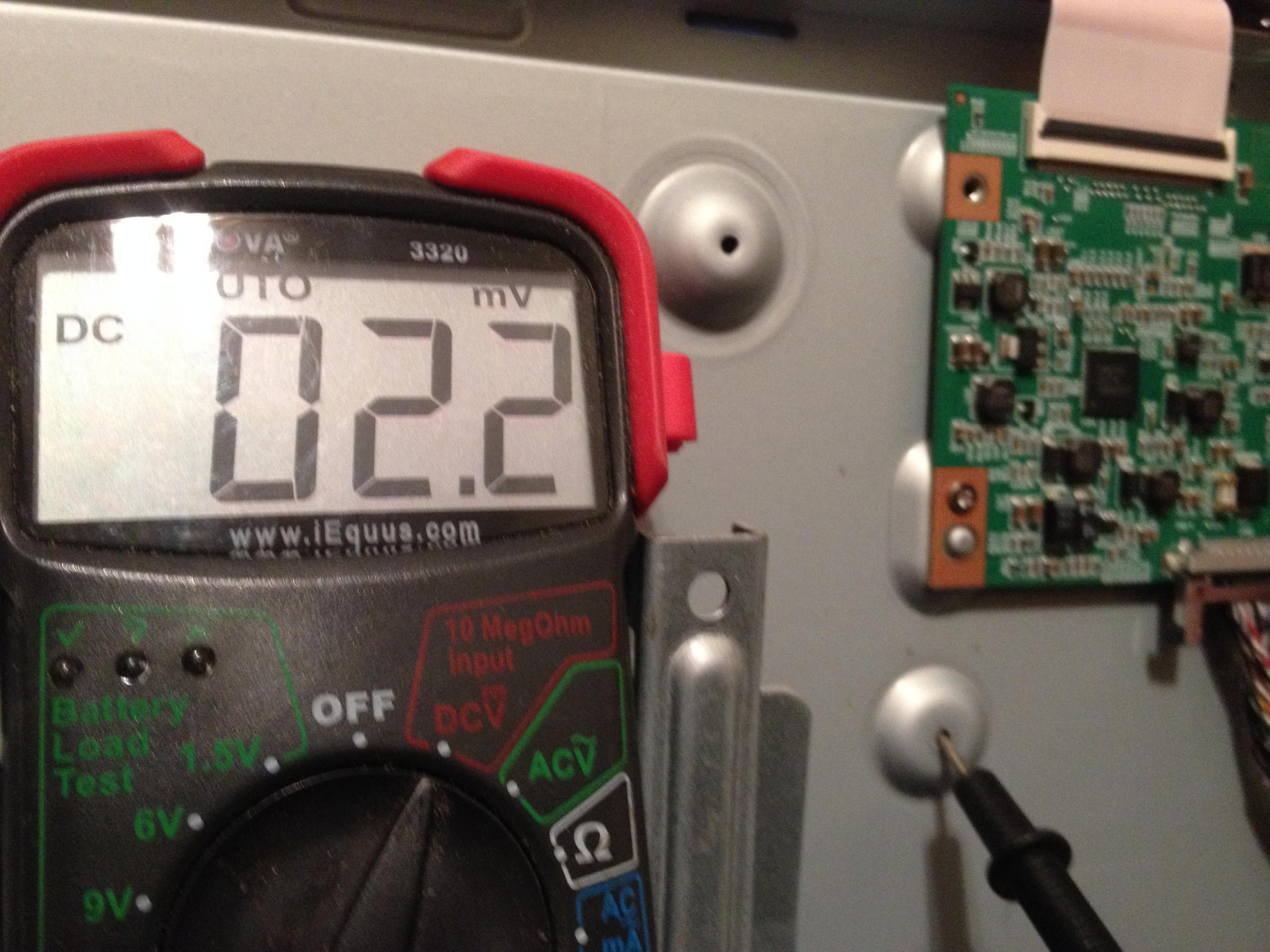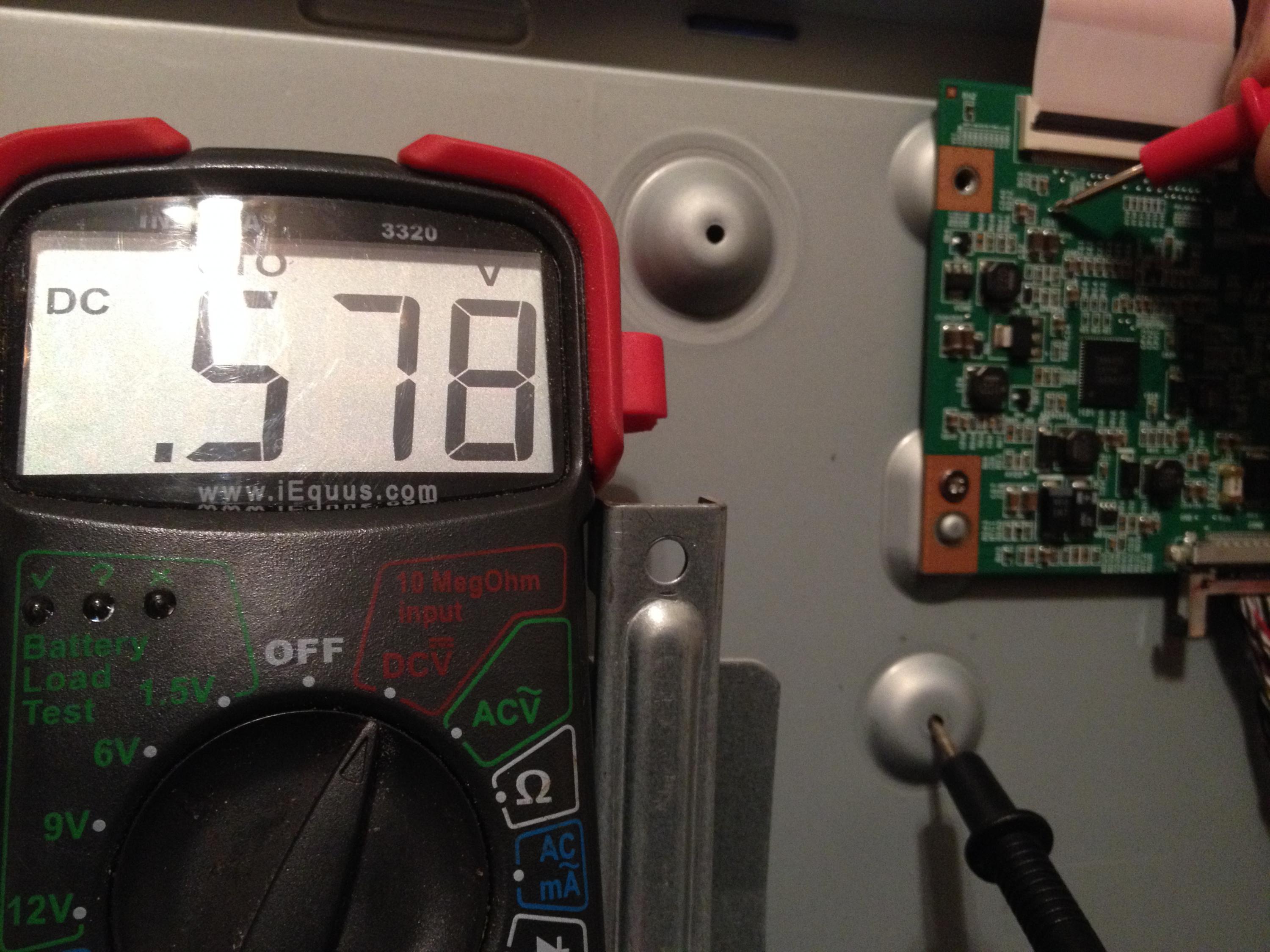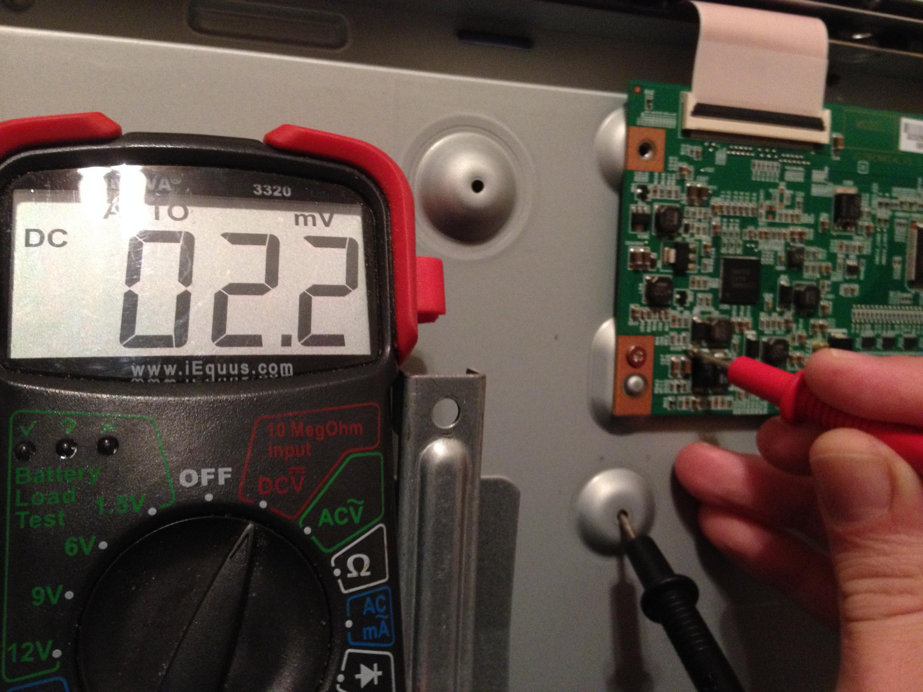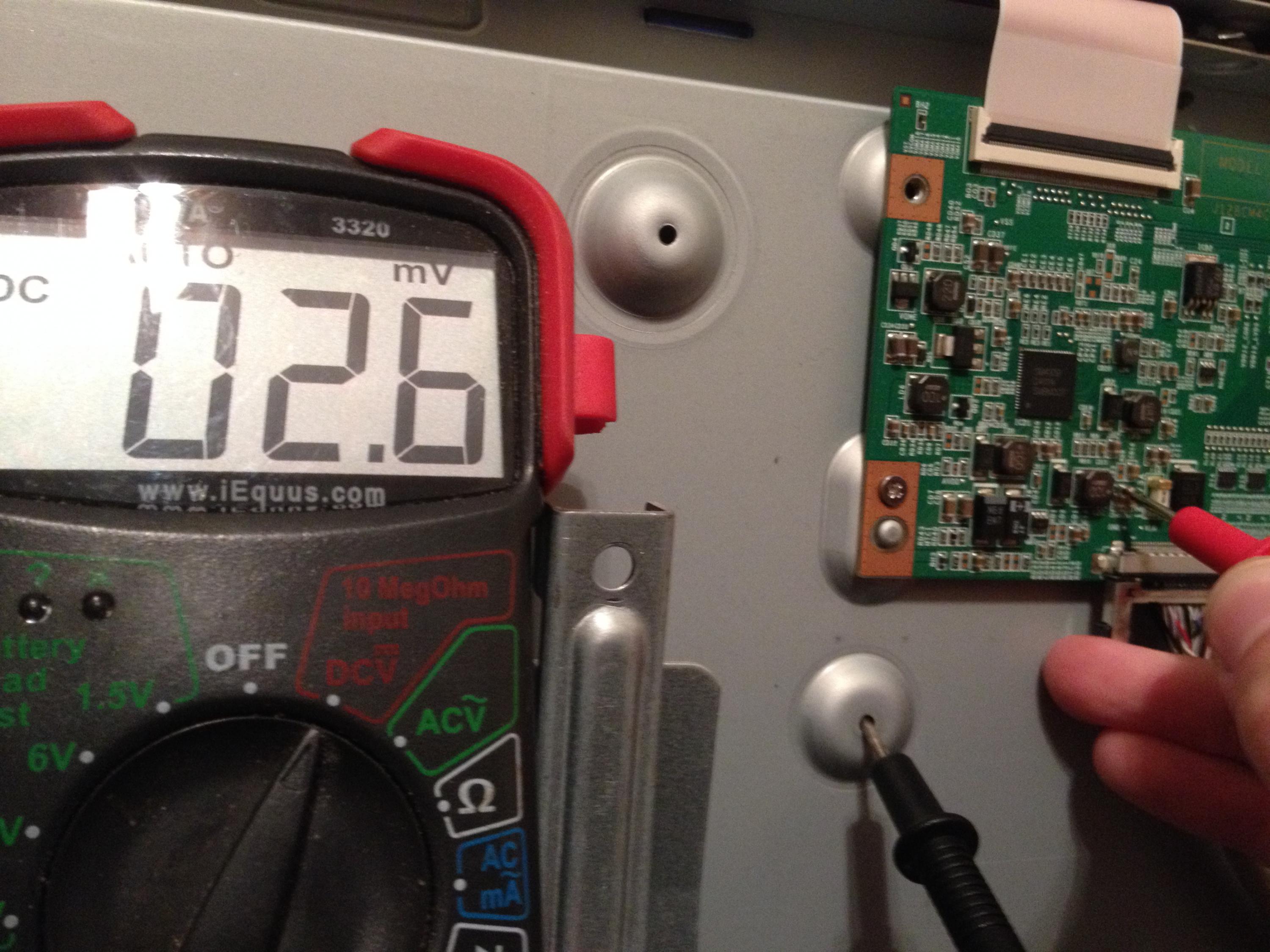 Roger that. I'll check the TCON board when I get off work. I have a voltage meter, but forgive me as I don't know how to check the voltage per se. I know to put black to ground and red on the solder/connection, but I'm not entirely sure which setting on my Meter to use.