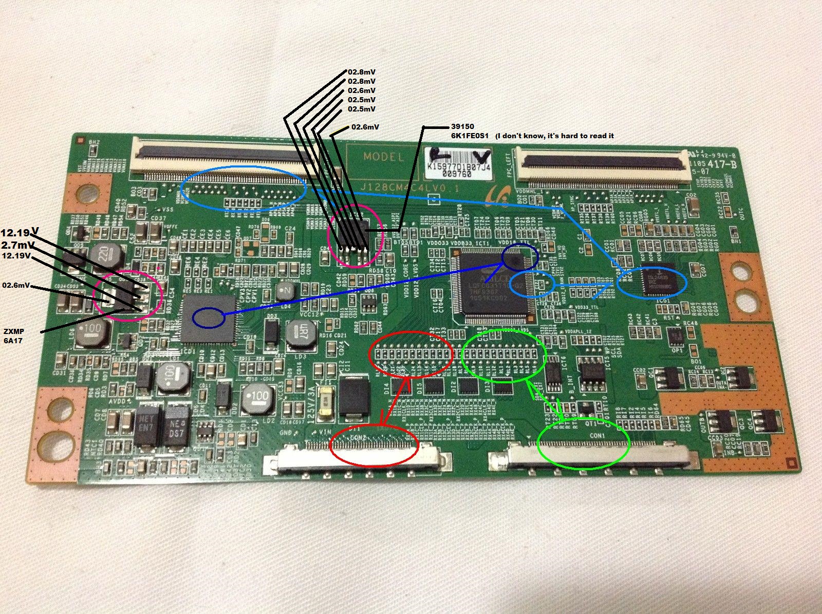 Budm, since there isn't any voltage going to those areas what does that mean? Does it show the TCON board is needing replacement, or perhaps lending to an issue with the mainboard and the power not going to the tcon? I'm sorry I"m kind of slow with all of this stuff guys. Kind of learning as I go. What should I be looking for from here on?