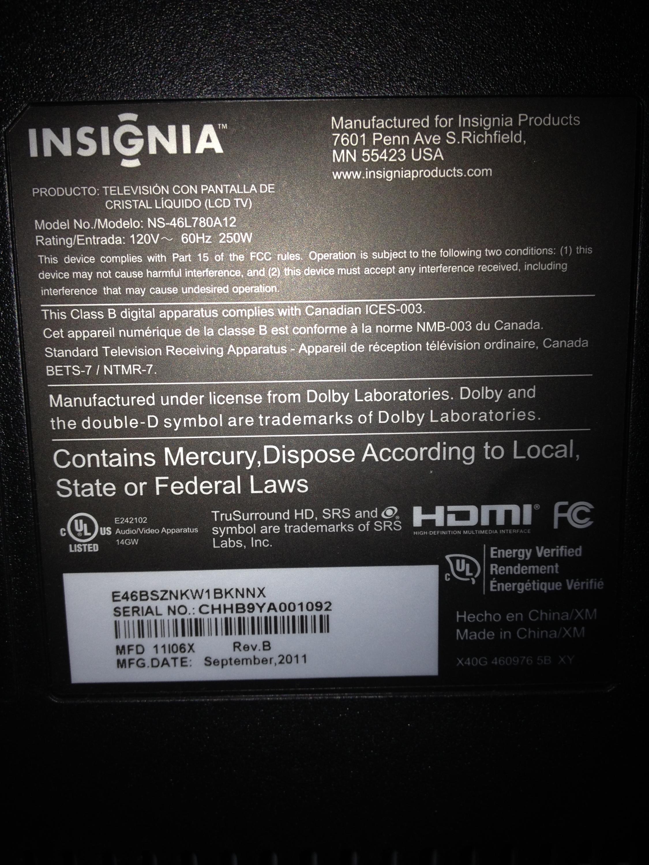 This is my first post here on this forum. I chose it as it seems to be the best put together and I see a lot of solid advice and information here. I'm looking for assistance in repairing my TV. it's an Insignia LCD NS-46L780A12, 120V~ 60Hz 250W.