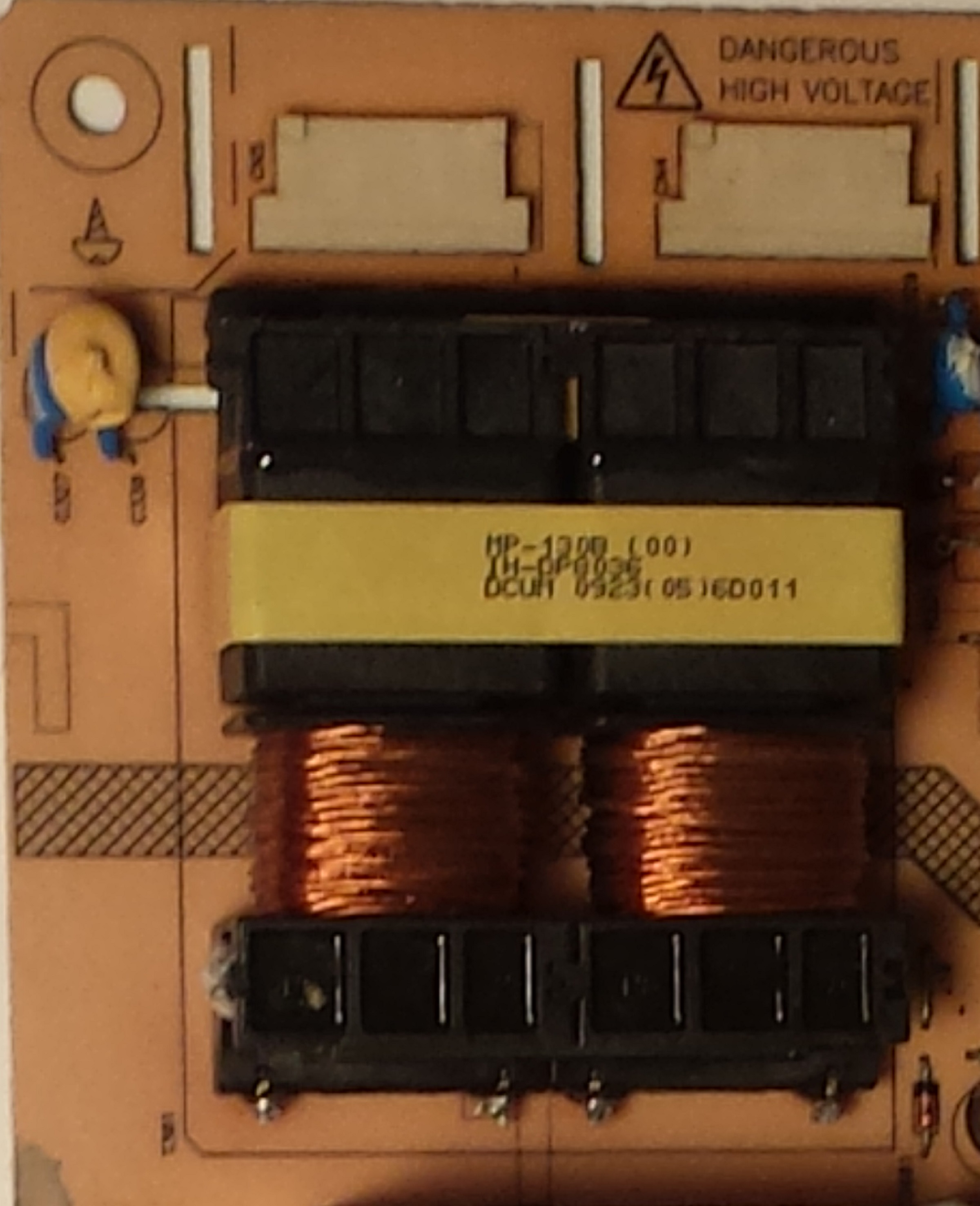 Over the past couple of months I've encountered 5 of these inverter boards (P/Ns 1AV4U20C41500 and 1AV4U20C41501) which had failed. Of those 5, 2 were PWM failures and 3 were inverter transformer failures. I have failed 3 separate times at disassembling the transformers for rebuild. My most recent failure involved soaking the transformer in MEK overnight to dissolve the varnish which holds the ferrites in. The varnish dissolved (including on the primary windings which weren't bad) but the ferrites still cracked. Even when I have managed to get the ferrites out in one piece, the bobbin that the secondary is wound on usually breaks because it is fused to the primary bobbin.