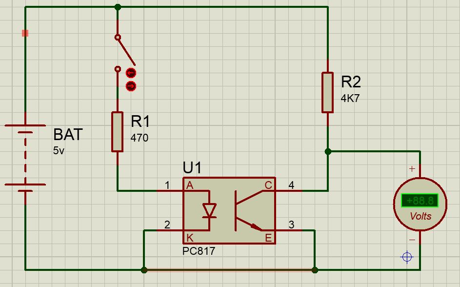 Close switch and meter should read 0V, open switch and meter read 5V. No switch needed could just use a jumper wire.