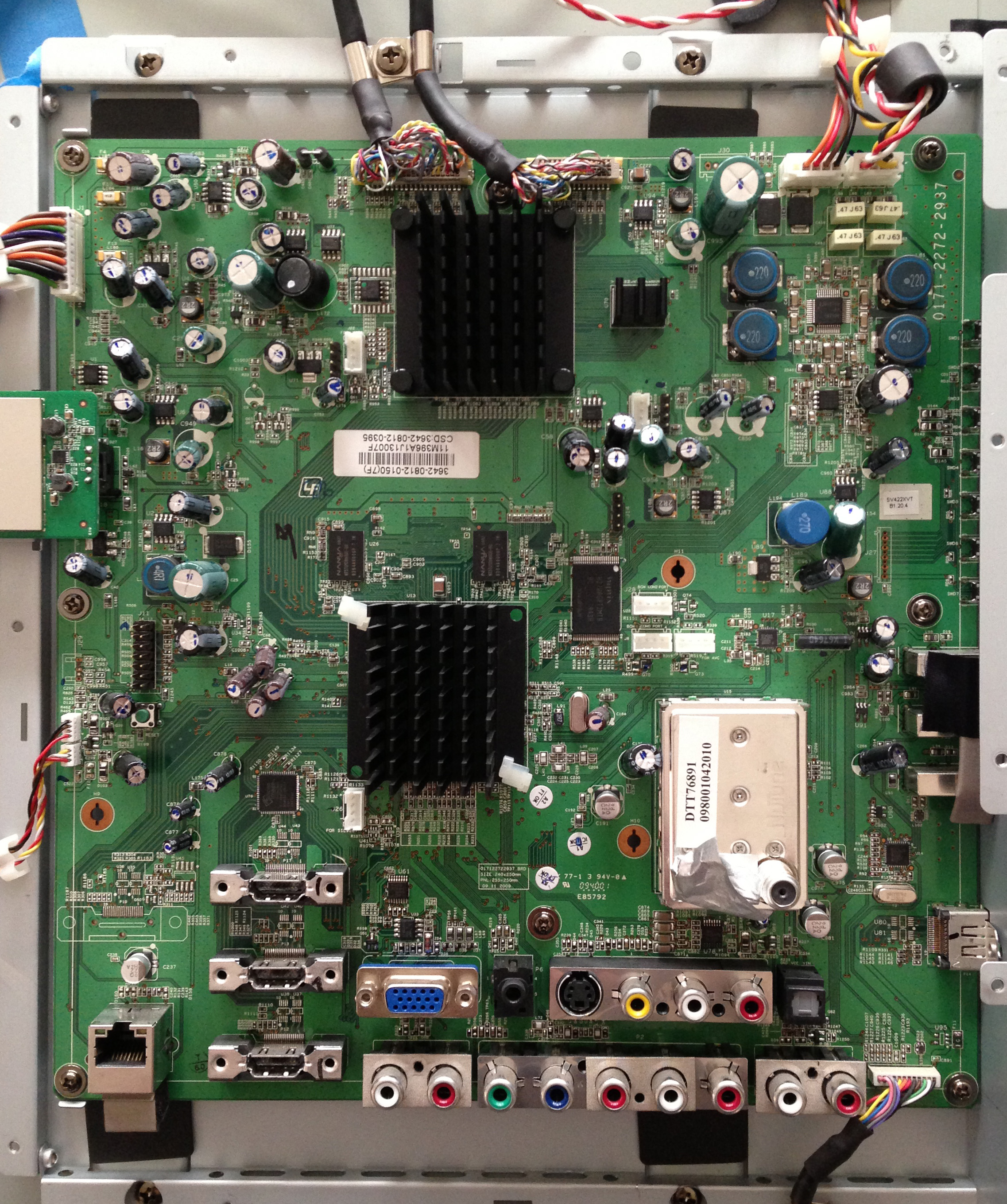 I bought a Vizio 0500-0407-0910 used Power Supply and installed it and that seemed to fix it. So I unplugged it to put the rear cover and stand back on. when I plugged it in the same problem recurred. So apparently unplugging the TV is what causes the problem. Which I could live with if only I could get it to come on one more time. I would just leave the back cover off and never unplug it again. There is a fuse on the Power Supply board (I marked it) and I wonder if replacing it or even just jumping it might get the TV to come once more. I attached images of the Power Supply board and the Main Board.