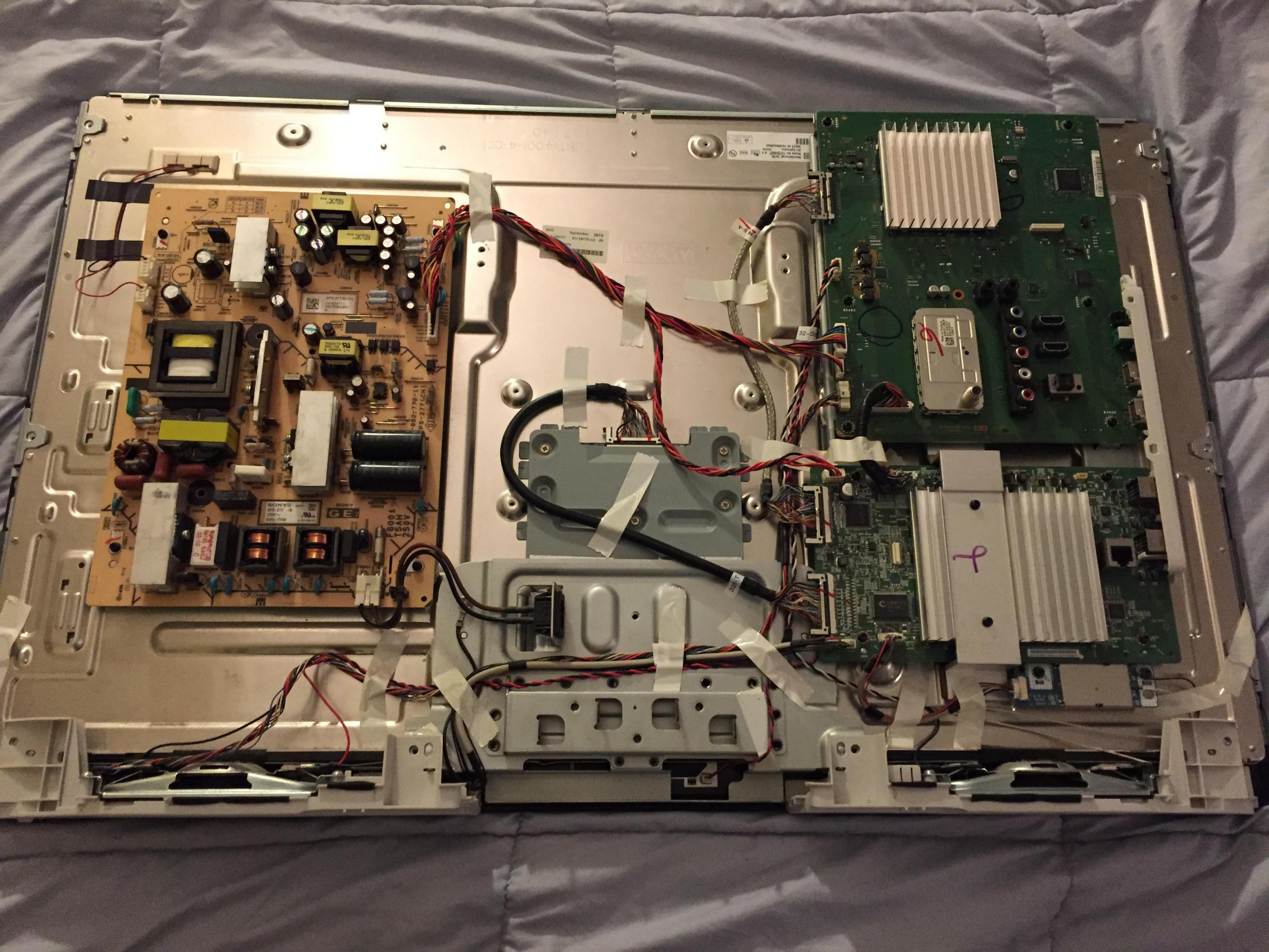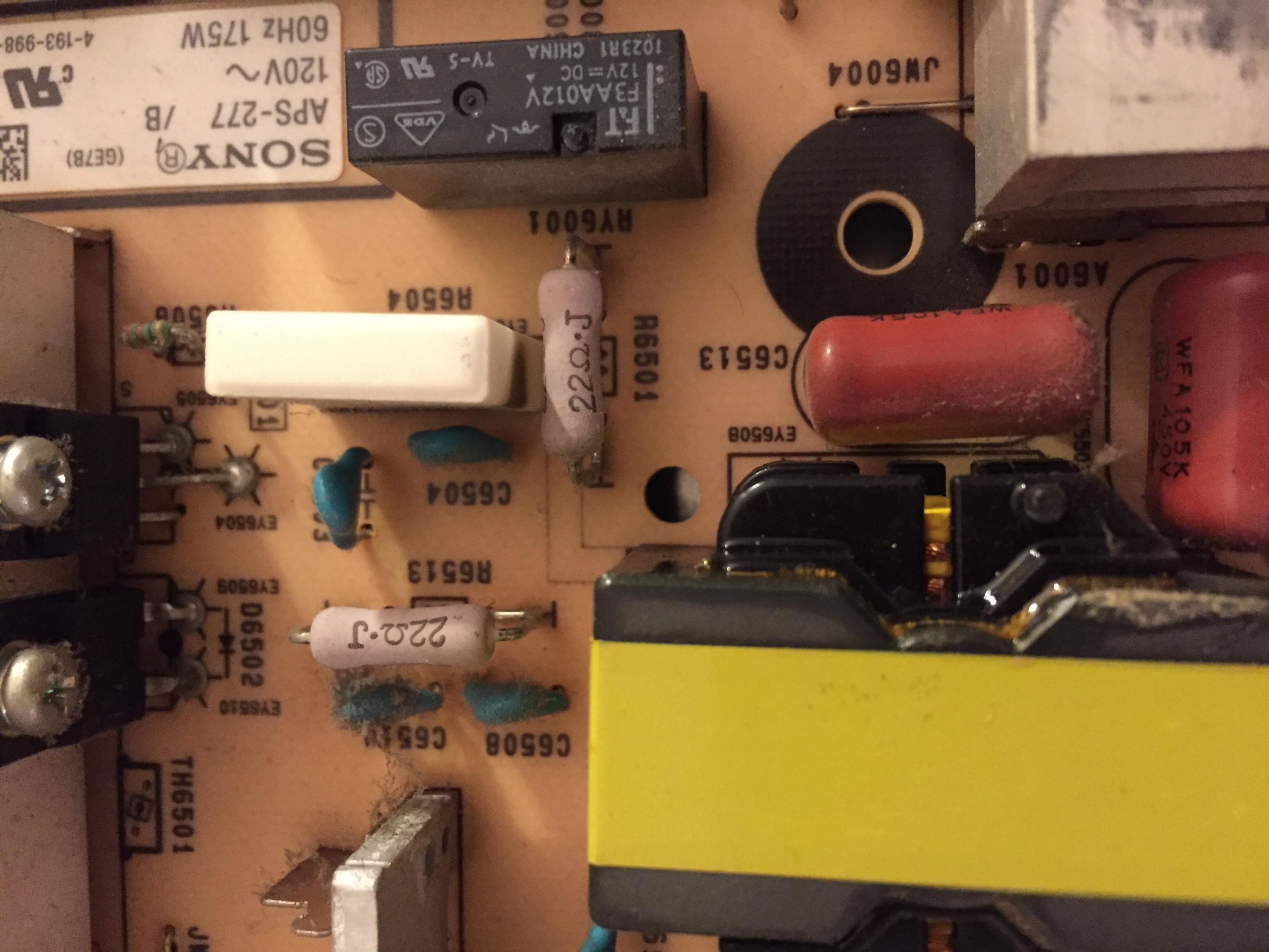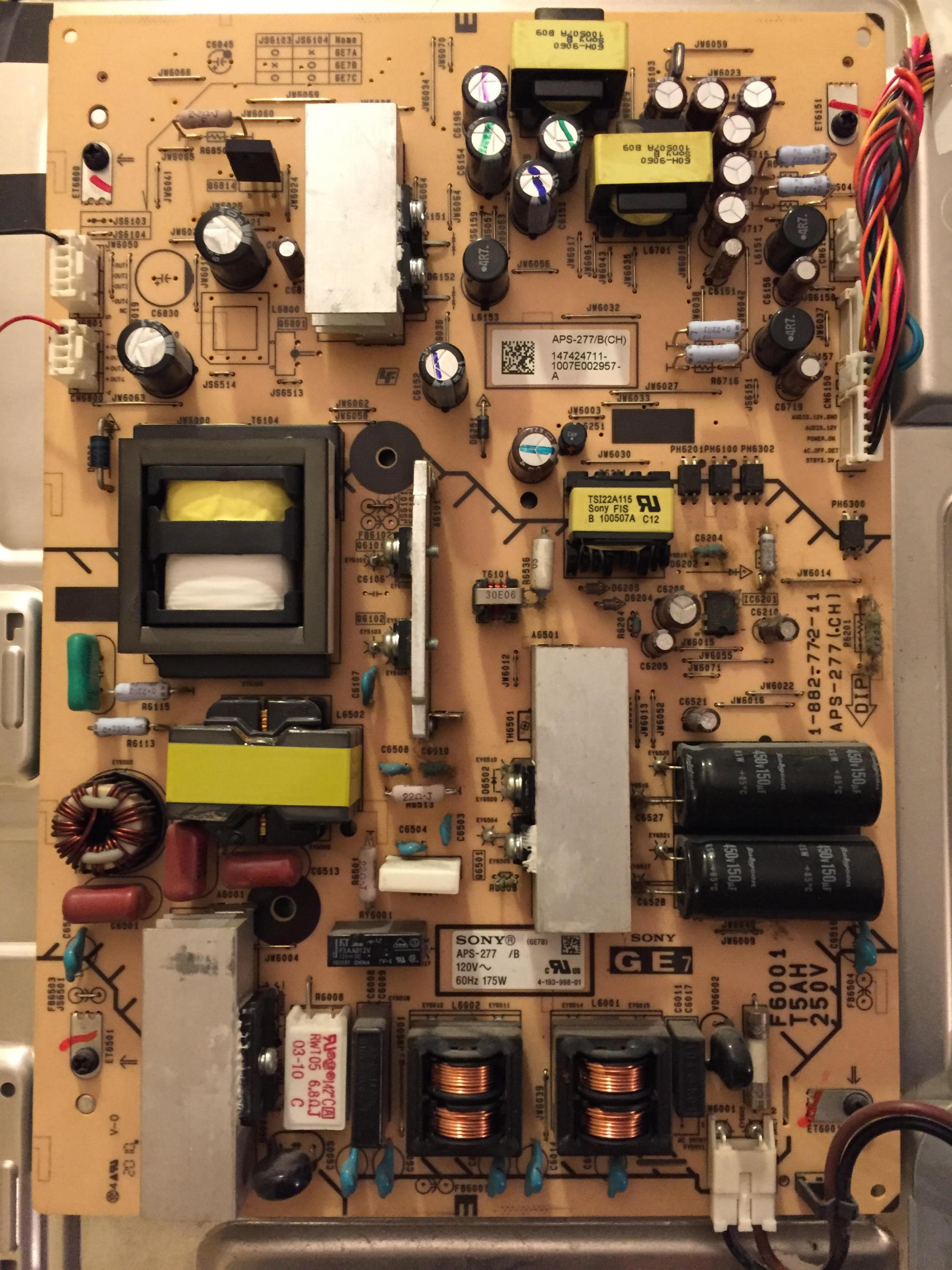 So for the NSX-32GT1 it worked very well prior to the incident. After the surge the person who turned it on advised me that it started to come and I believe the power light was on but then no lights and all it does now is a make a clicking sound. I took the back cover off the TV to see if I could find any visual signs of something being burnt out. I didn't see any. I carefully plugged the power cord in to see if could verify where the clicking sound was coming from it was clearly coming from the power supply unit. After removing the power cord and letting it set for a while I looked at the underside of the power supply and din't find any signs of damaged/burnt IC's. I also did the same for the BA board and didn't see any signs of anything being burnt out on the underside.