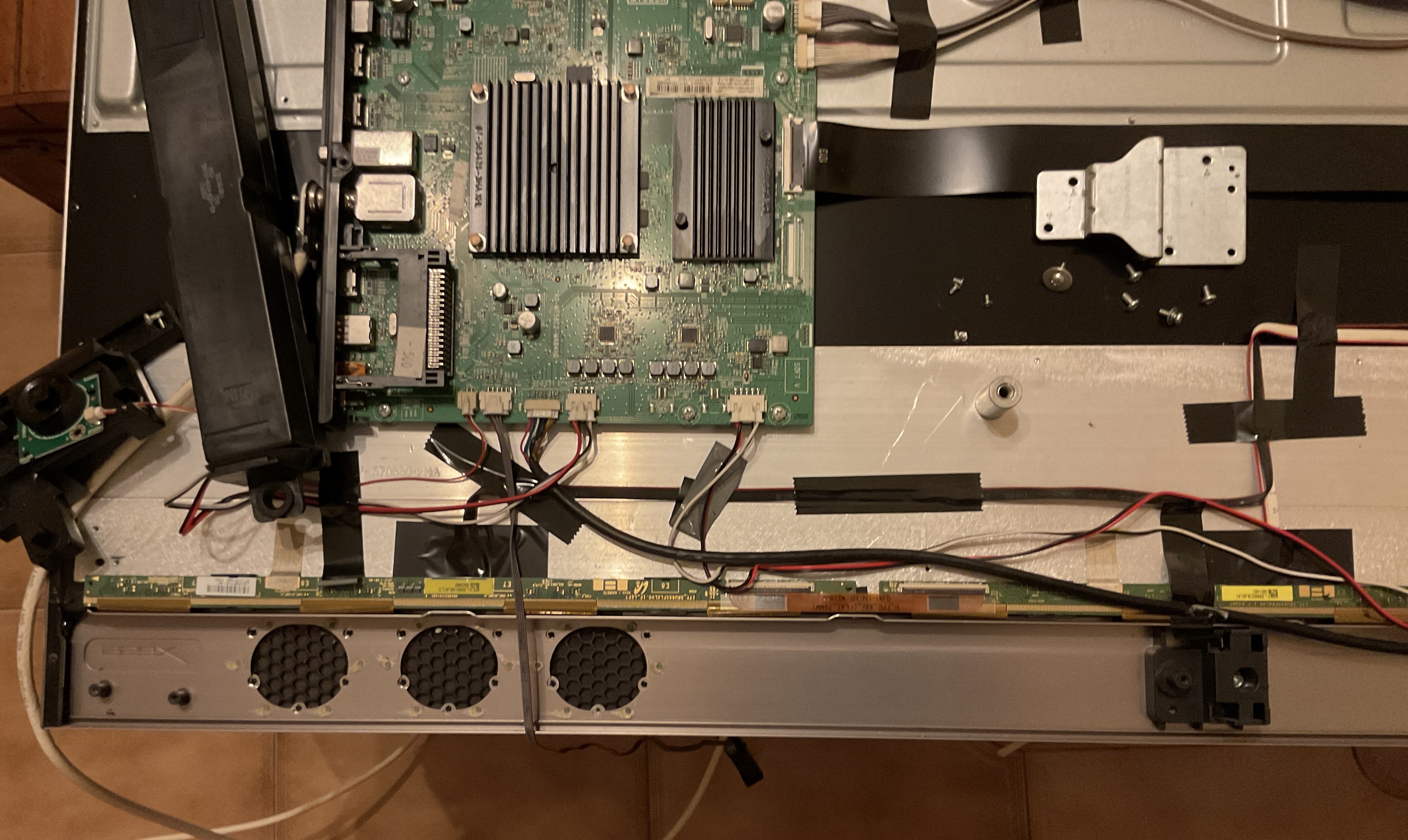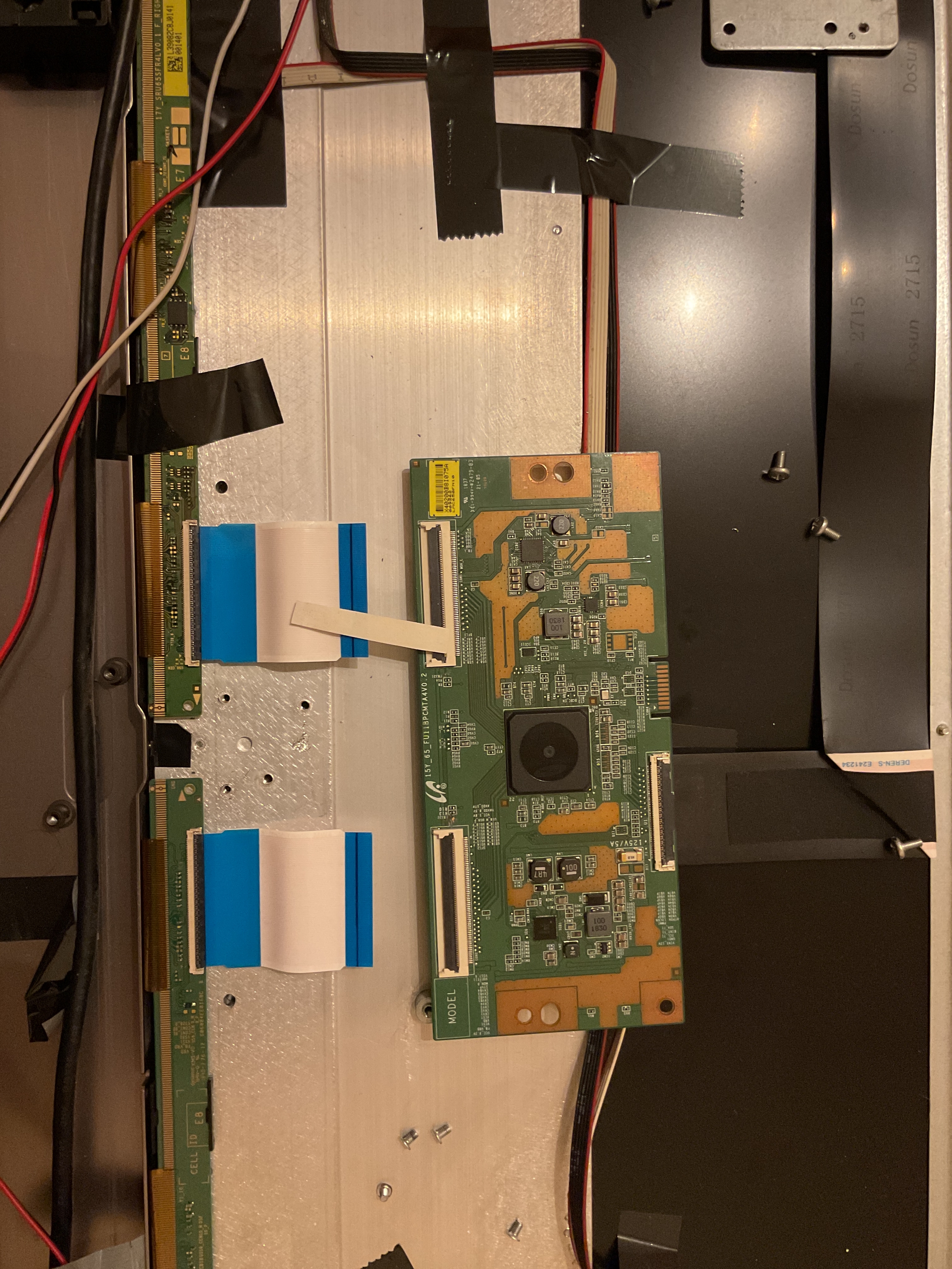 hi guys, i need your help again...i have tcl u65x9006. while i was watching it become darker like when a movie ends, little by little the image disappear. now if i turn on i have back light on, after like 1 min i have also sound but no picuture. the back light is on i take off one at time the ldvs but nothing change always no picture. i tried to cover with a piece of paper the pin of ldvs i cover like 7 8 pins but nothing worked. the tv stay with no picture. there is a tcon board.i checked the voltage there on the fuse i have 11,8 volts. there is caps in shorts on the exit of the tcon i have 3,3 volts 1,8 volts and then 0.5 volts for the other pins, i dont know if it s low or it s correct. also if i take off one ribbon capble at time the voltage did not change. do you think the panel is gone....o maybe it s the tcon board or the main board someone can help me and say me what voltage i have to check up. i trashed a 75 inches samsung some months ago always with the same problem...this tcl is new like 3 4 years old 4k....someone can help me? i put a photo of the tcon someone can help me. maybe i wronged to cover the pin with the paper i need to cover more pins?