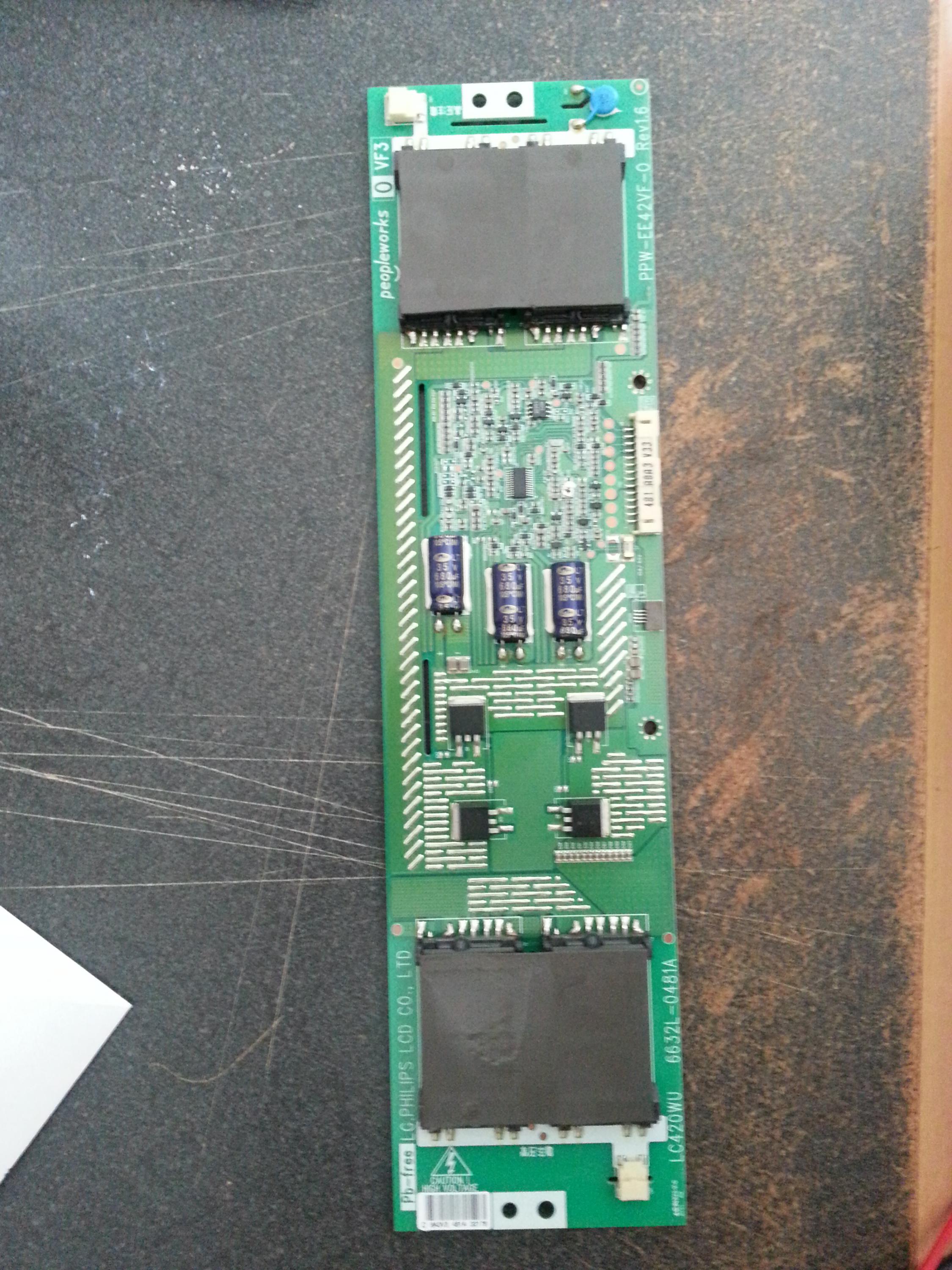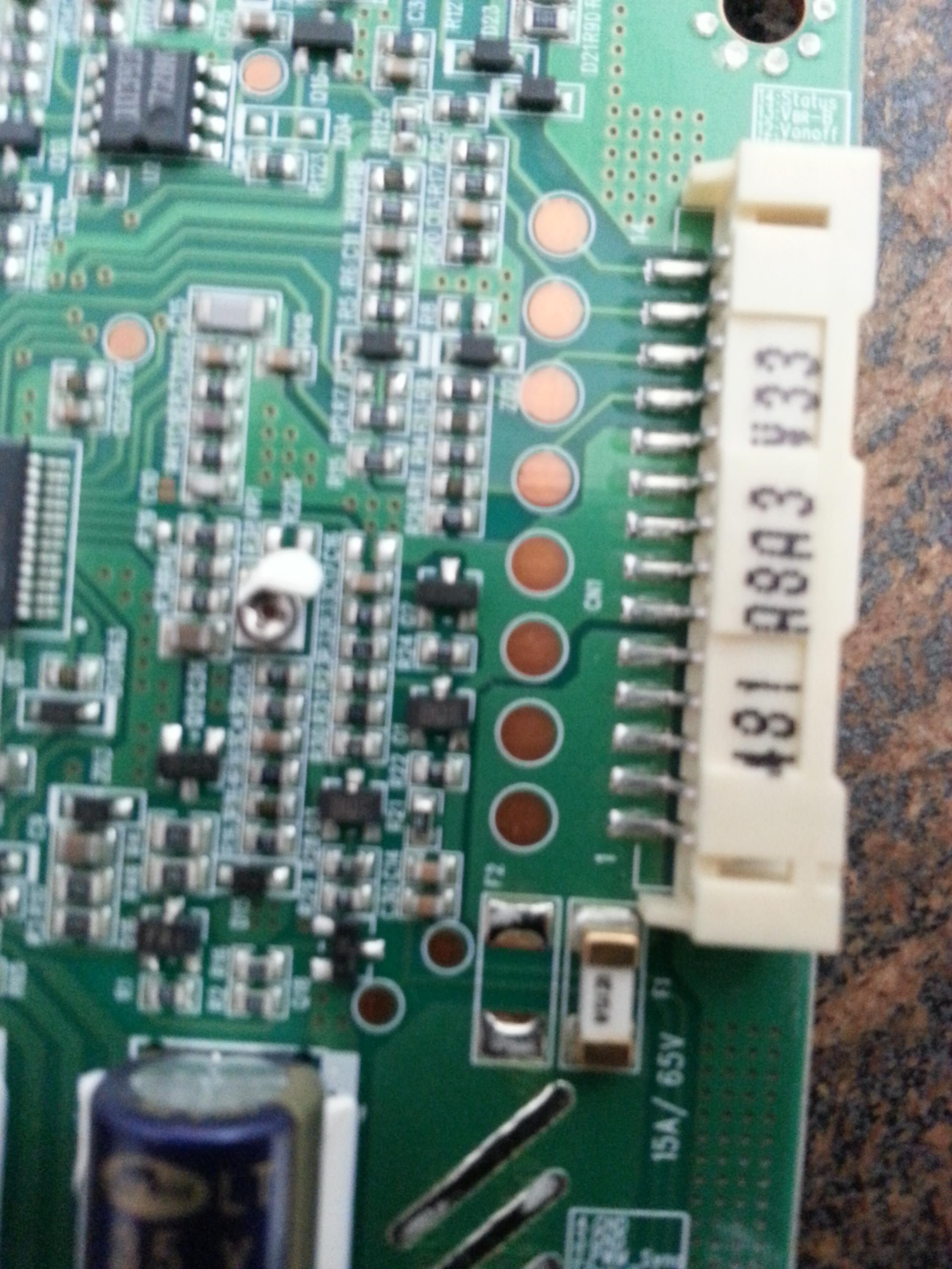 Is there a good resource posted on this forum for this? I have an RCA L42FHD37 with a bad backlight inverter (6632L-0481A), and wanted to see if it was worth it/possible to hunt down the component failure. In the second picture, the two groupings of test points are shorted - the bottom 2 are positive and lead to the smd fuse below, the upper two are ground.