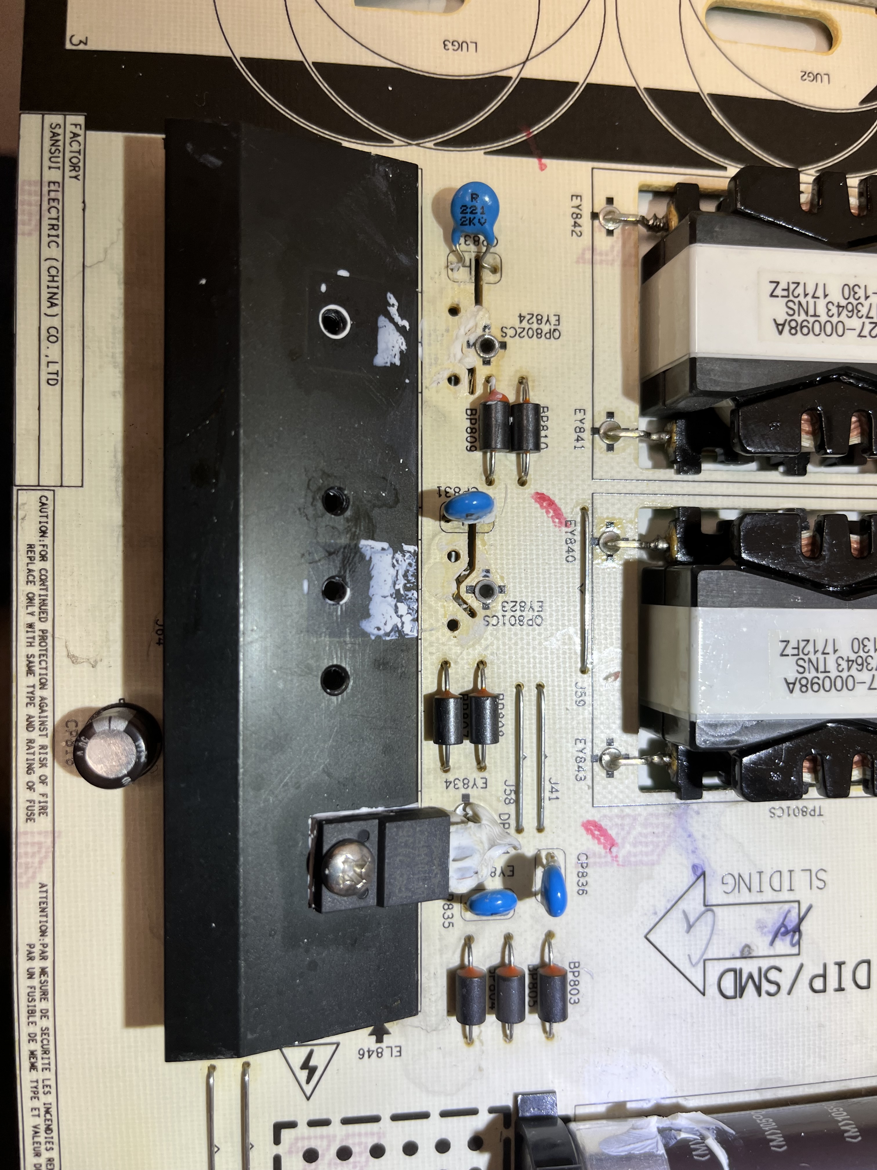 Hi, have this Samsung QE 75 Q 7 FGMTZG TV with no function. First analysis shows the power supply board is dead and fuse blown. Power Supply has the number BN94-11439A. I did short circuit test transistor and diodes and those do not appear to have shorts. I must admit I did not look at every single data sheet.