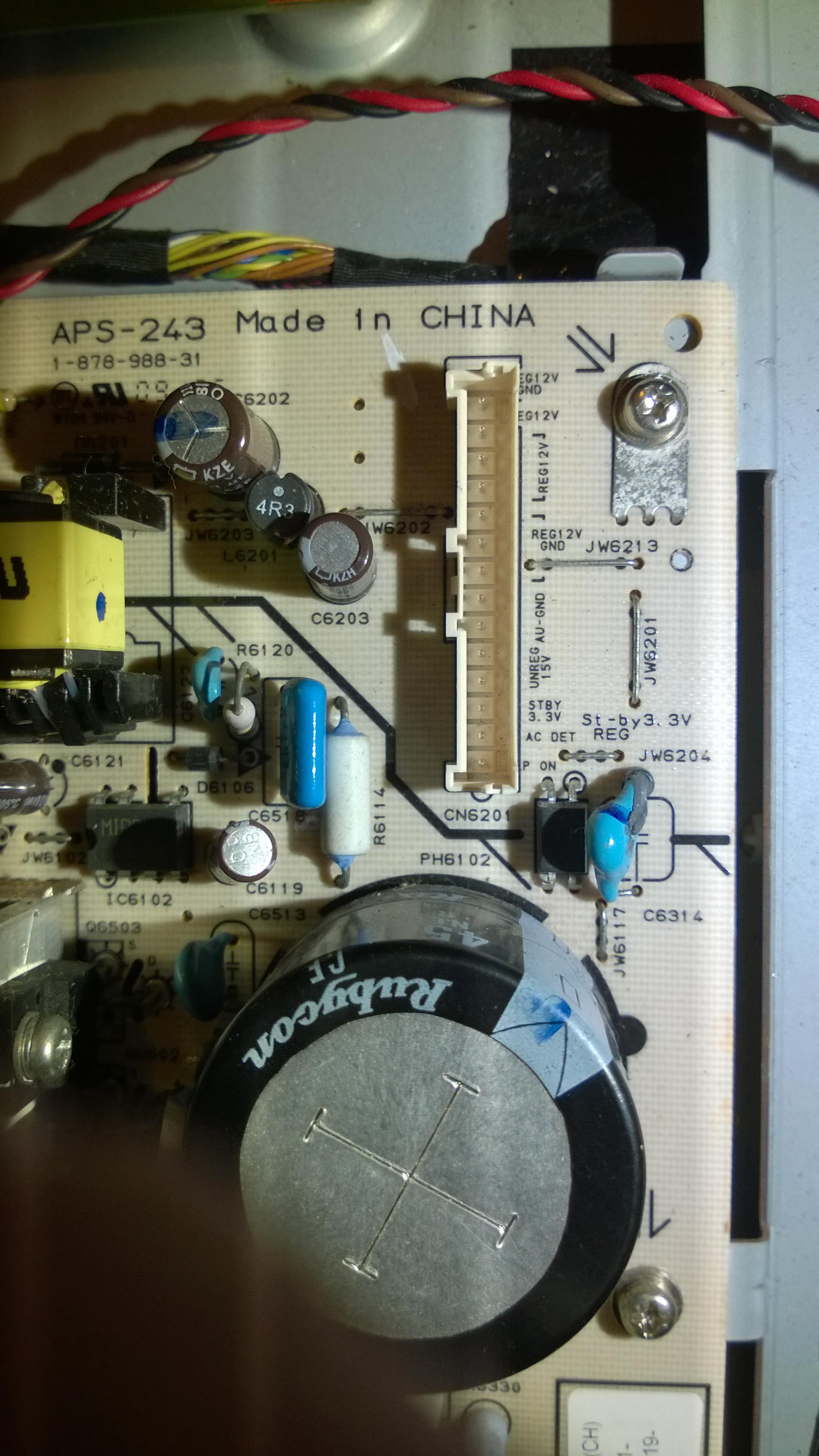 Well, I put it aside until recently when I took a look inside the t.v. I couldn't see any bulged or leaking caps so I tried to check the small board connected to the LCD panel.