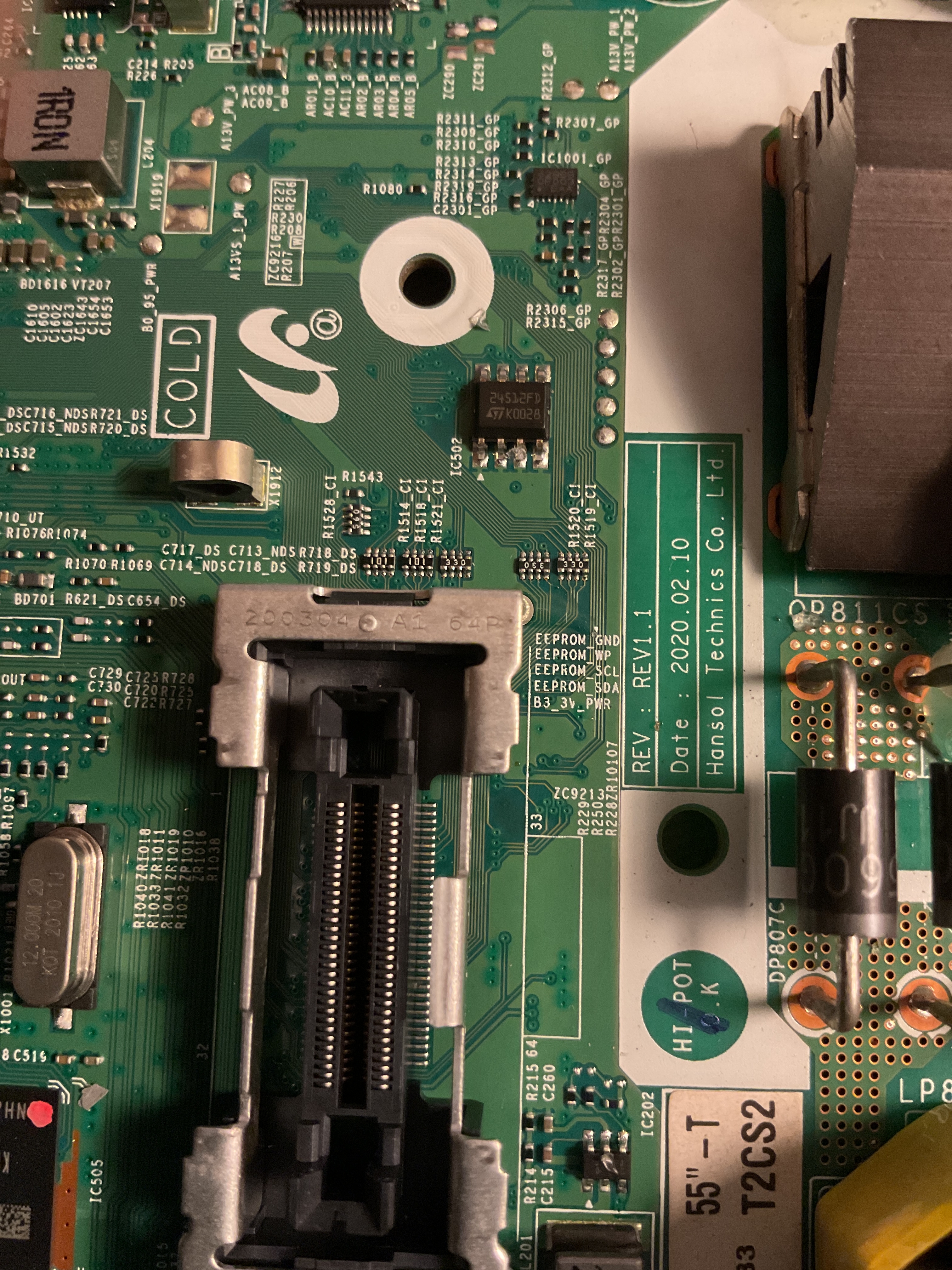 and you have the dump for this model? where can i find?It is better to unsolder this chip (eeprom) and save its data (dump), so that later you can experiment and if anything return everything back, it is useless to look at this dump, since it is individual in each TV, you just need to throw in the firmware from the same working TV for diagnostics...Comment