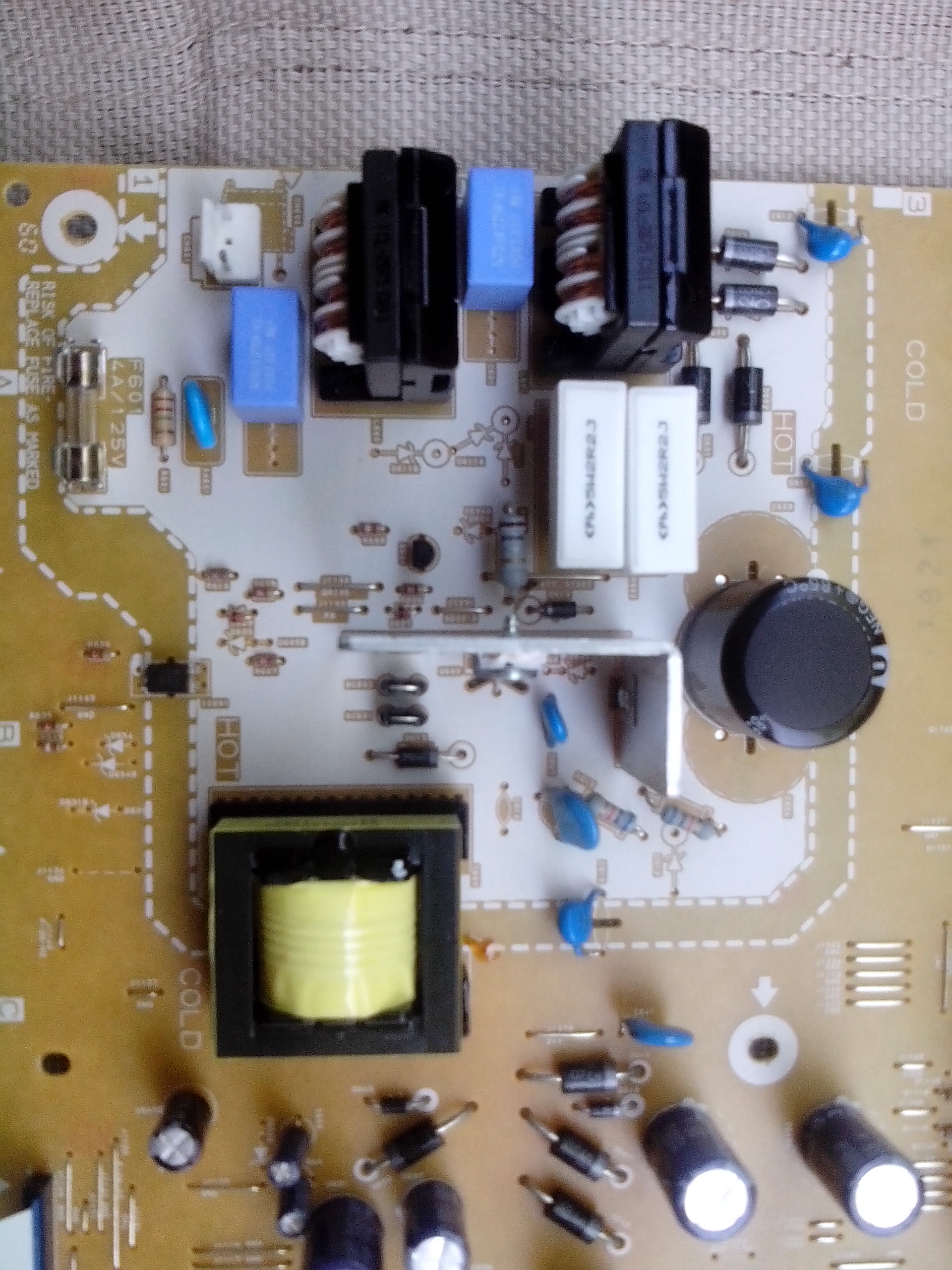 It is an Emerson LC320EMZ.....I am attaching the power board pictures of the front and back.I apologize if the images are hard to view because I am using a camera phone under a house light.Thanks for your help!