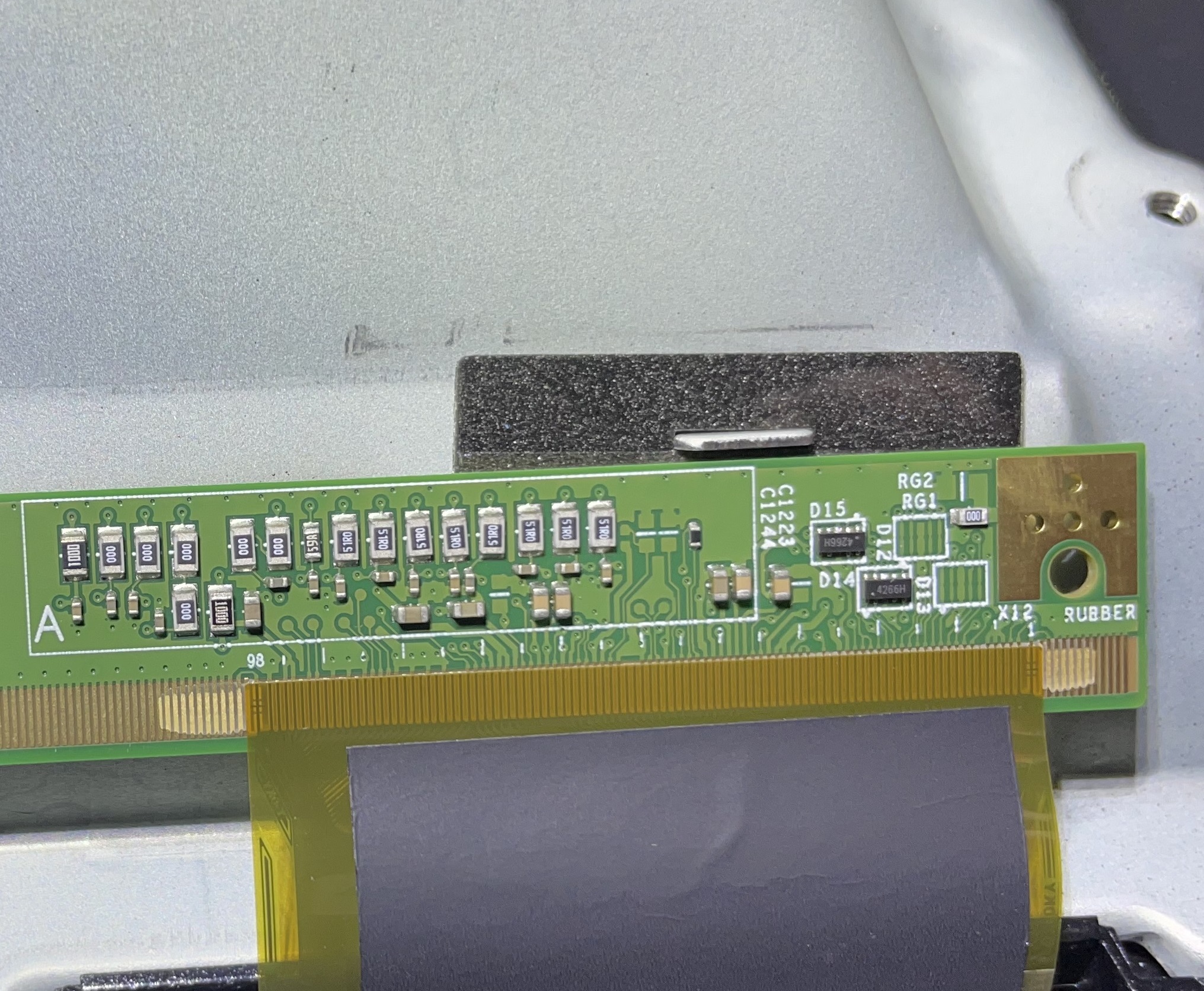 I'm working on a Vizio Model V555-H1 that displays a cascading series of horizontal lines when first powering on. These lines appear to be in the shape of the Vizio Logo and descend until reaching the logo before resetting to the top and continuing their descent. I have reseated my TCON board and dusted connections but still have this fault displaying. I'm familiar with vertical lines but this one is a new one for me. My research into this problem hasn't yielded results as keyword searches point back to vertical line problems.