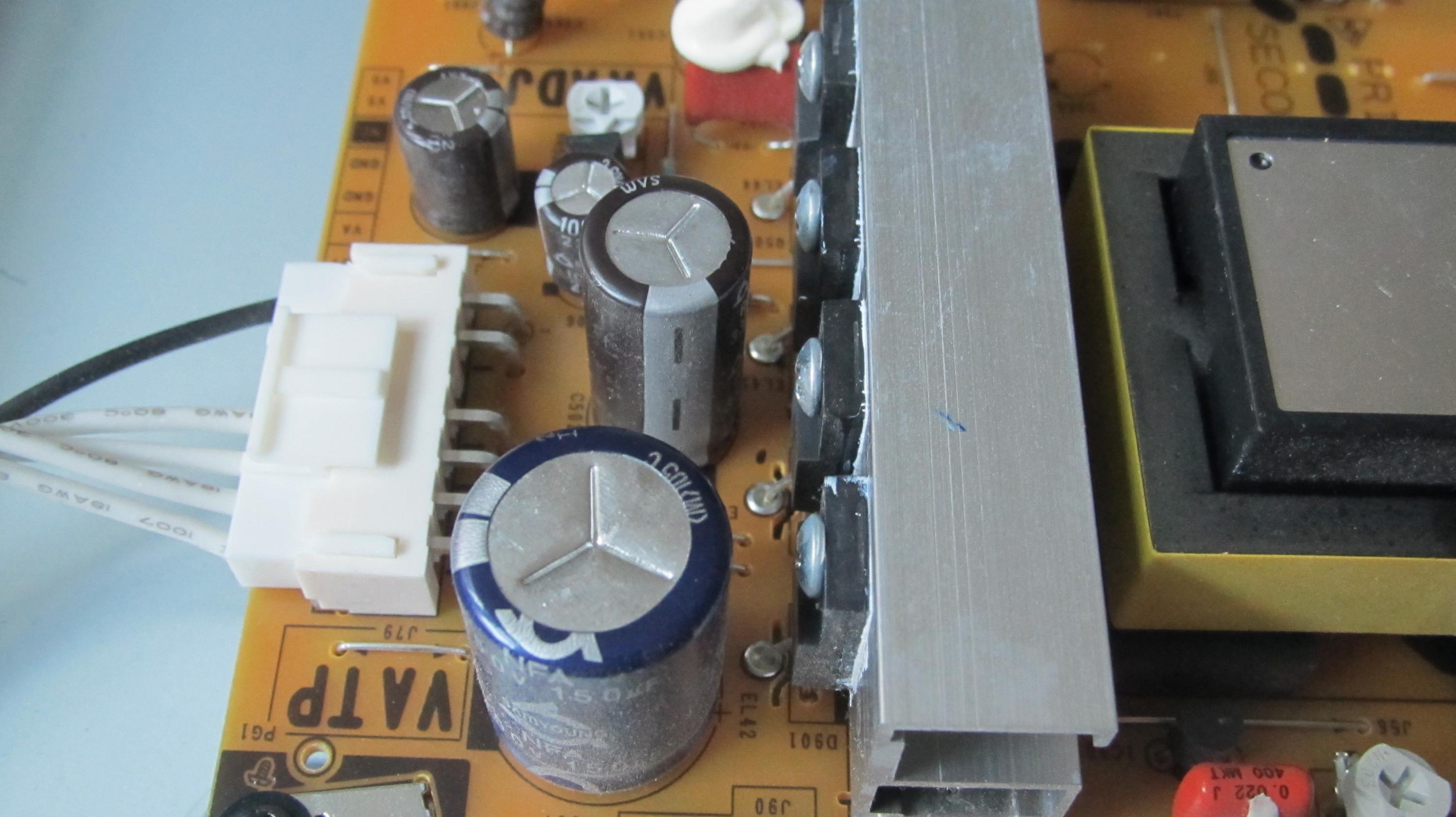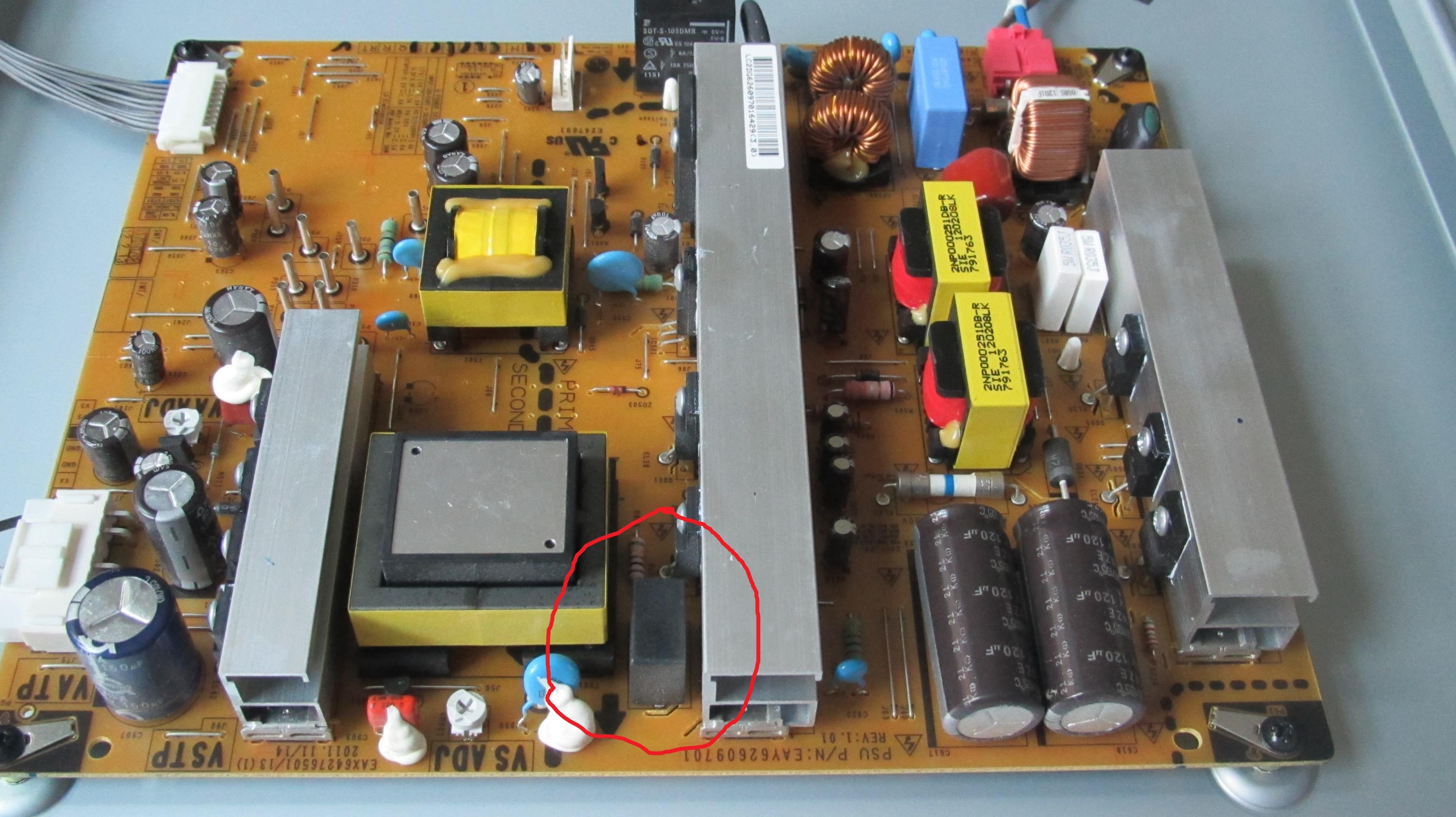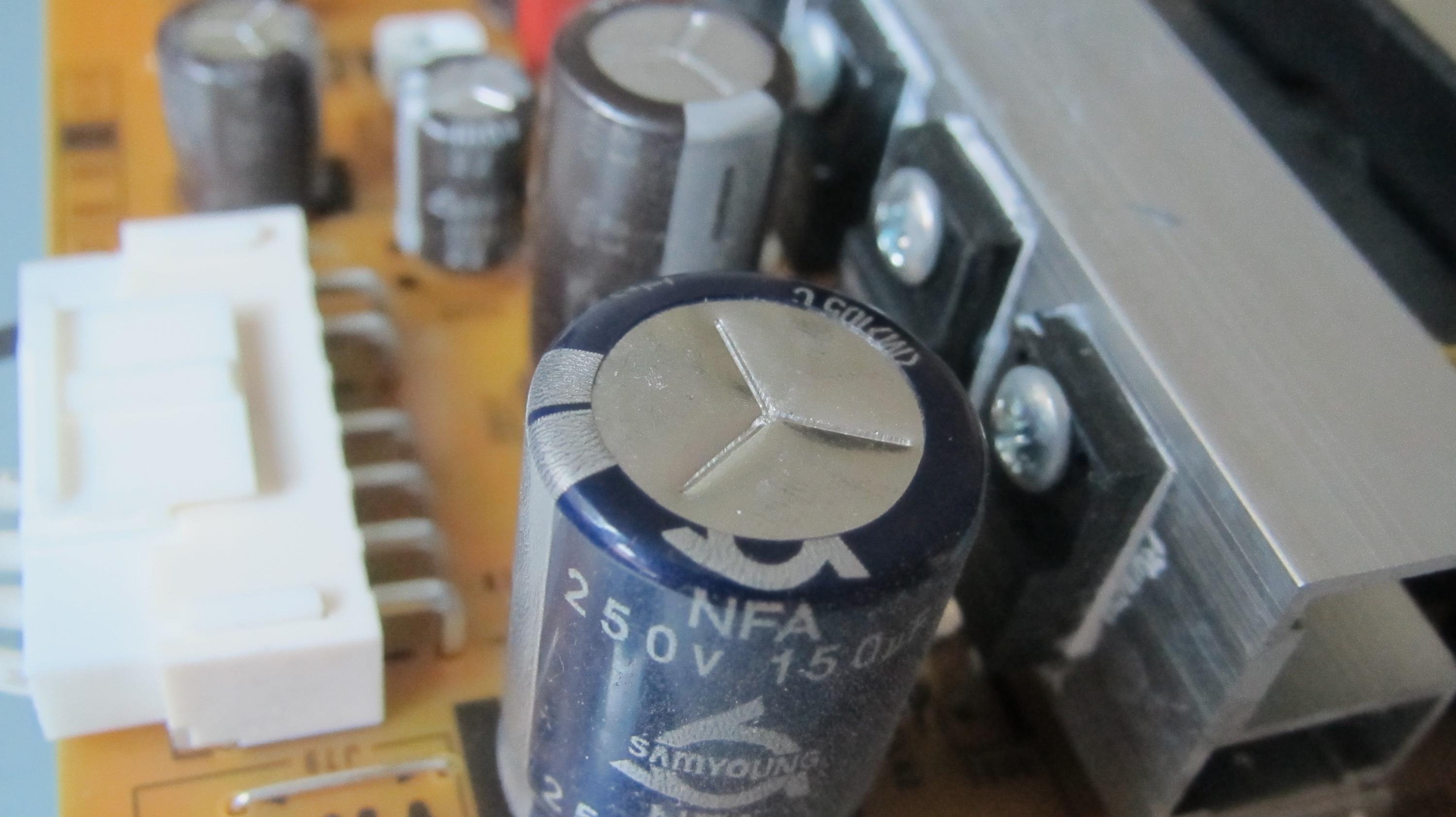 I've opened up the TV, and carefully looked at the PSU board and it seems to me that one of the caps is bulging. Is this assessment correct based on the pics below? If I replace this cap with a new one do you think the TV has a chance of coming back to life or should I just replace the entire PSU board?