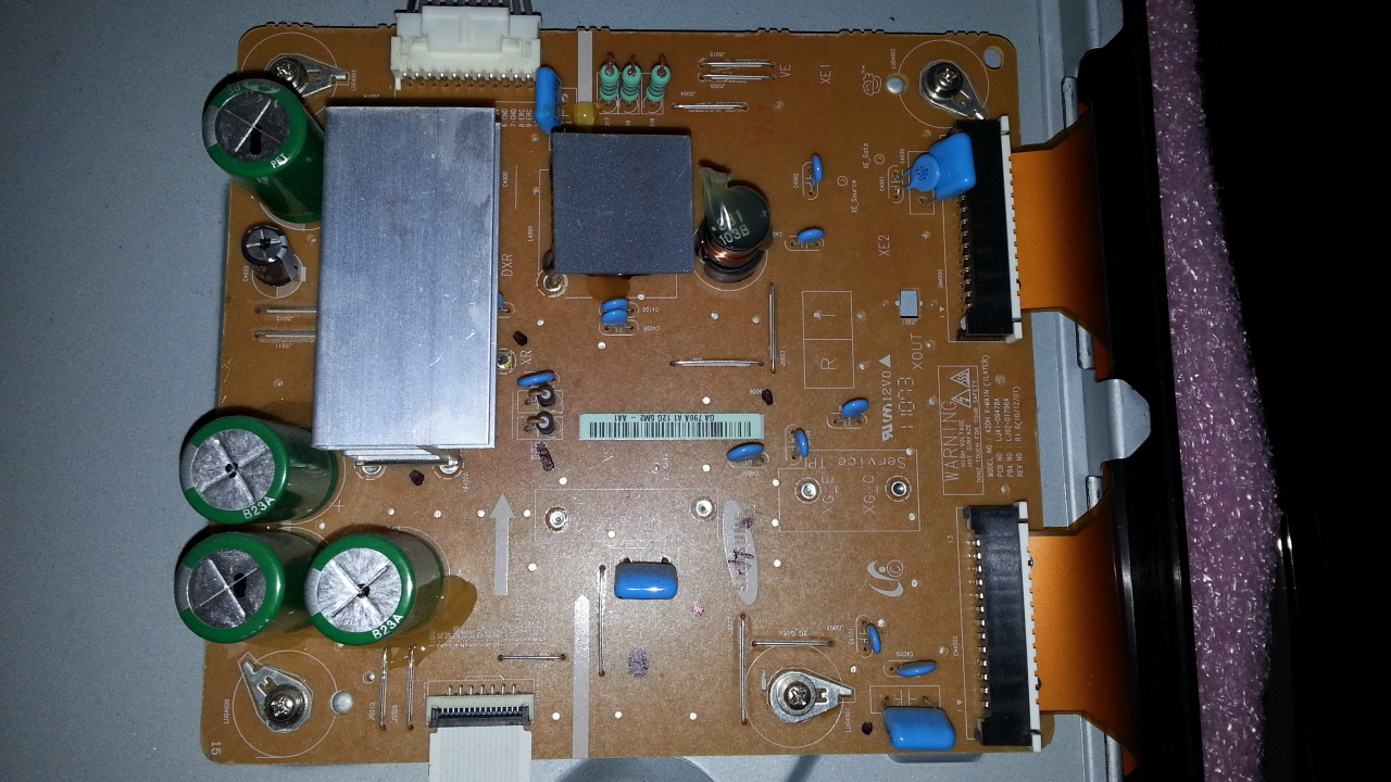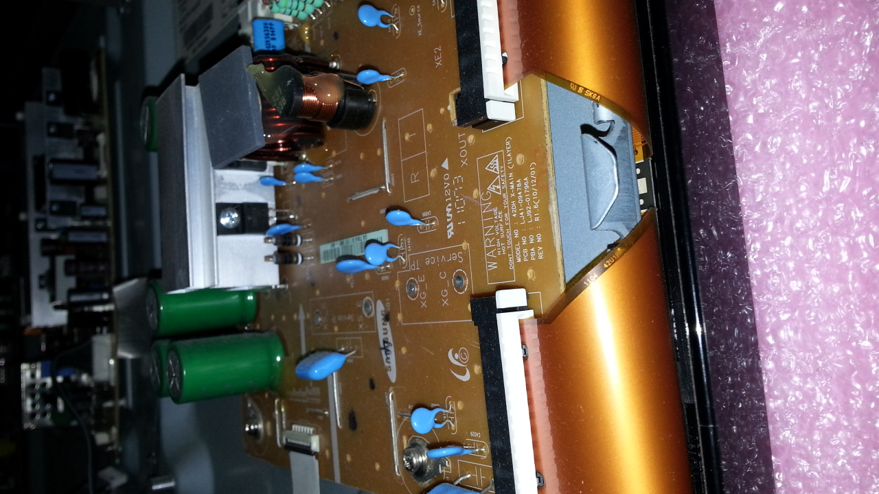 When I plugged in the power cord the tv started up with the samsung chime, psu started clicking then I heard a small pop and magic smoke coming from the xmain board near the capacitors