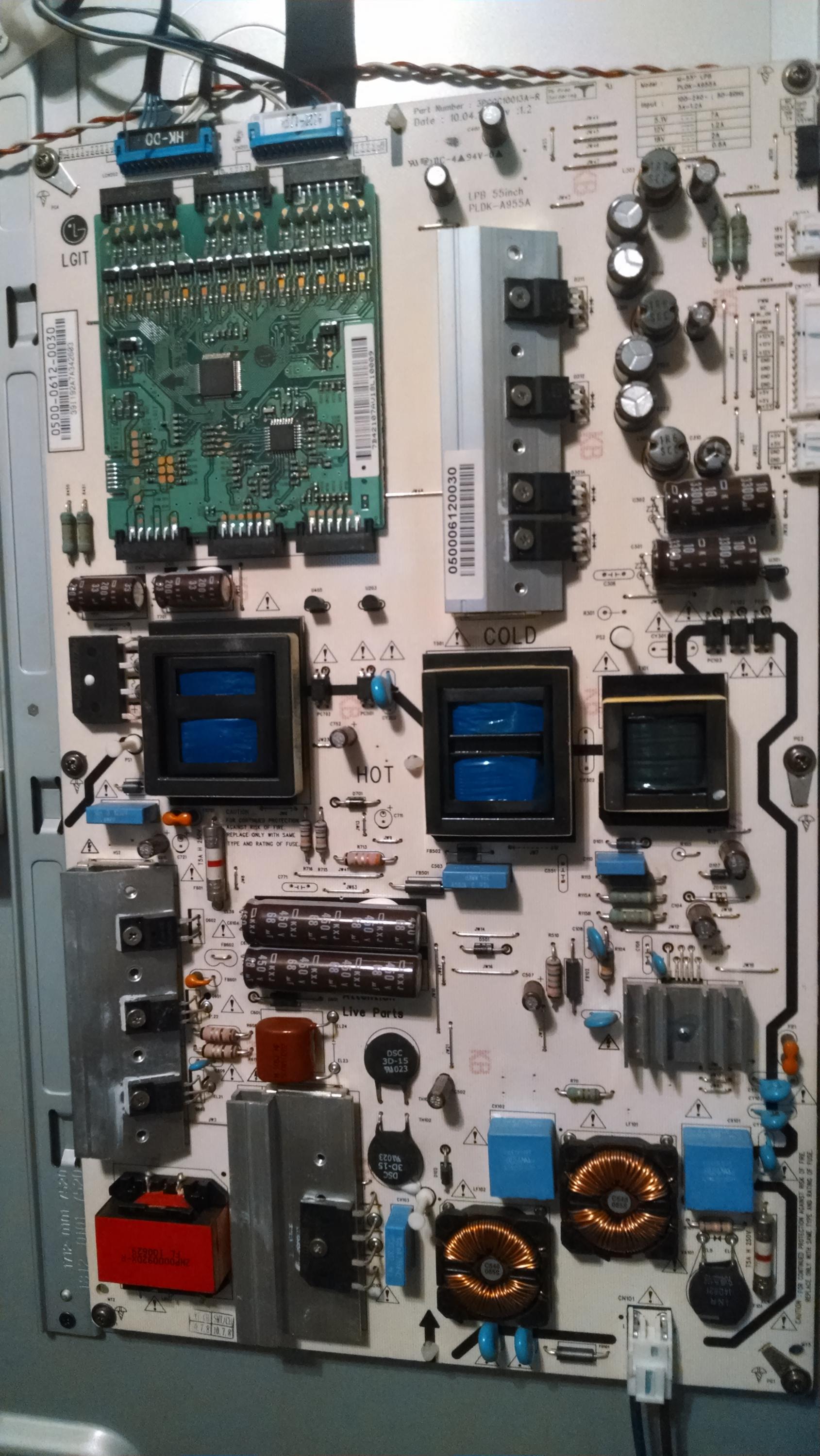 Okay folks I know there have been a few on this t.v before and believe me I have read them. I have already inspected caps and there do not seem to be any bulging at all. Here is what happens. I plug the television in the logo does the white / orange flash for an extended period of time. Then I am able to power the tv on and I get the Vizio startup screen (Non-responsive) to anything and then it powers itself down and backon again in an endless loop unless I unplug. Of course here are the pictures.