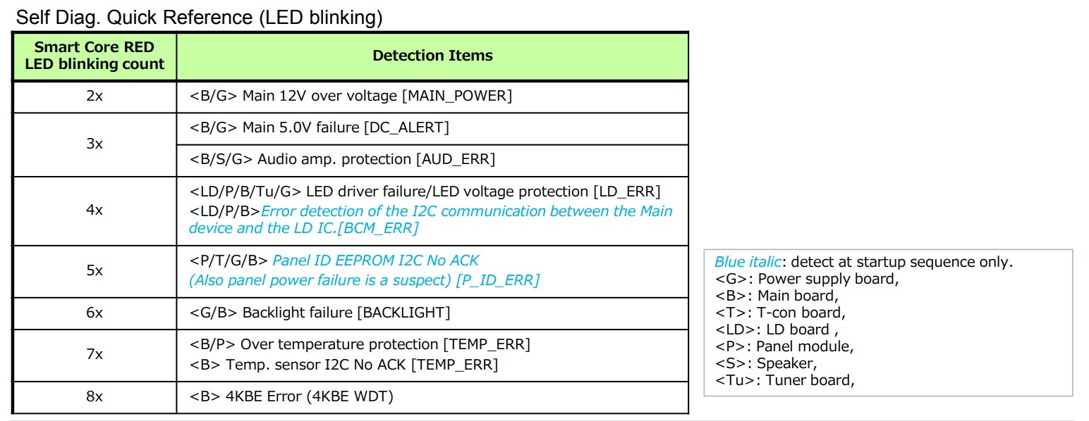 I have Sony and android logo. but then 4 led red flash lights front of the tv