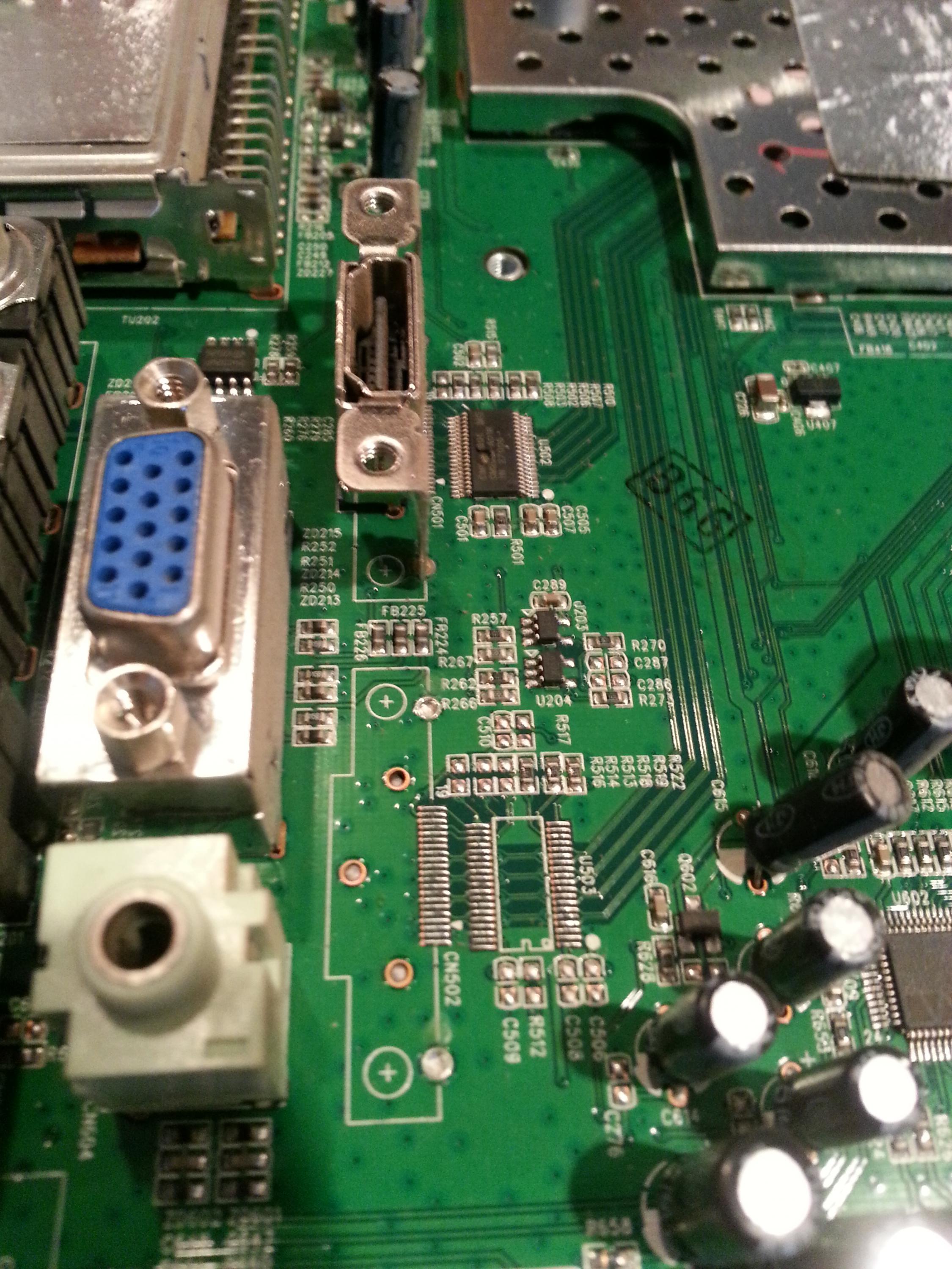 I've seen several people here lately with failures due to the HDMI chips, and they removed it to get the TV up and running. So I thought that would be ok for now, since I would likely just use the VGA in the closet. Removed and no dice, unfortunately. Still no bl_on, though an update on the 12v - it's 12.2v with power off, 13v with power on. Still the same 160-ish on the primary cap both in standby and turned on, though that's not surprising since it's not technically turning on. I'll check around for a cheap main board.