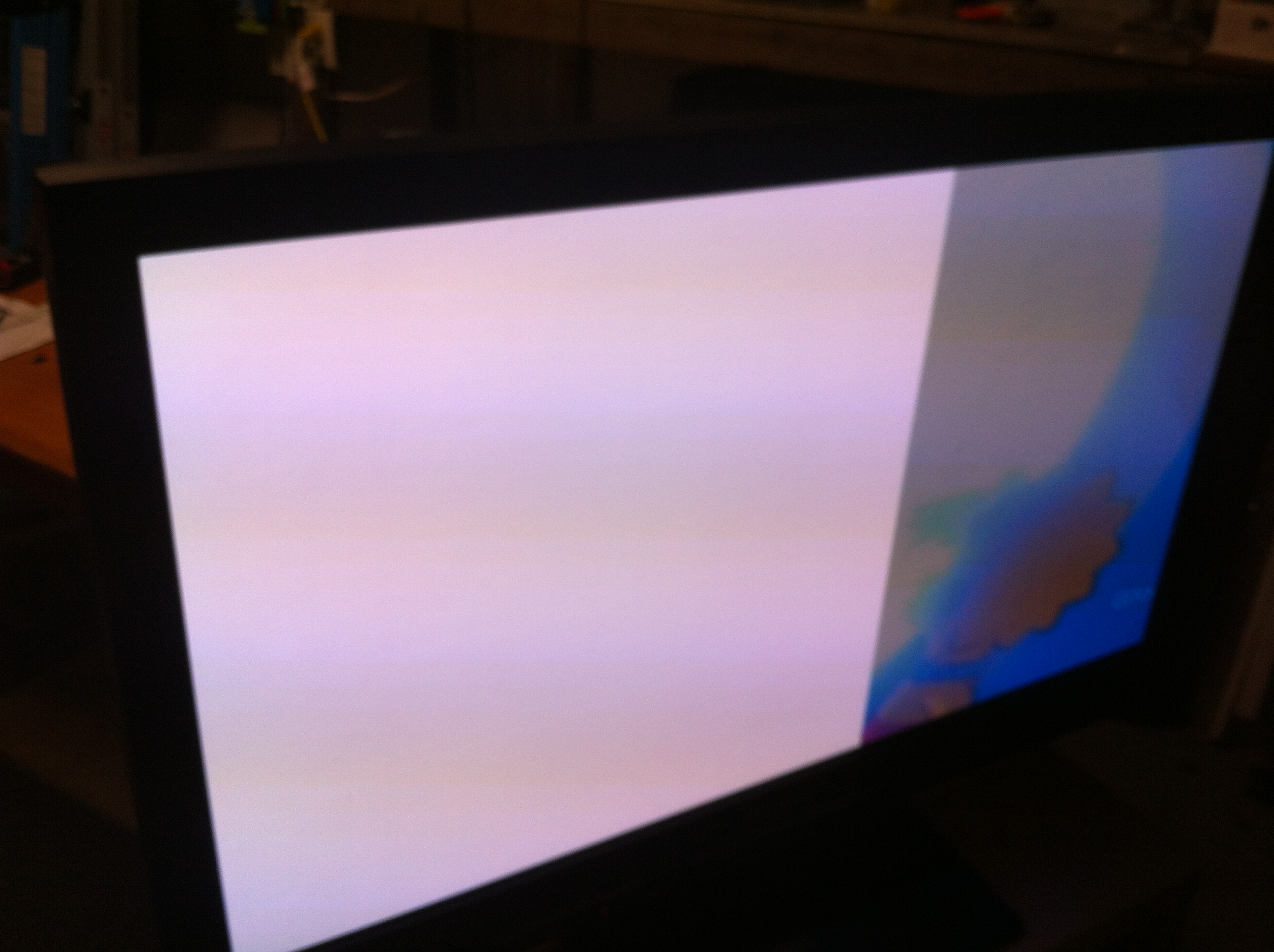 2.I have attached two recently new pictures, the first on shows the whole screen with normal picture and the second will show only picture in 1/3 of the screen with normal picture and 2/3 of the screen white which it is how it looks the 99% of the time. These pictures were taken the connector A5/D5 connected to the faulty A board that I was able to bring back to life.
