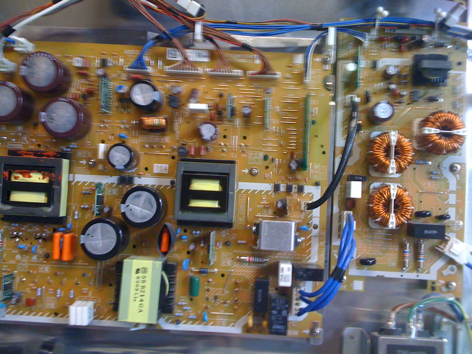 The problem with this A board was the well know after power surge or electric storm problem; where the TV will turn-on with a steady red led light without picture or sound and the screen will turn on with a dim light. Other symptoms are: the TV won't answer the remote control, to turn it off it has to be unplugged and the TV will experience power cycles most likely for the absence of signal.