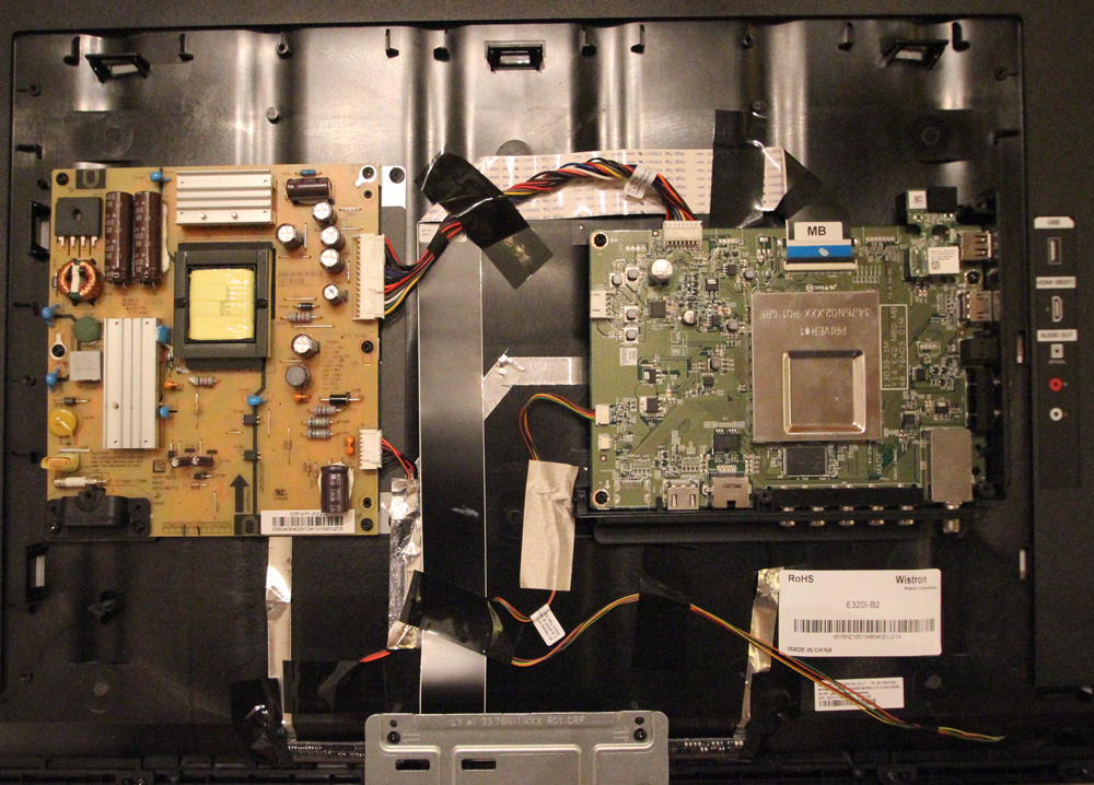Vizio E320i-B2 took an indirect lightning hit the other night. Now it will power up with the Vizio "V" logo on the screen and then turn back off. Can not see any bubbled caps. Are chances good it is a power supply issue. Found them for about $20 on EBay - would it be easiest to purchase the entire board?
