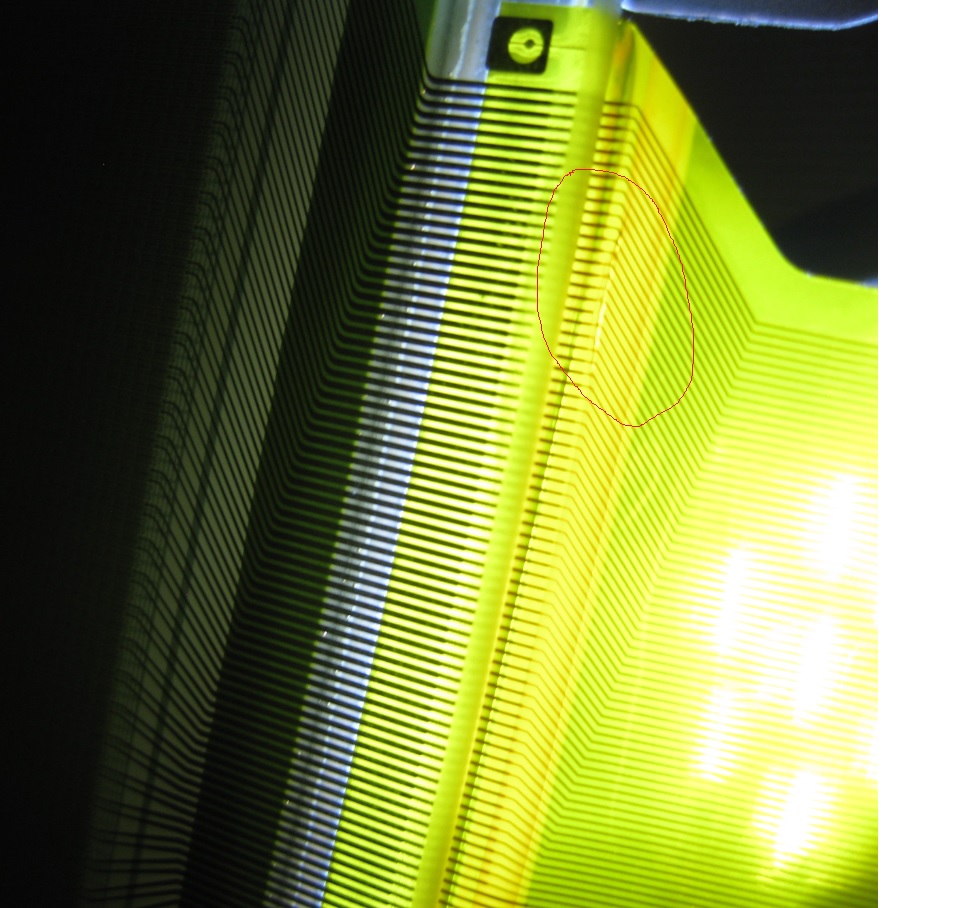It's hard to solder it, so I thought it could be fixed same way as the LCD Tab Bond issue by giving pressure to the broken area, but this was wrong !!
