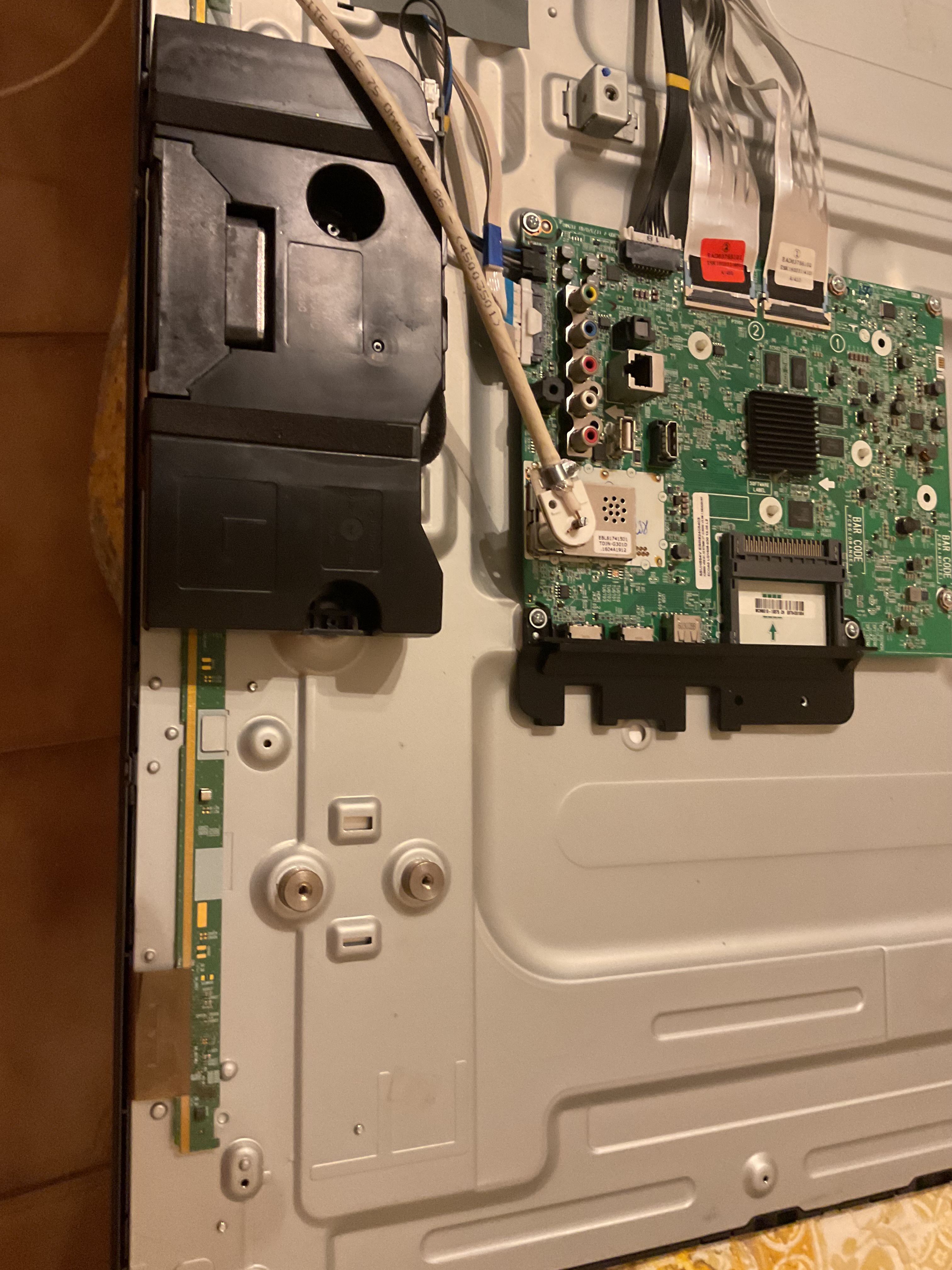 Sorry Iotas, I try to explain better. The tv didn’t have tcon, but only the main board, I think the problem is on the right side where the pack of 10 resistors becomes very very hot. If I measure them I have 100 ohm each in both the buffer board on the left and right side. On the right side there are other resistors that give me like very low resistence I put the photo.