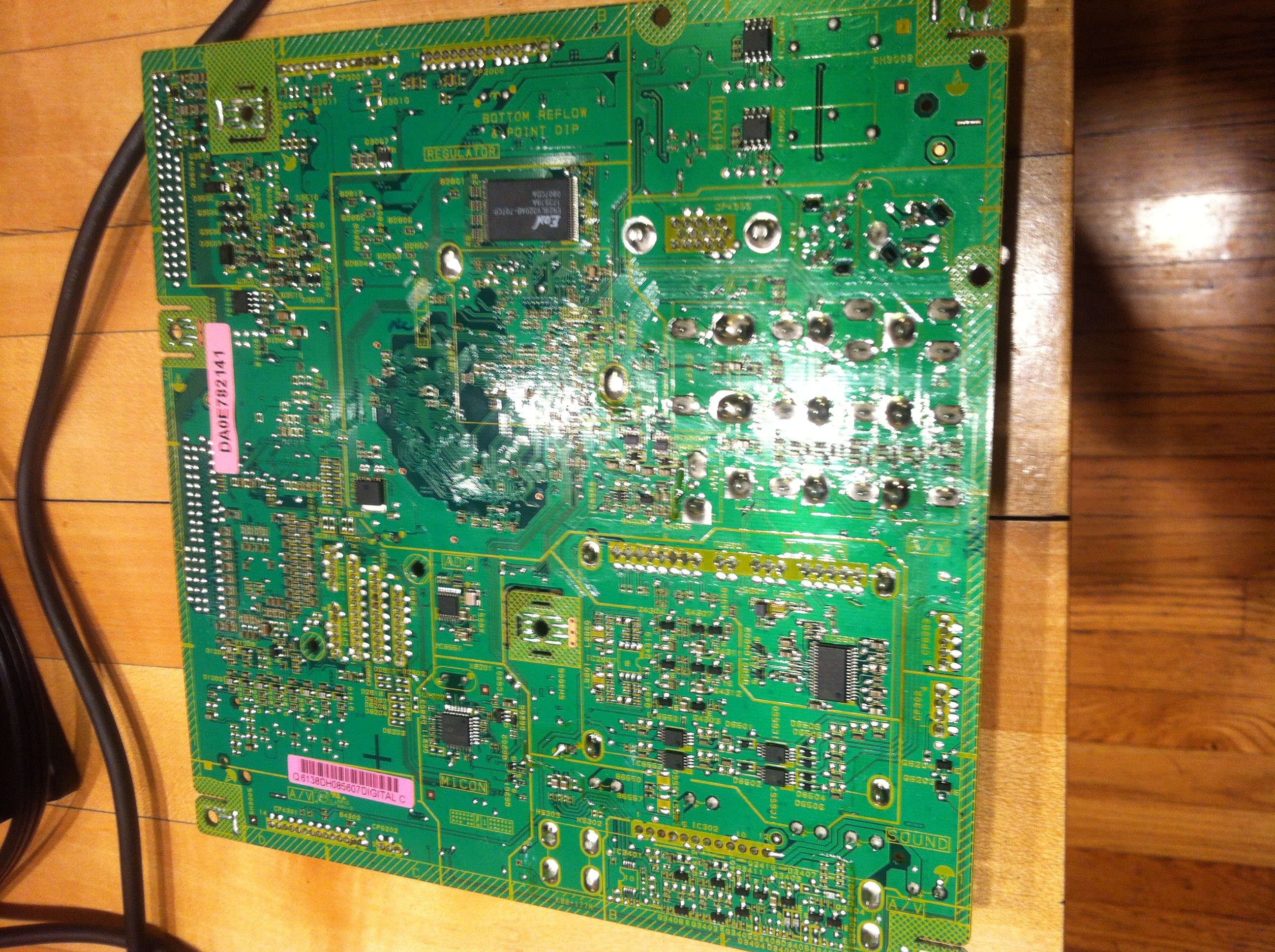 Picked this up with the intention of fixing it for a family friend with no TV. It has a built in DVD player, which, when the TV is turned on, works fine and will play movies. However, the HDMI ports do not work. Main boards are too expensive to be worth fixing this thing. Any ideas on what components to test? IC1303 looks fine (even though that failure causes different things to happen).