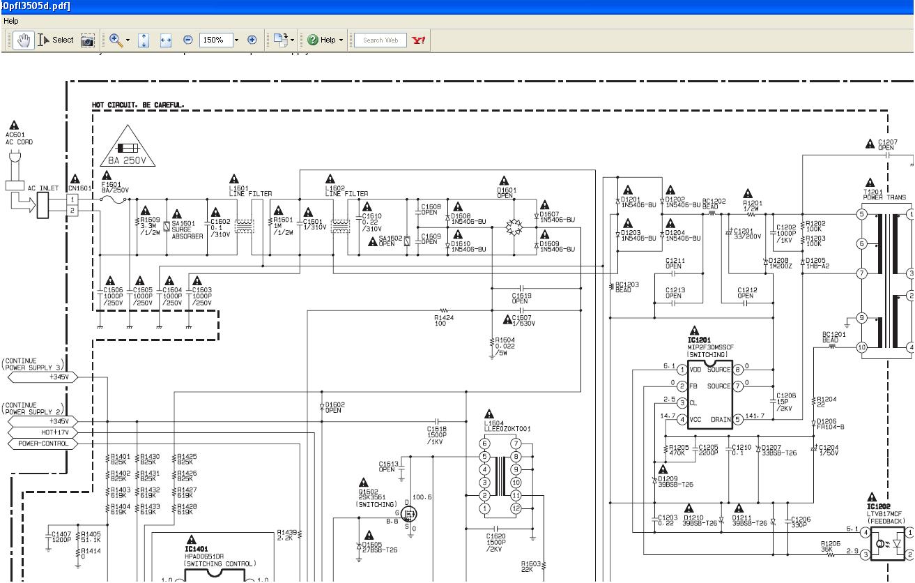 It had D1202 and R1609 bad and they were replaced along with new C1602 and SA1601 just to be safe. Put in a new fuse and plugged it in and instantly blew the fuse again. Now D1203 and D1203 come up bad. In the above mentioned thread https://www.badcaps.net/forum/showpo...&postcount=169 someone mentions D1208, a zener diode, as the cause for their fuses continuing to blow.