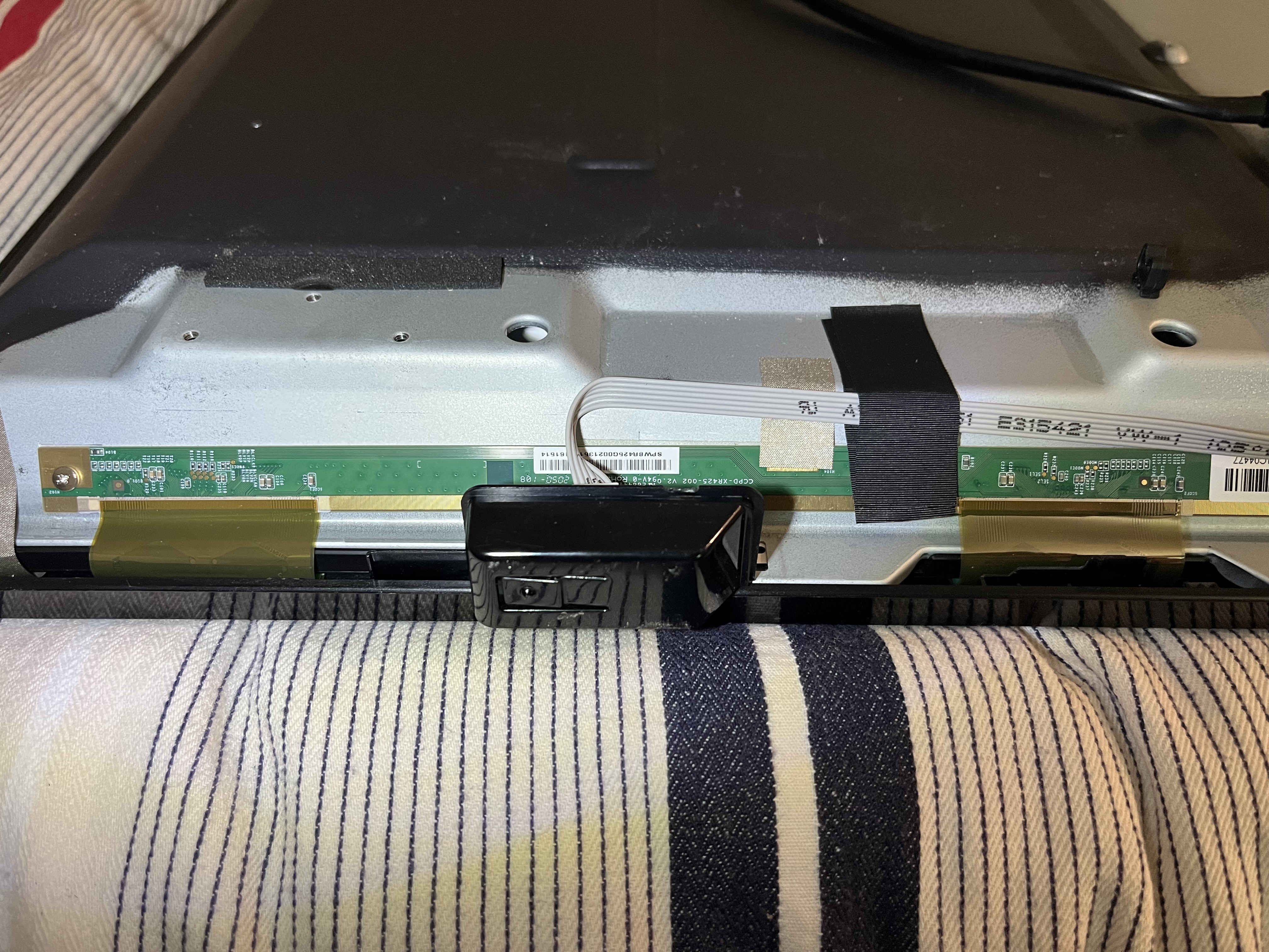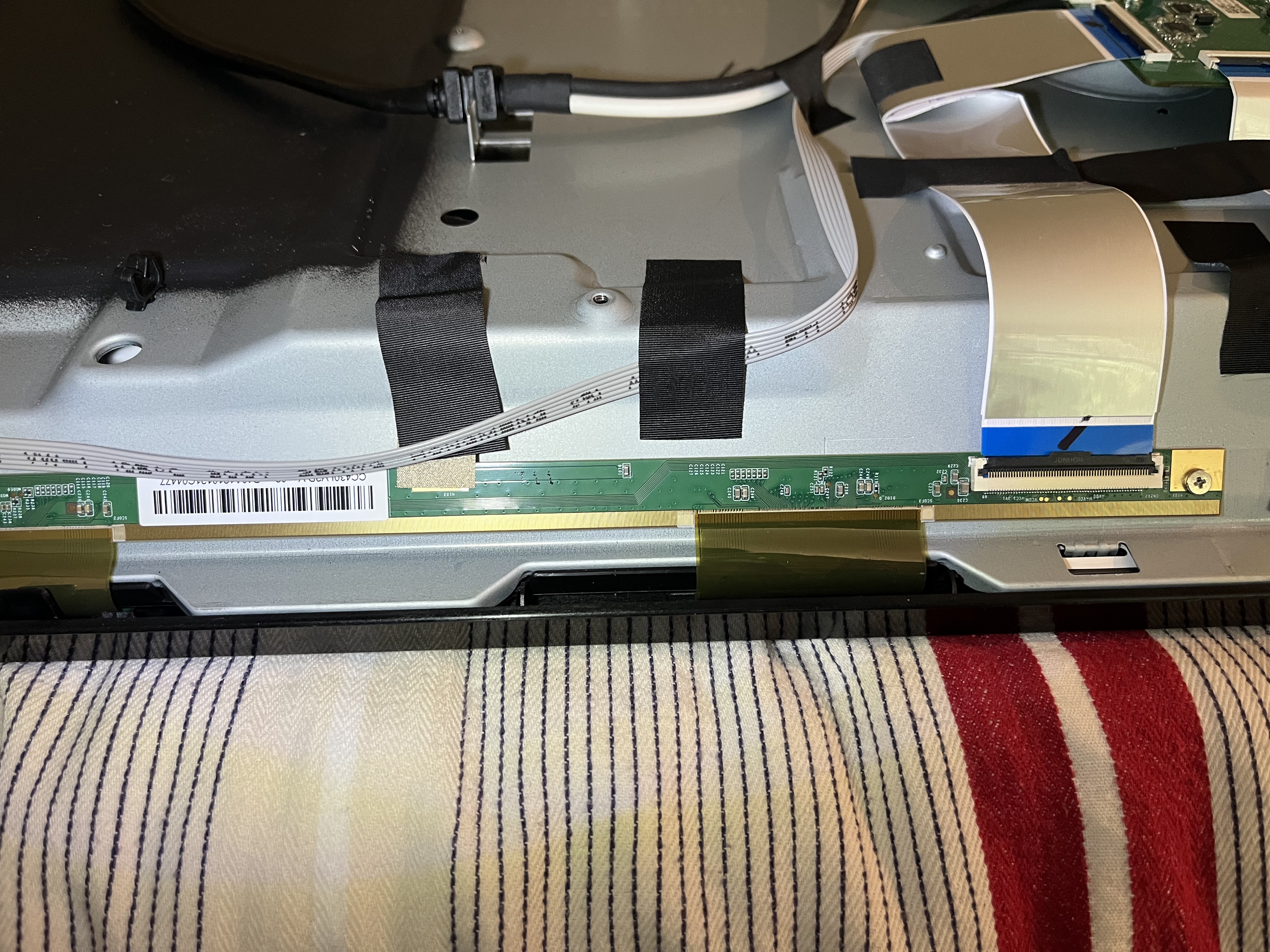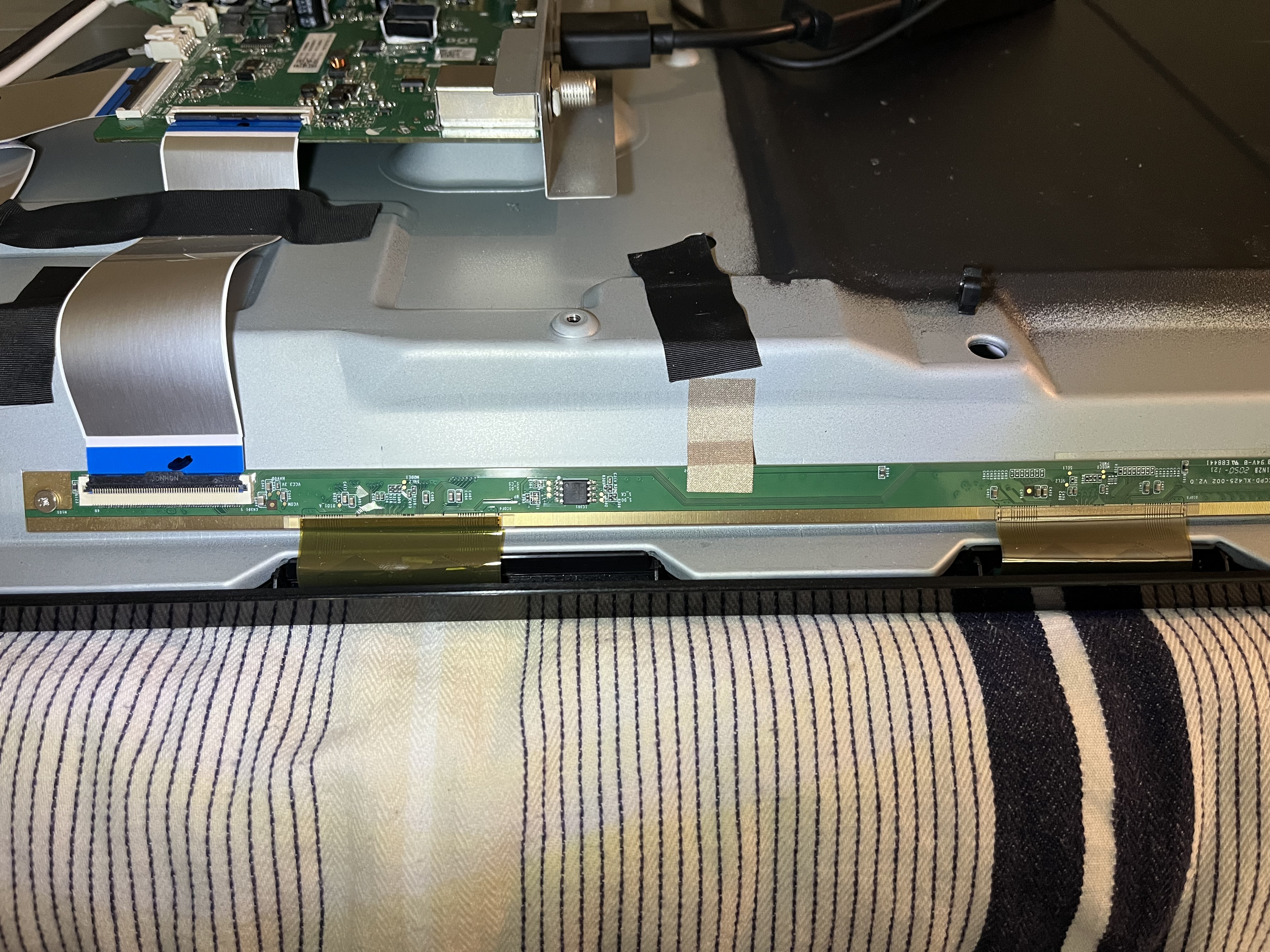 - Masked off pin 7+8 (both ~12,5v on both left and right buffer board) from t-con to right buffer board (view from front) display works but have some lines