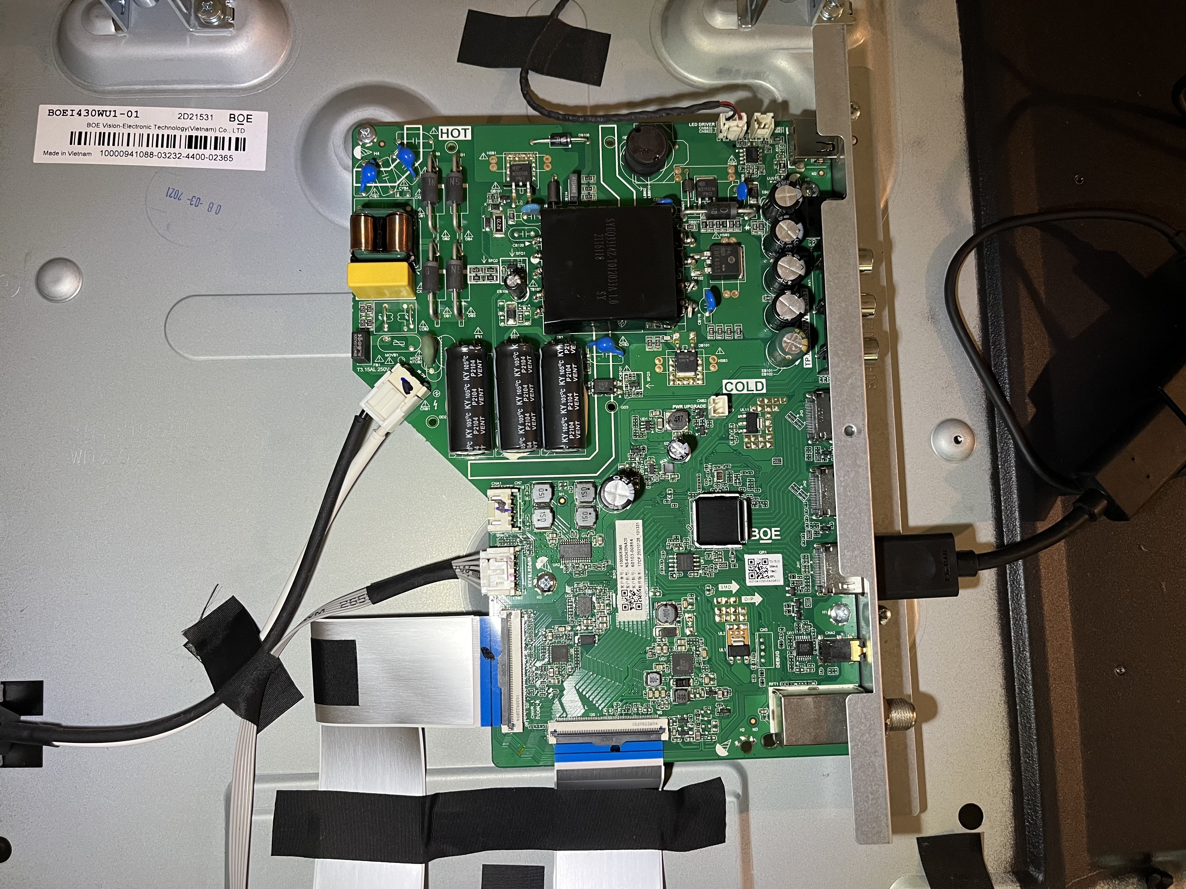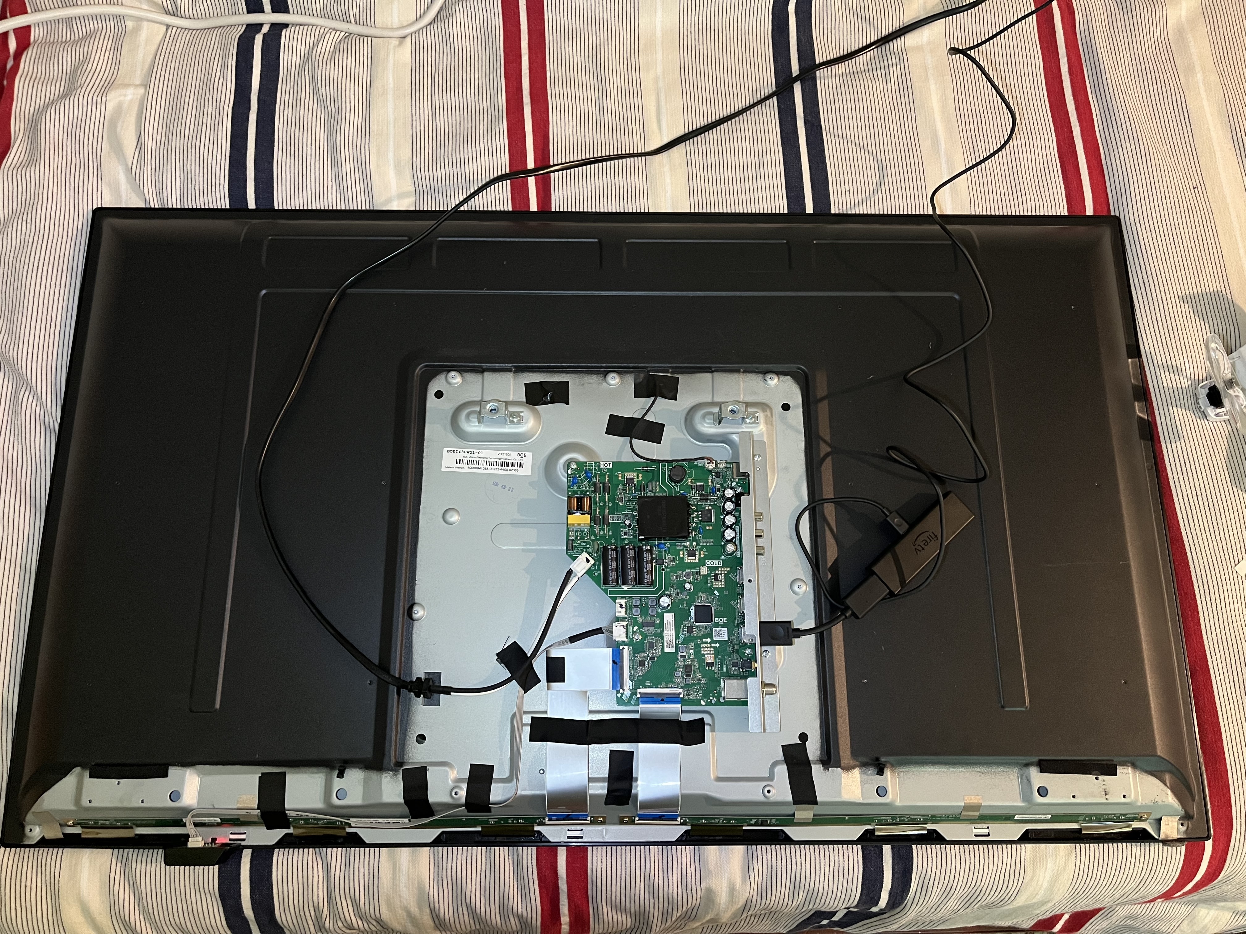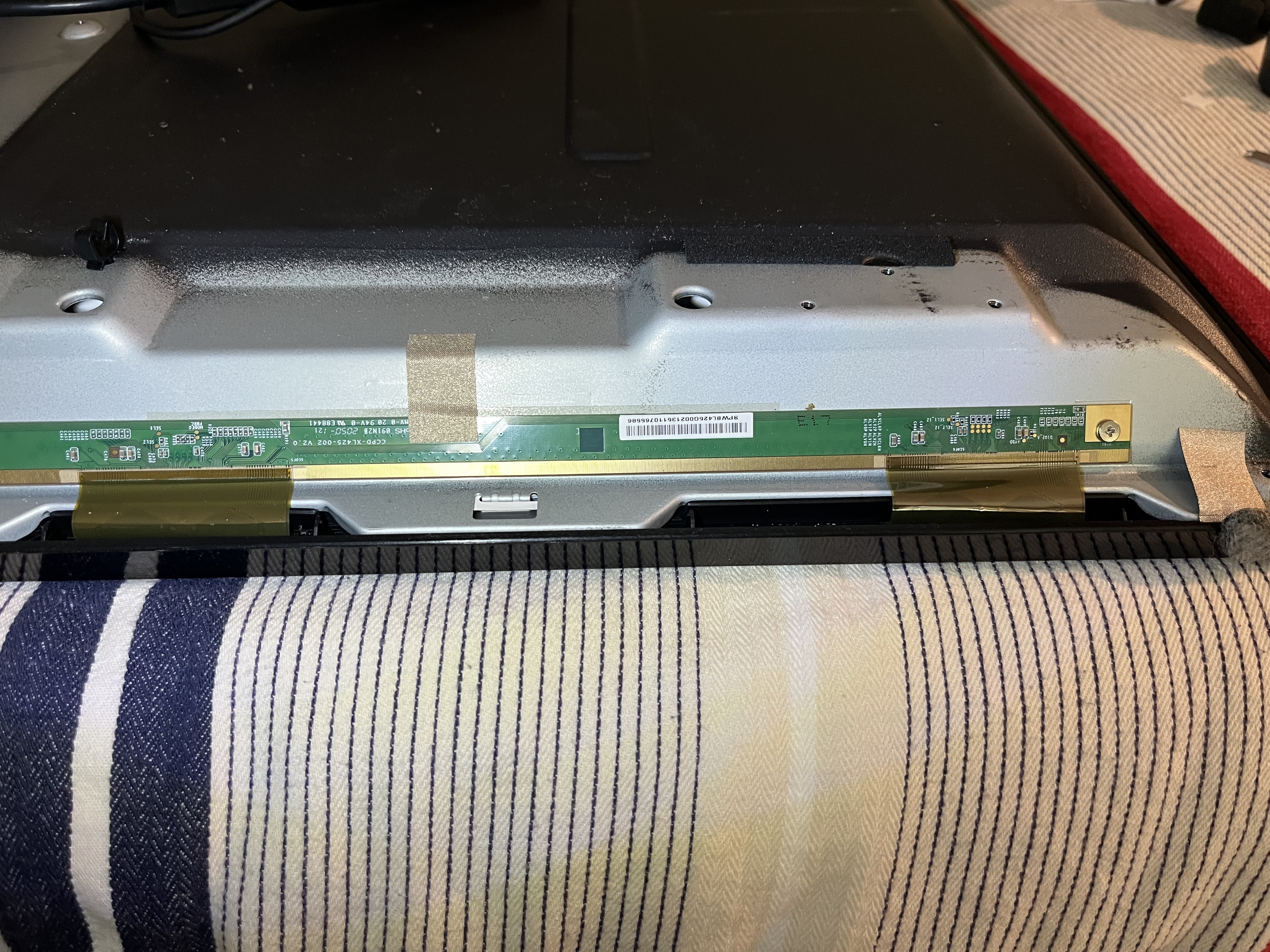 - Masked off pin 7+8 (both ~12,5v on both left and right buffer board) from t-con to right buffer board (view from front) display works but have some lines