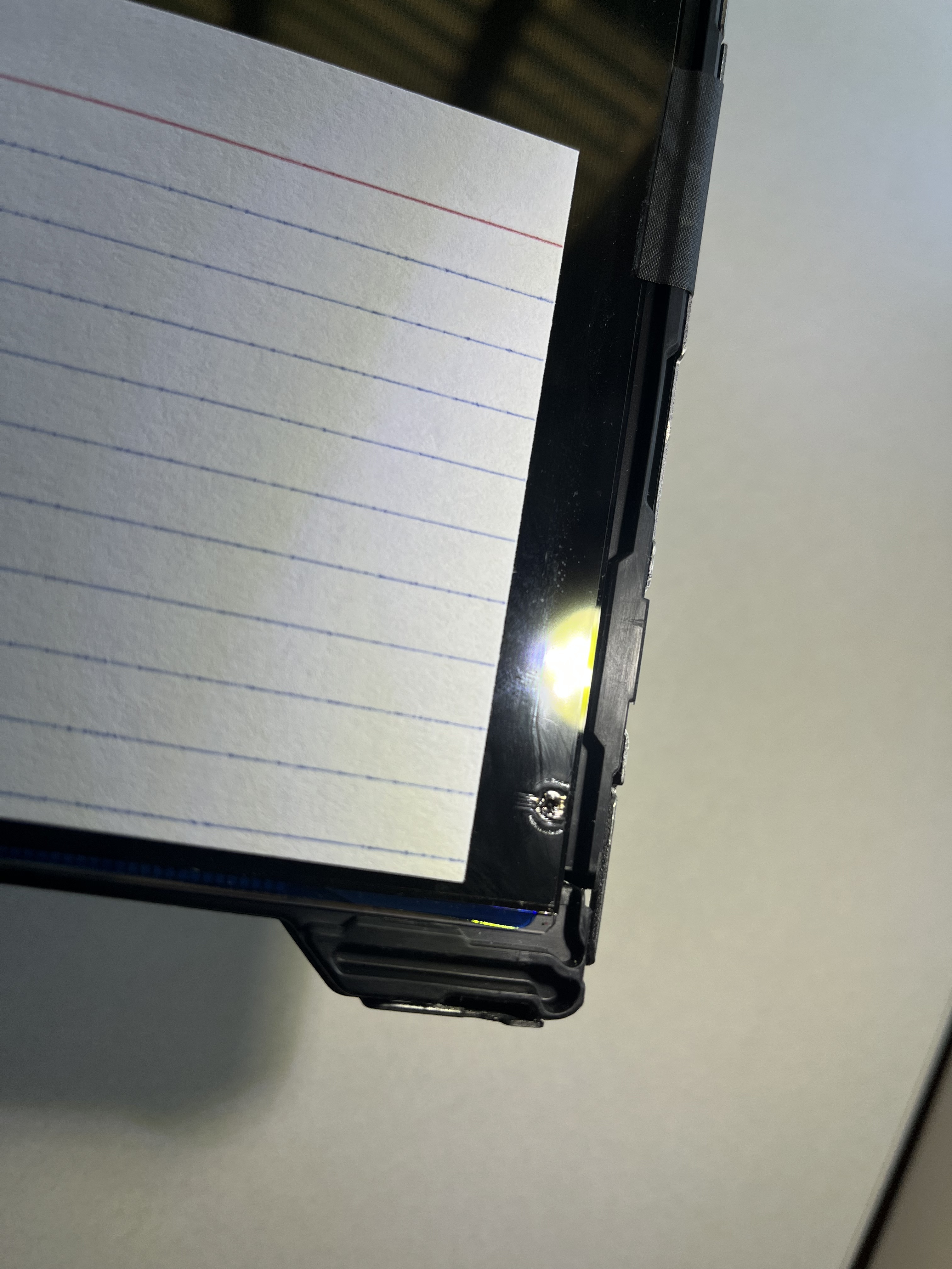 Eventually discovered a burn mark near lower corner of LCD. Here is a summary