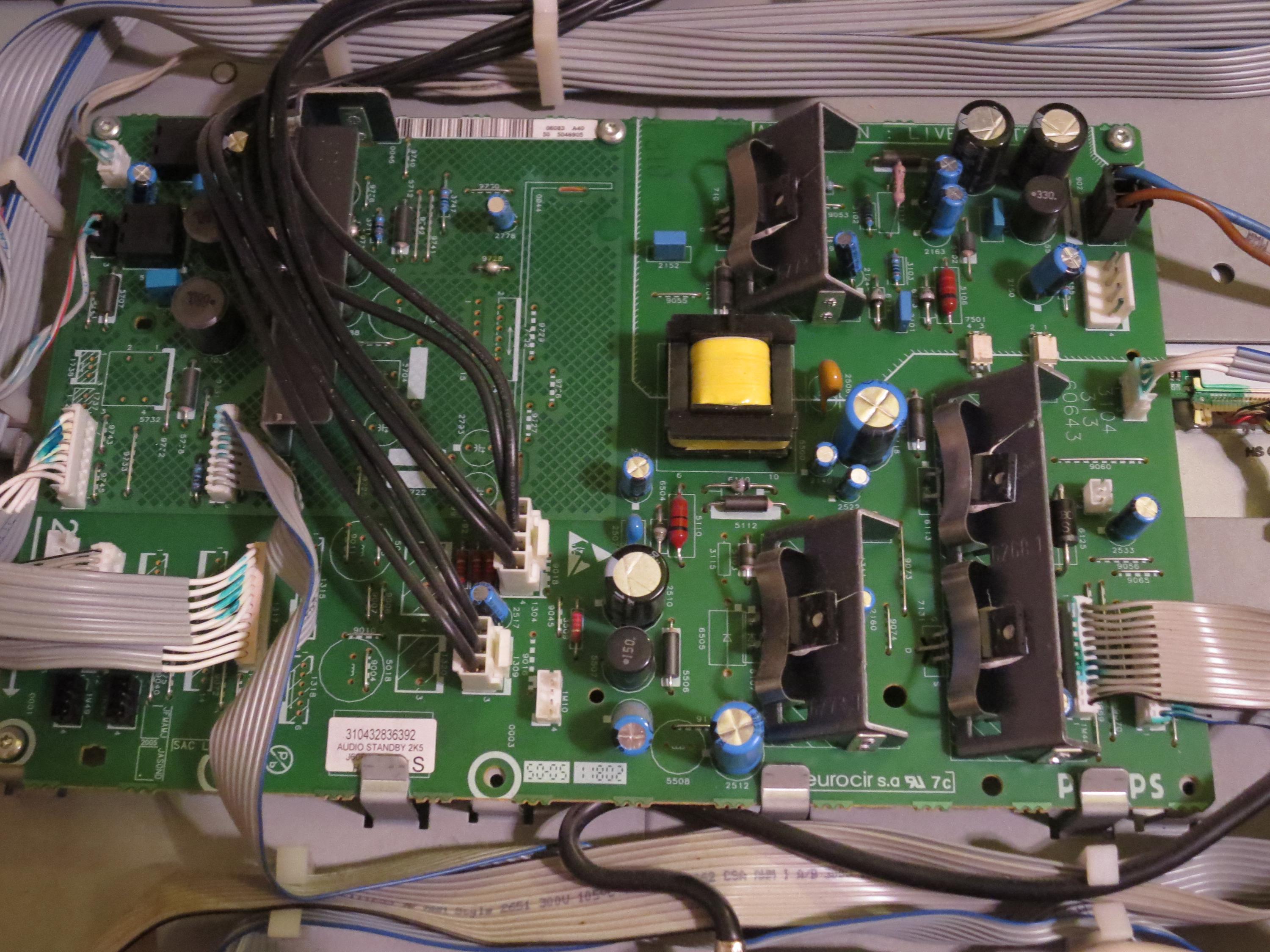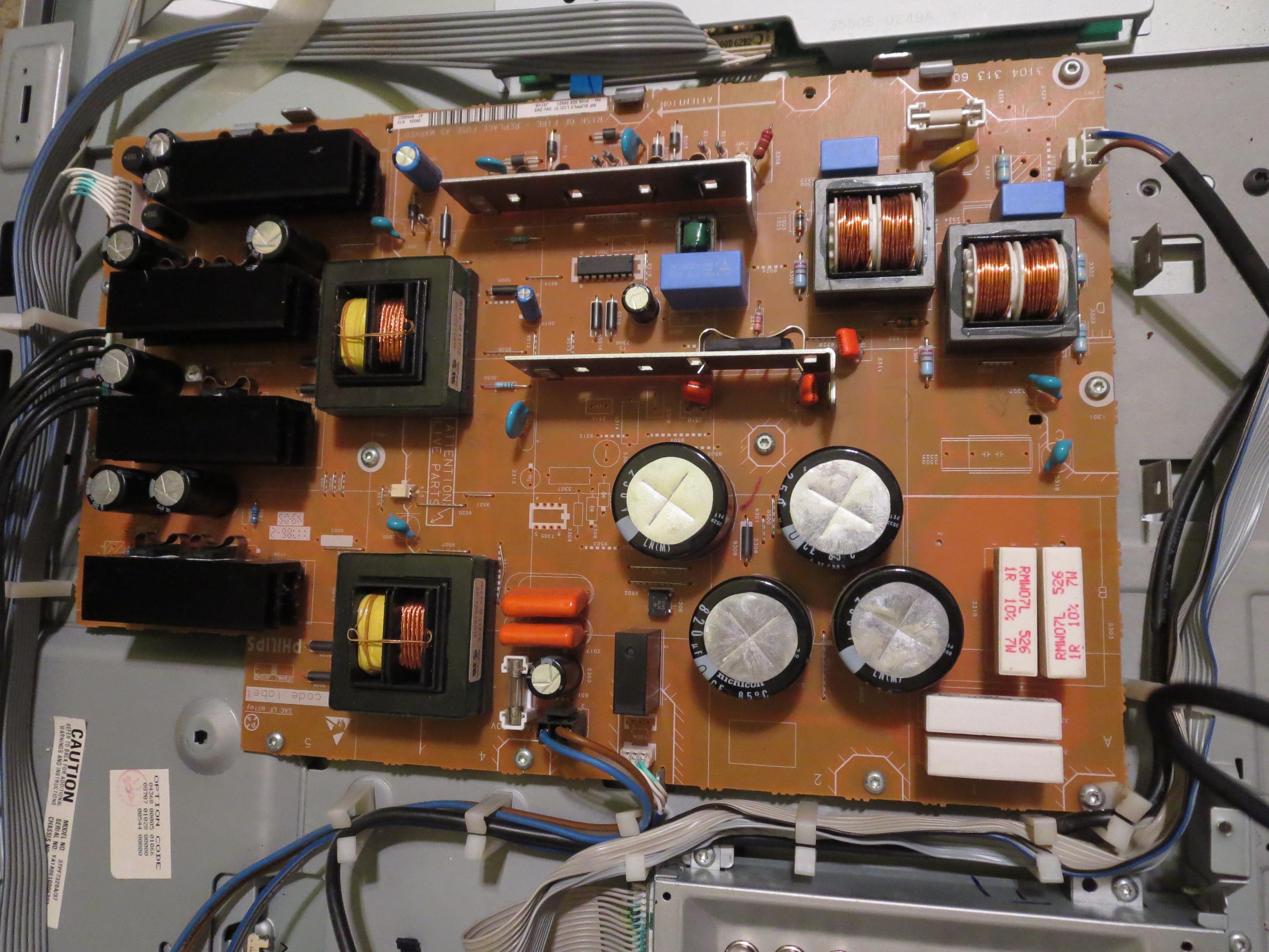 I have a strange power issue with my 37PF7320A/37B LCD tv. After plug in the tv, I can hear one click, the red led flashes once, the green led lights up for a couple of seconds, then another click and every thing goes dead. Press power button, nothing. A funny thing is if I turn off power (unplug) to the tv a second or two after the first click, the back light comes on for an instant. But if I turn off power to the tv a few second after the second click, no flash of back light. I already checked resister 3318 and it is fine. All caps on power board and AUX power/audio board look fine. I also measure AC at the main rectifier and it is 0V after the second click. Please help, thanks.