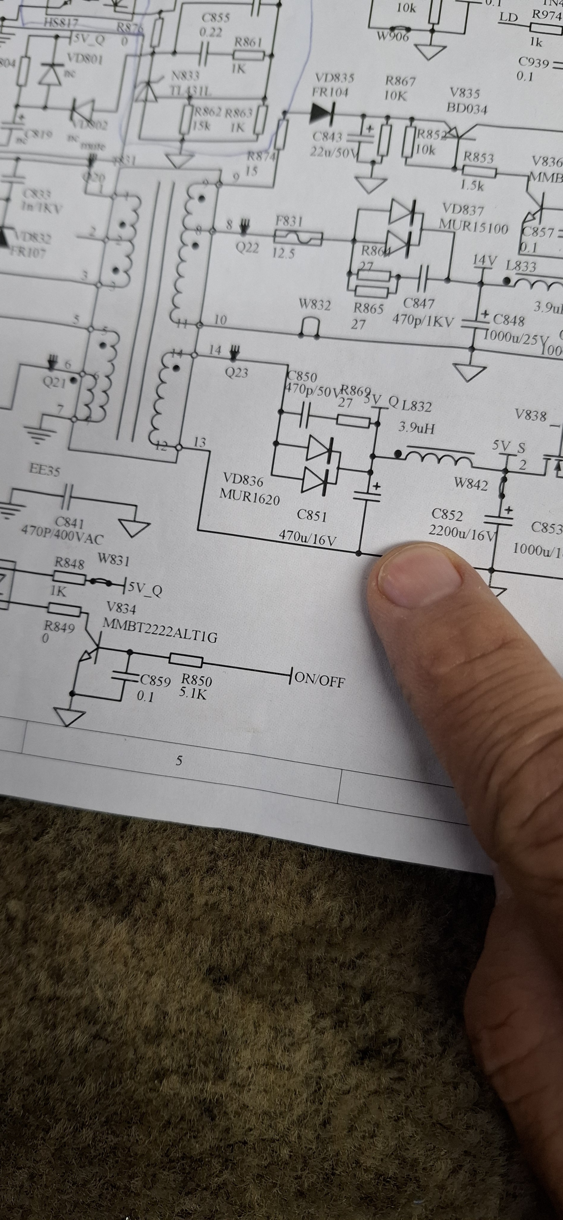 I have this 2008 lcd tv that uses ccfl lamps. The tv is stuck on standby. This is what I have noticed. The standby 5Vs voltage is not 5V but rather 3.28V. There is a 14V rail as well but that measures ok. I put my volt meter on the 5Vs rail and switch on the 220Vac. I noticed that the 5Vs rail goes to 5.1V and quicky changes to 3 28V and steady.
