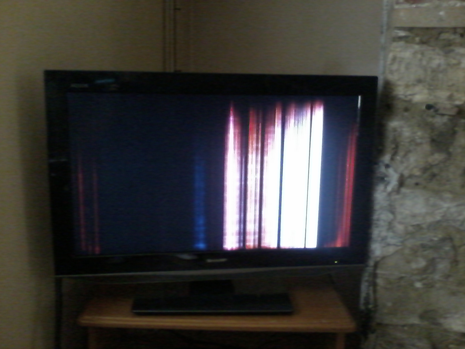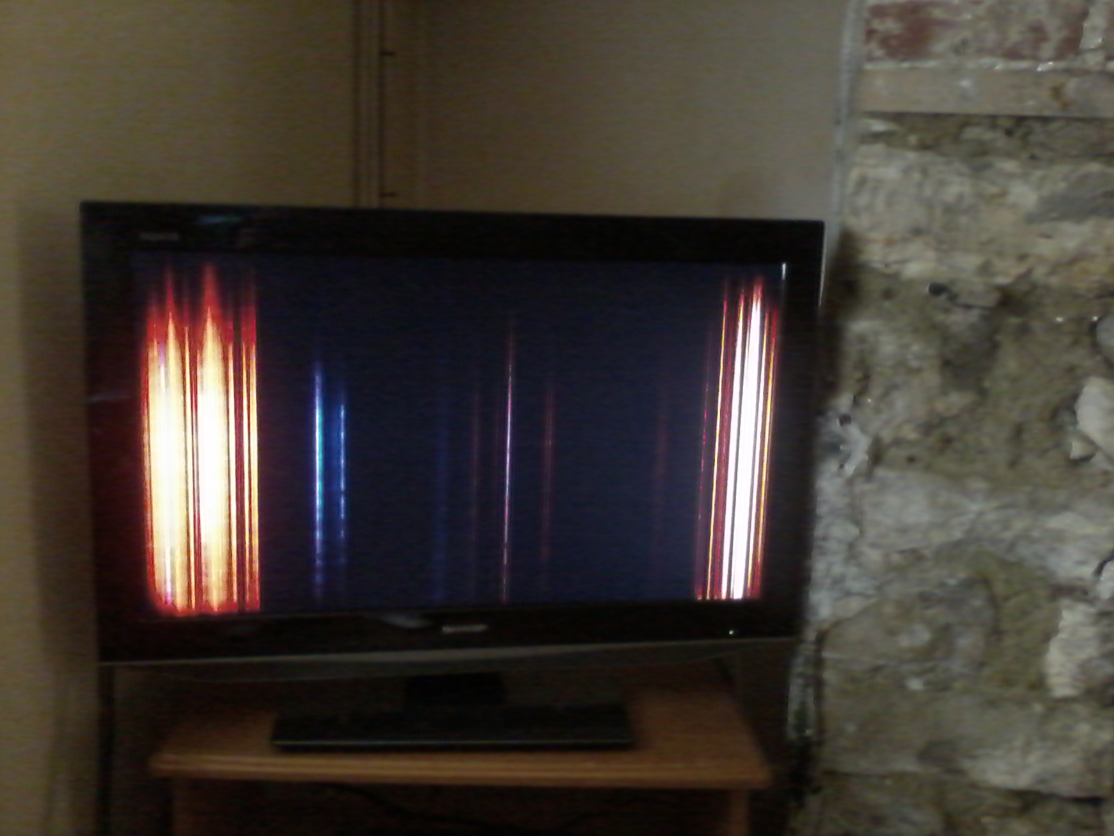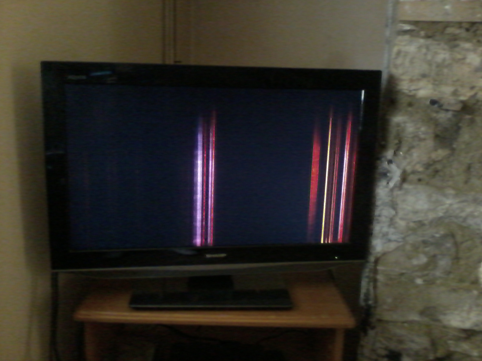 Sharp lc32AD5EBK when you first power on displays bold vertical coloured lines which fade in and out and change colour, completely dissapear after 10 minutes or so and then picture is perfect and will stay perfect until you turn off and leave for a while. If you turn off and turn back on no problem.