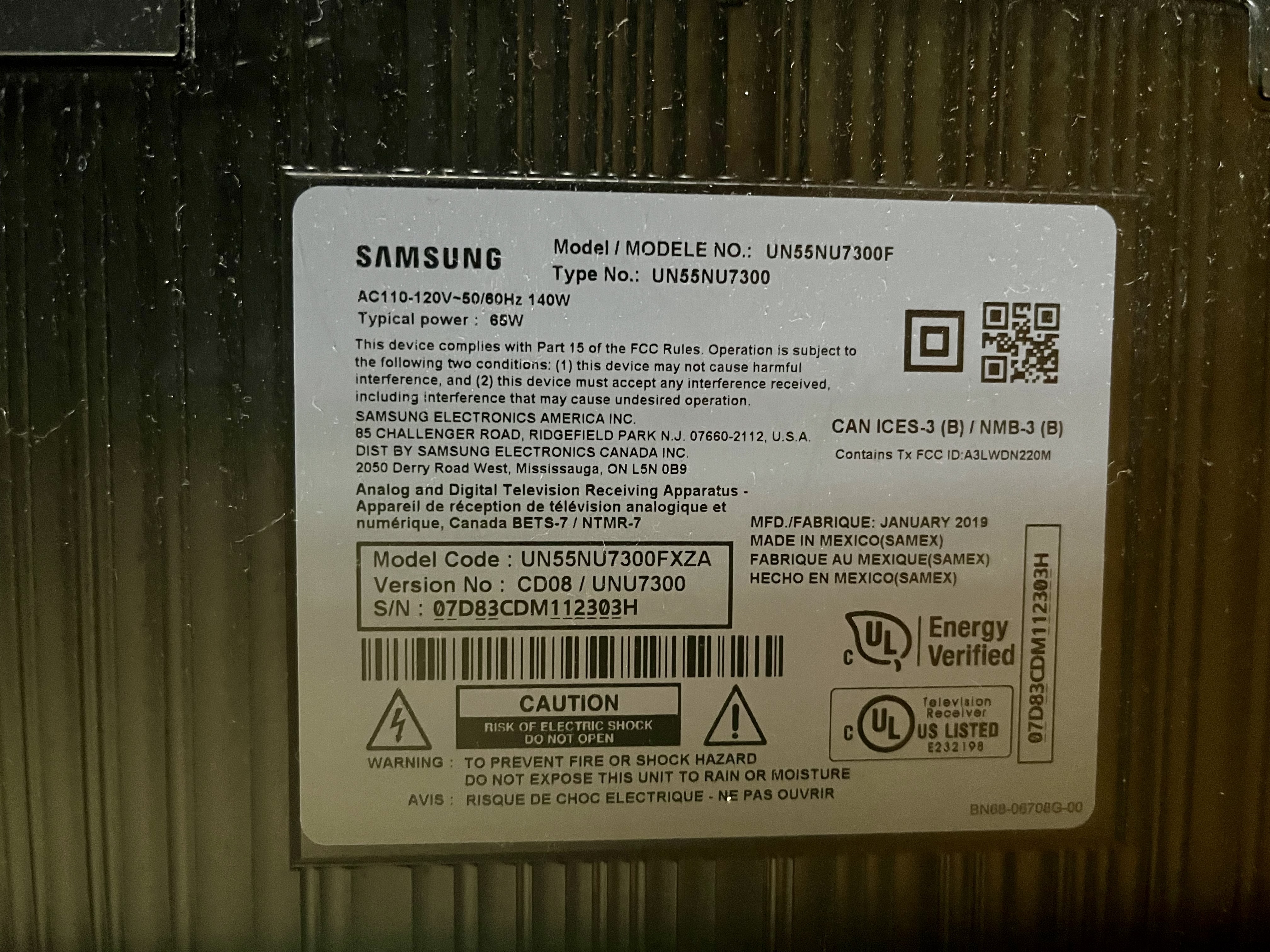 TV was fixed just after removing Samsung's rear snap cover.