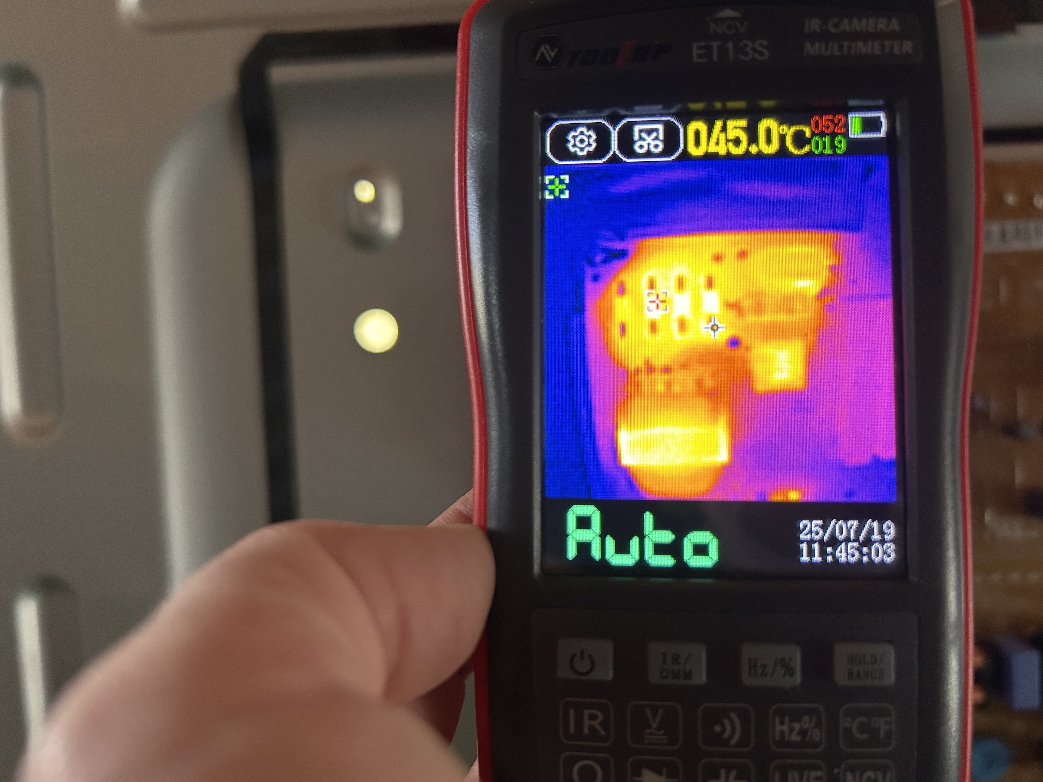 Then I turned TV and noted some diodes did not look the same temperature and I replaced these with new