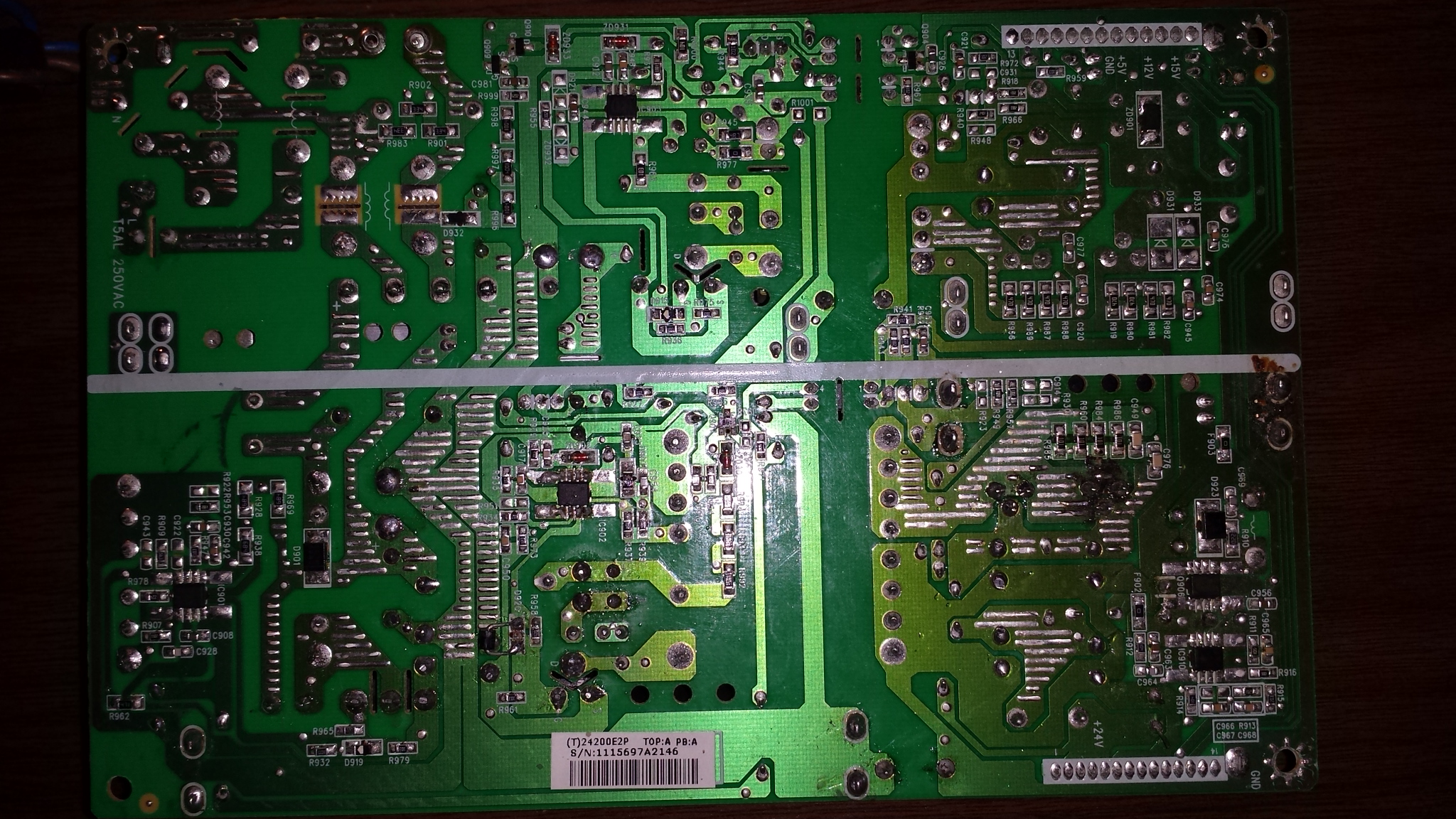Im getting the 5v output, and 12v output just fine but nothing at all on the 24v and 15v outputs and it's driving me crazy. If it means anything as well, while overlooking the schematic I notice there is a B+390V which I havent stumbled across while probing around on the board, but I assume it MUST be there atleast or the 12v and 5v side wouldnt be working, correct?