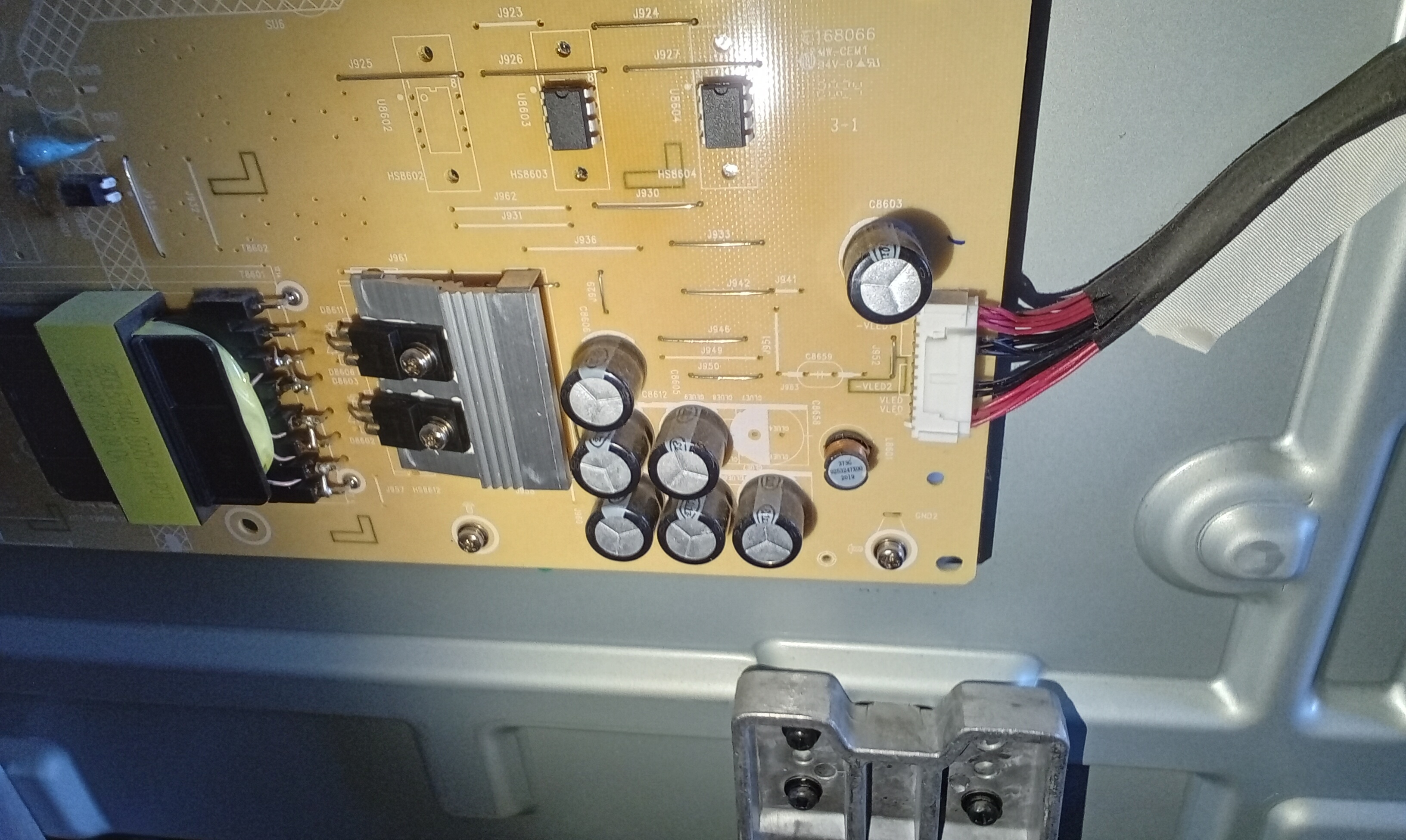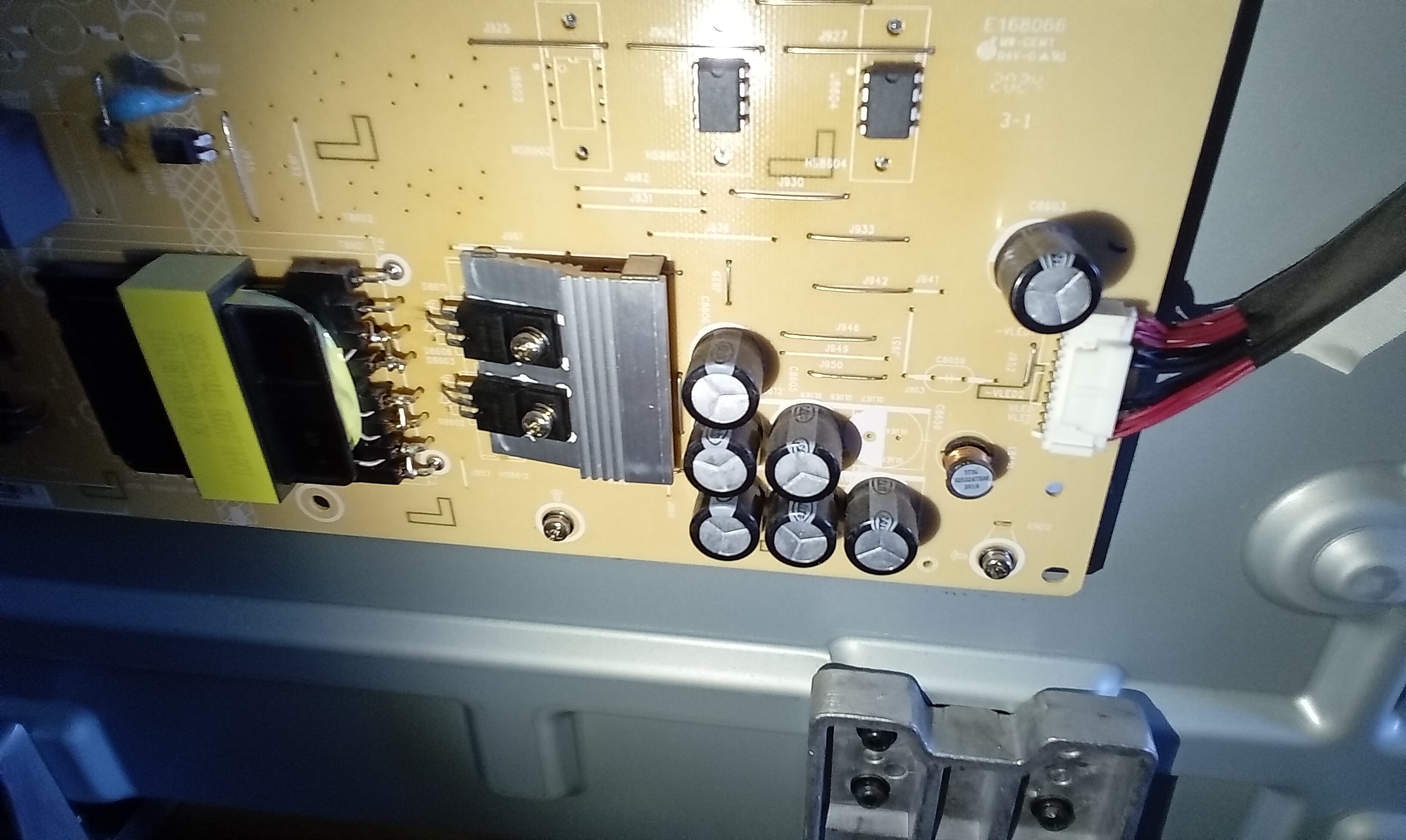 on power supply big capacitor :394v on tcon the 12v and 3,3v even on Mainboard