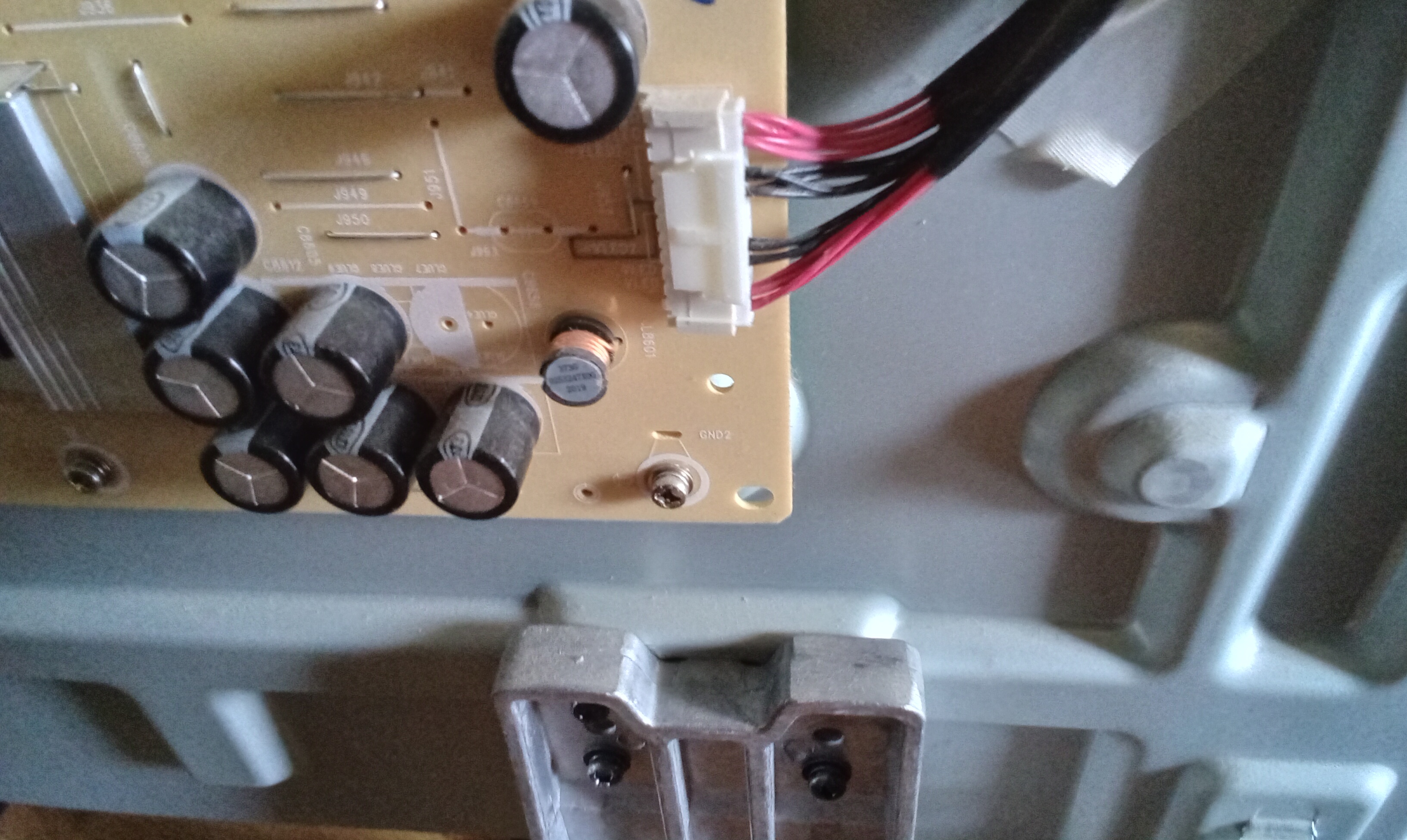'Hi the test black probe on ground (chassis) red probe on red wire =45V step up to 51.5V all of them and there is not a single hole to se the light even with this result it should not light the backlight then i believe i have to get to the backlight it is a big screen and quite heavy set