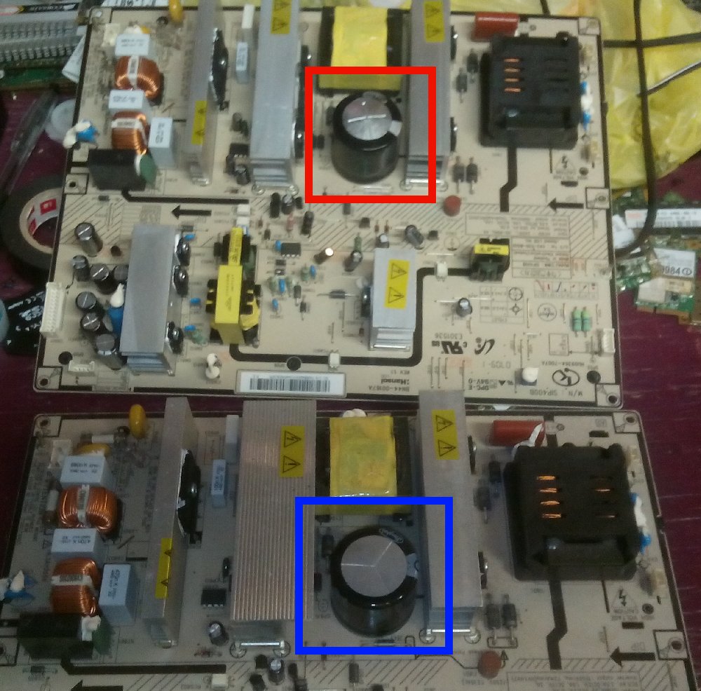 My plan is to replace the large cap on the board (450WV 220uf) with the cap from the lower board..
