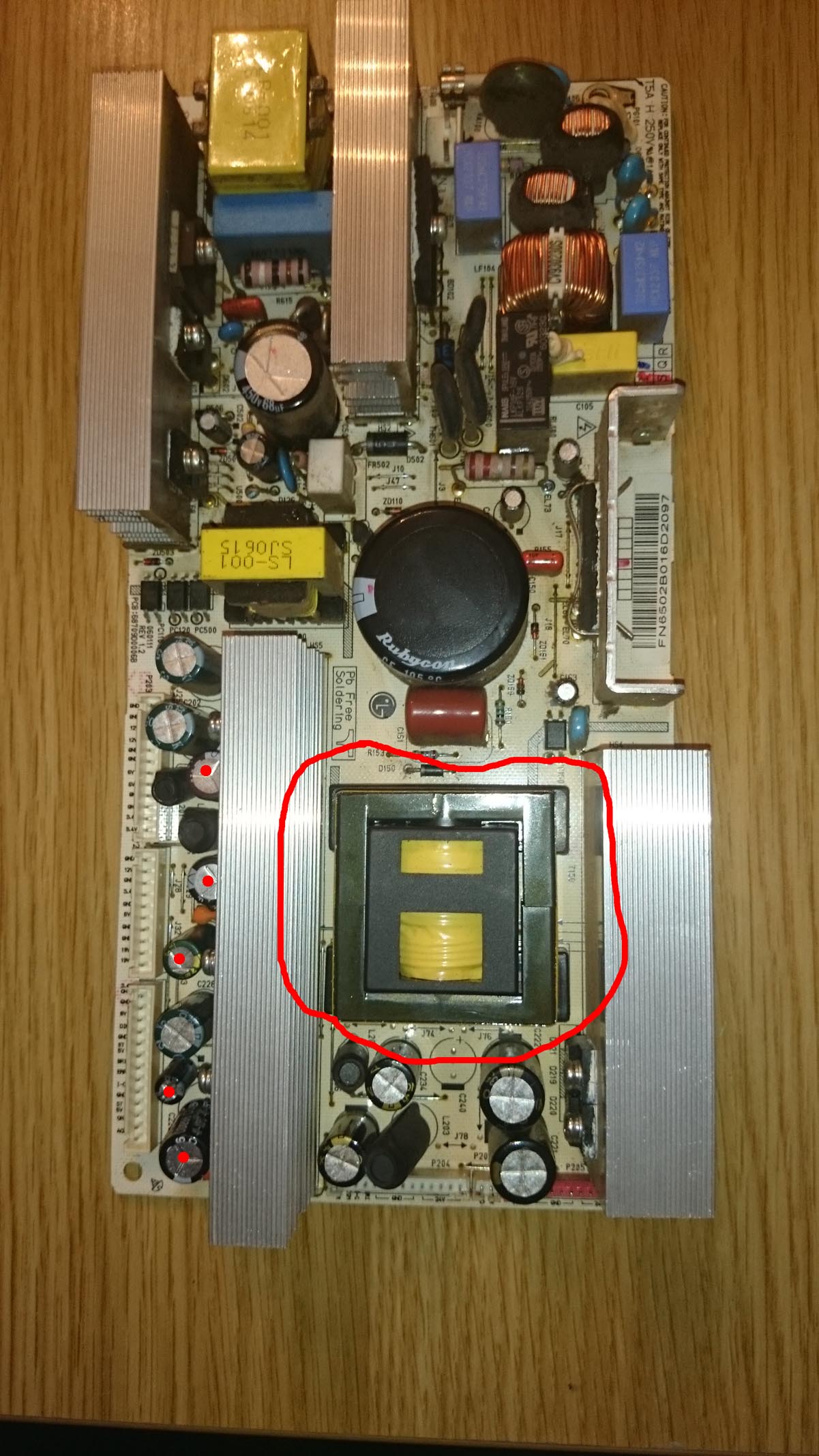But what I noticed now, is that the big black/yellow thing, transformer? (in pic below) is rattling when the board is flipped over, as if something has broken inside.